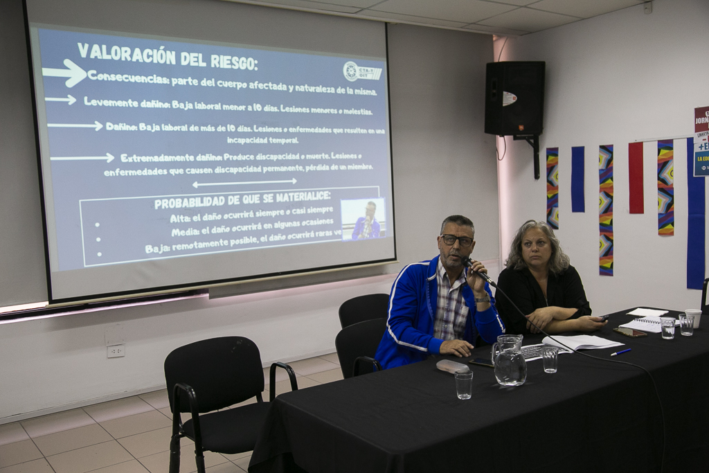 Mariela Preuss, Subsecretaria de Salud Laboral del SUTEBA, y Pablo Borneo, de APA, dictaron el taller donde se abordó la temática en profundidad, como herramienta para la construcción de este mapa nacional de Riesgos Biológicos.