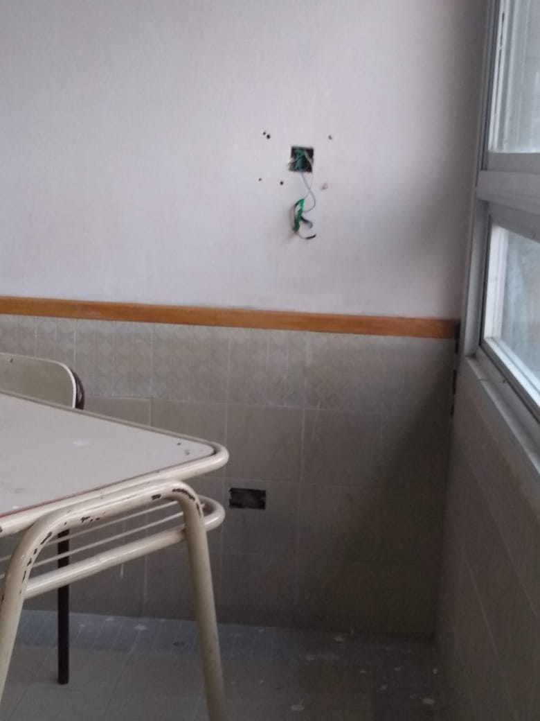 Se encuentra con una problemática similar a la Escuela ya mencionada. A la falta de calefacción se le agrega la reducción de espacio físico, dado que se encuentra en obra la reparación del tanque desde el año pasado. La comunidad educativa, con acompañamiento de nuestro Sindicato, ha manifestado en varias oportunidades el profundo malestar ante las condiciones en que lxs jóvenes concurren a clase.