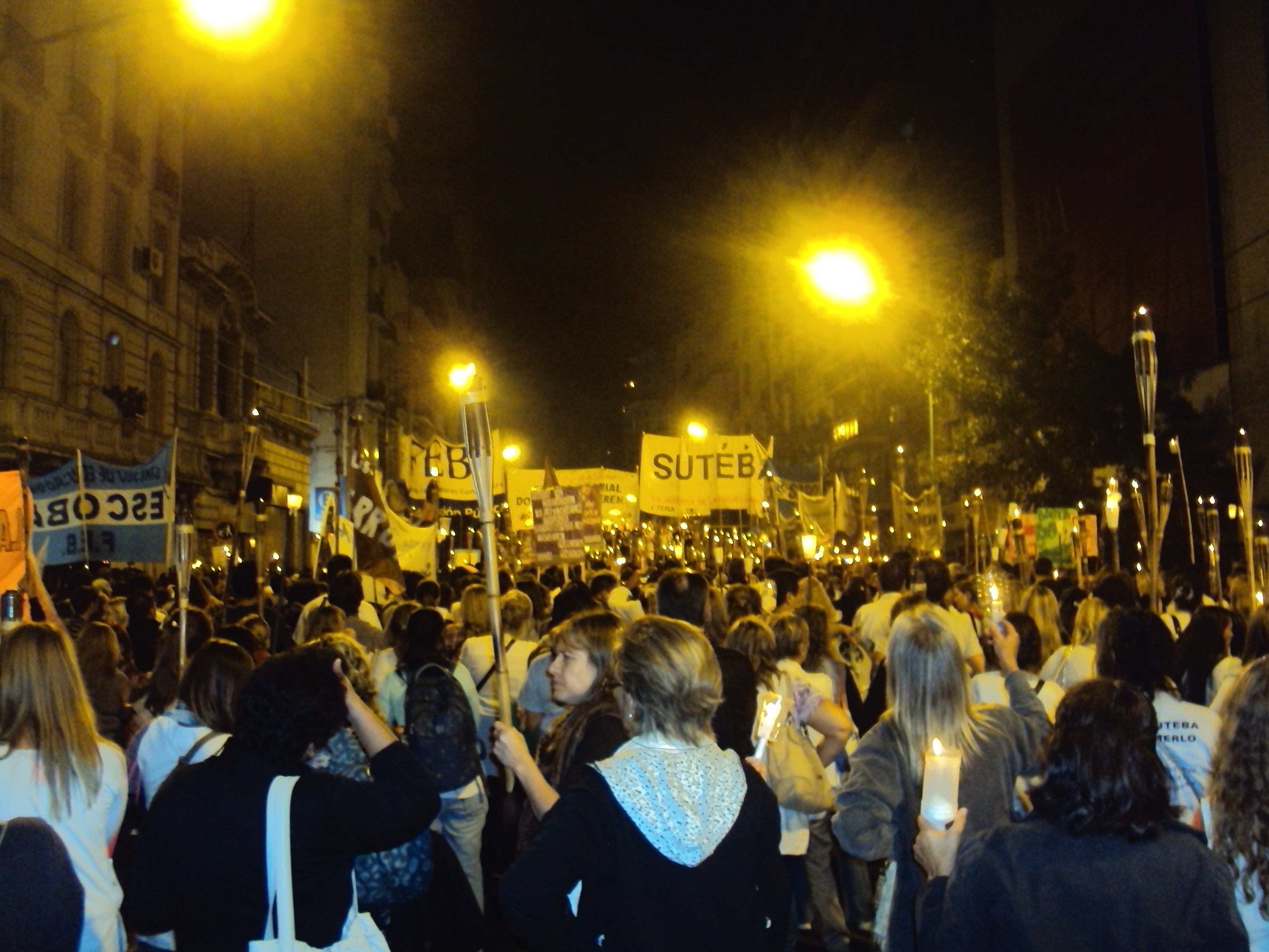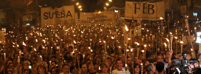 Miles de docentes avanzaron en una encendida marcha de antorchas por la Escuela Pública y salarios dignos hacia la Casa de la Provincia de Buenos Aires y en todos los distritos del Interior.