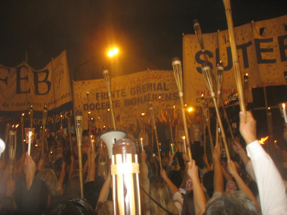 Se concentraron en el Congreso de la Nación y marcharon, levantando sus antorchas e iluminando las calles, hacia la Casa de la Provincia de Buenos Aires, donde realizaron un acto para reclamarle al Gobierno provincial que resuelva la crisis del sistema educativo