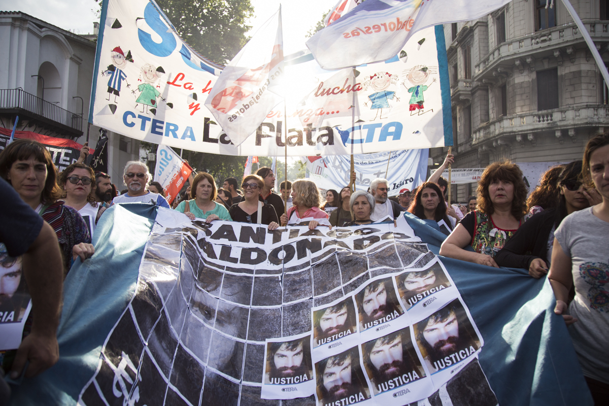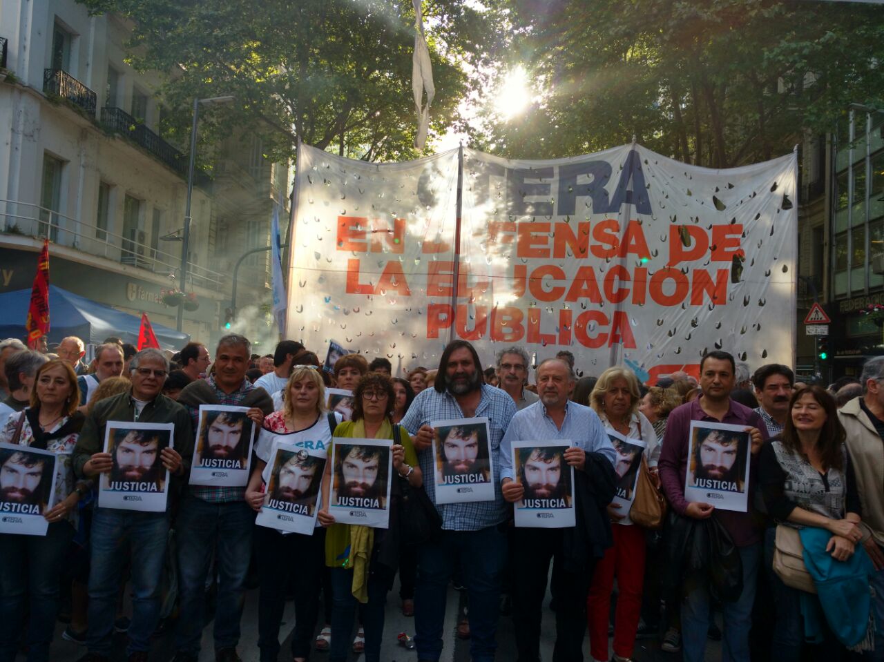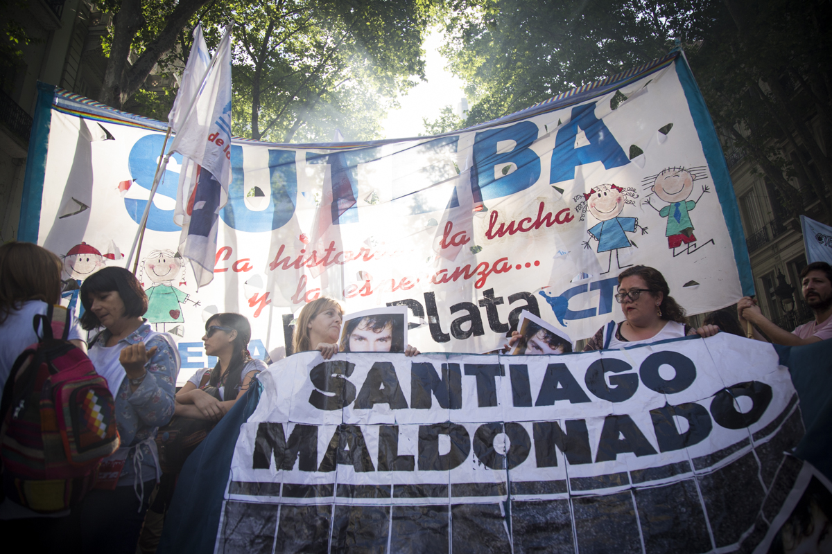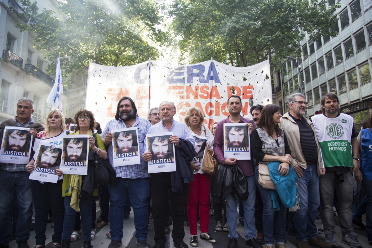 El Secretario General del SUTEBA, Roberto Baradel, sostuvo: "Deben investigar quiénes son lxs responsables materiales y políticos de su muerte. No podemos permitir ni la impunidad ni que en Democracia haya otrx Santiago Maldonado".