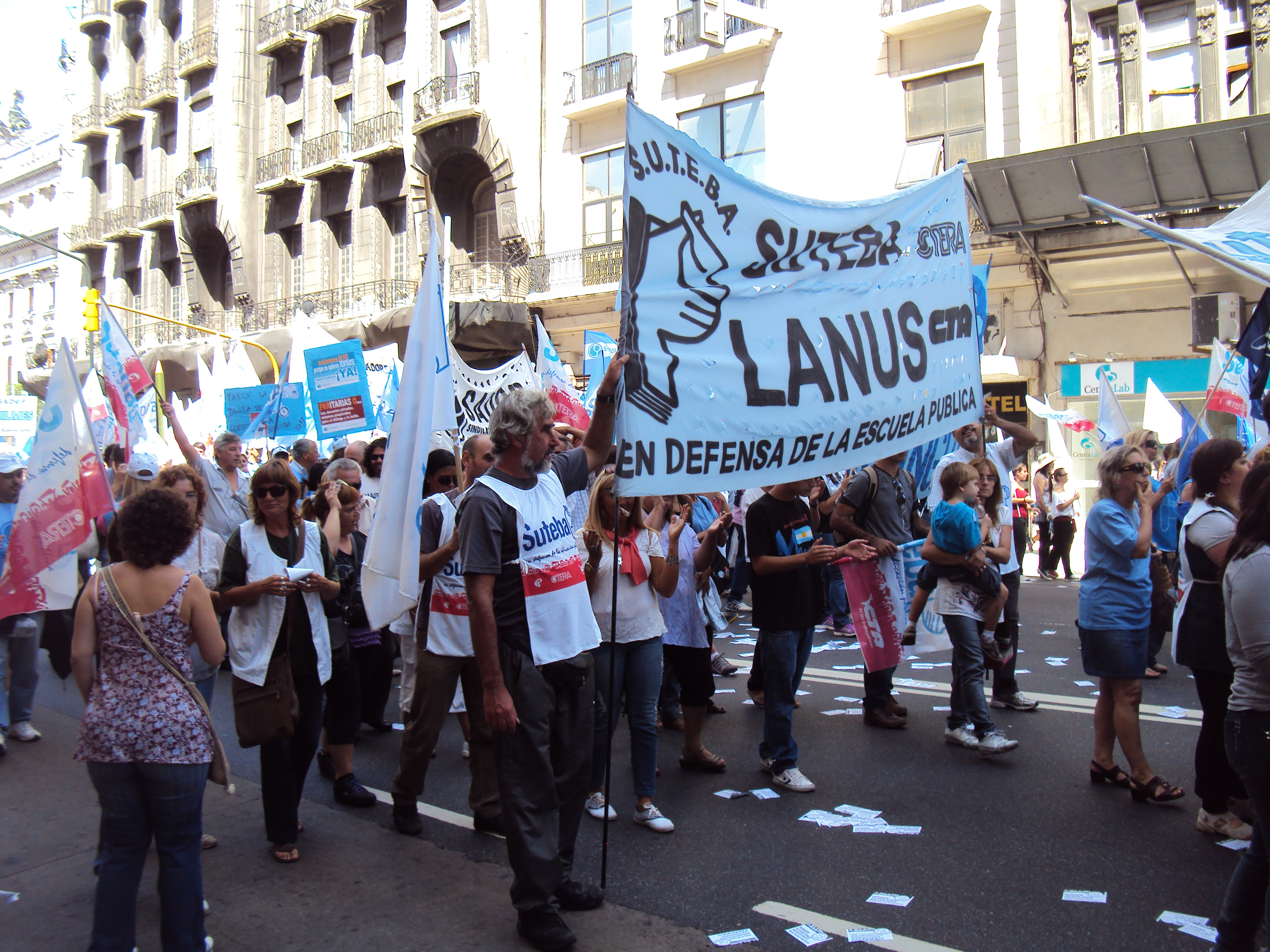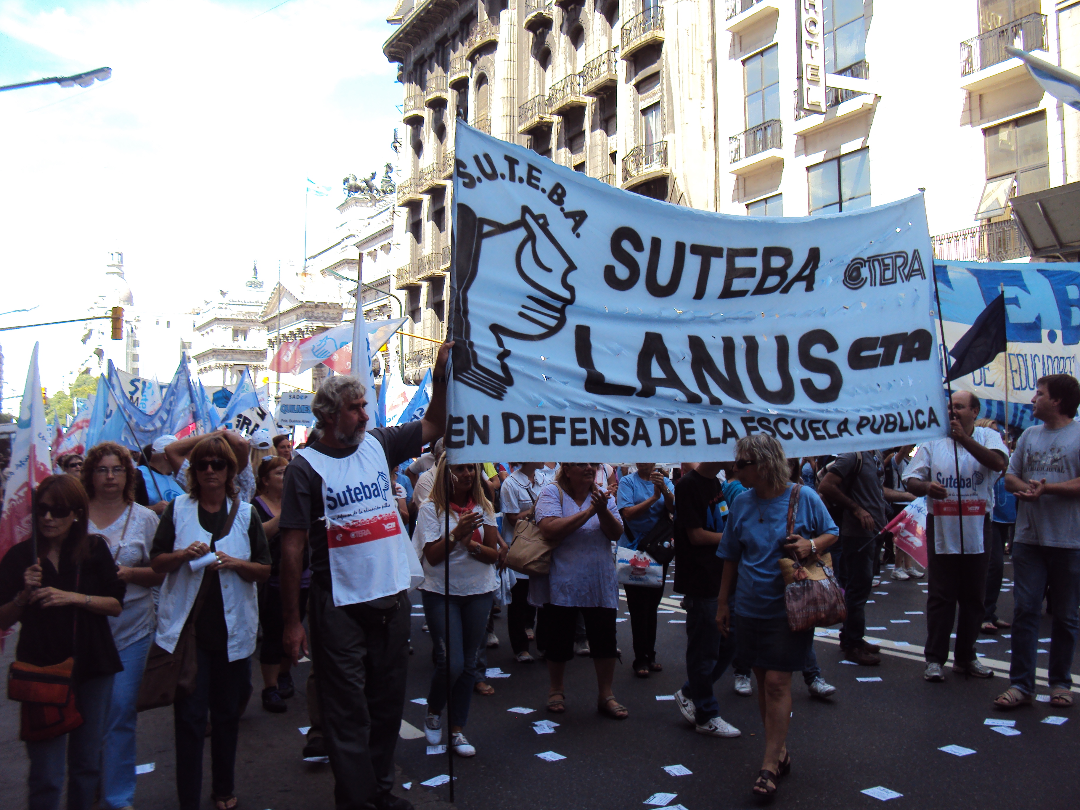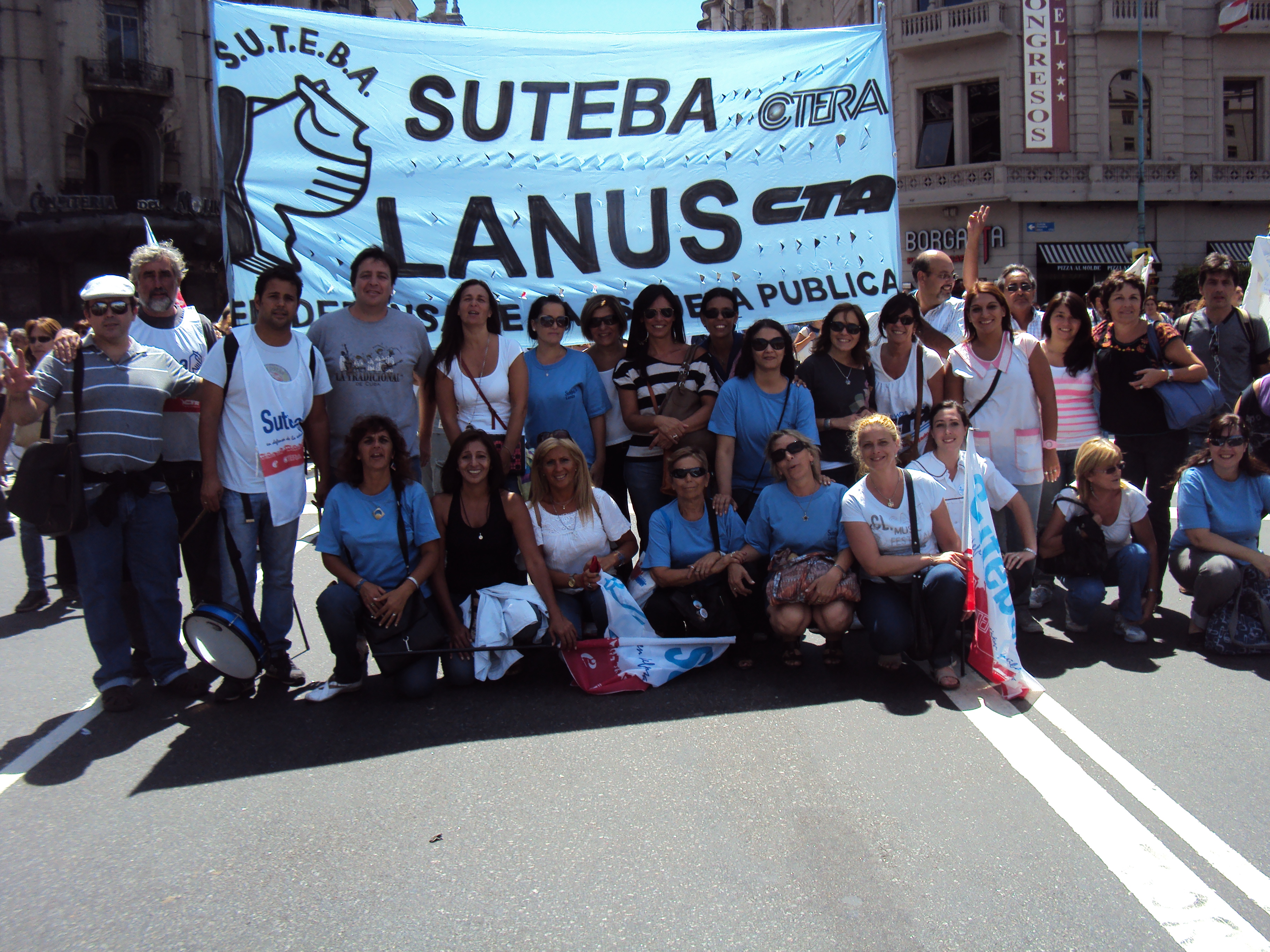 Desde Lanús Movilizamos hacia La Casa de la Provincia de Buenos Aires junto con los compañeros del resto de los distritos de SUTEBA, en compañía de los otros gremios (FEB, AMET, SADOP y UDA) que conforman el Frente Gremial Docente Bonaerense, se concentró frente al Congreso de la Nación y marchó hasta la Casa de la Provincia de Buenos Aires. Una vez allí, se realizó un acto en el que el Secretario General de SUTEBA y CTA Buenos Aires, Roberto Baradel, transmitió un mensaje claro de lucha y unión en este tiempo de conflictos y desacuerdos en una mejora en la calidad de vida de los Trabajadores de la Educación.