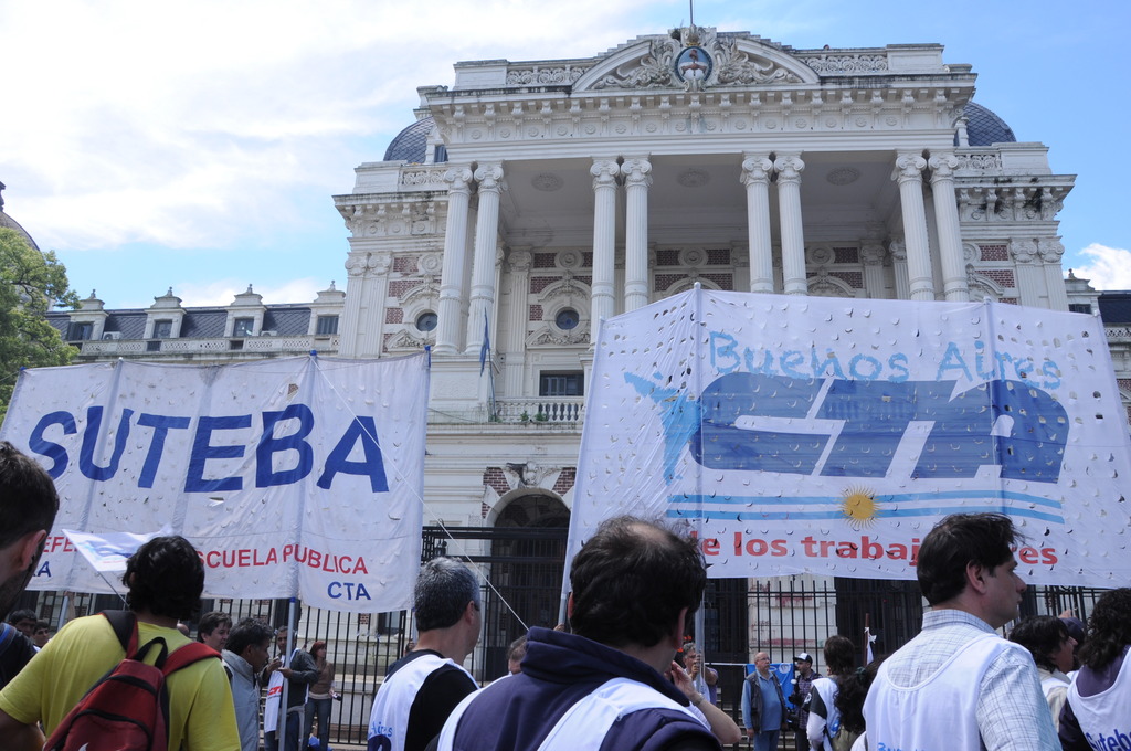 “No hay diálogo con la Provincia. Repudiamos la política de ajuste que lleva adelante la administración Scioli”, manifestó ante los presentes Roberto Baradel, Secretario General de la CTA Provincia. Además indicó que “están subejecutando las partidas presupuestarias para destinar el dinero a otras áreas”.