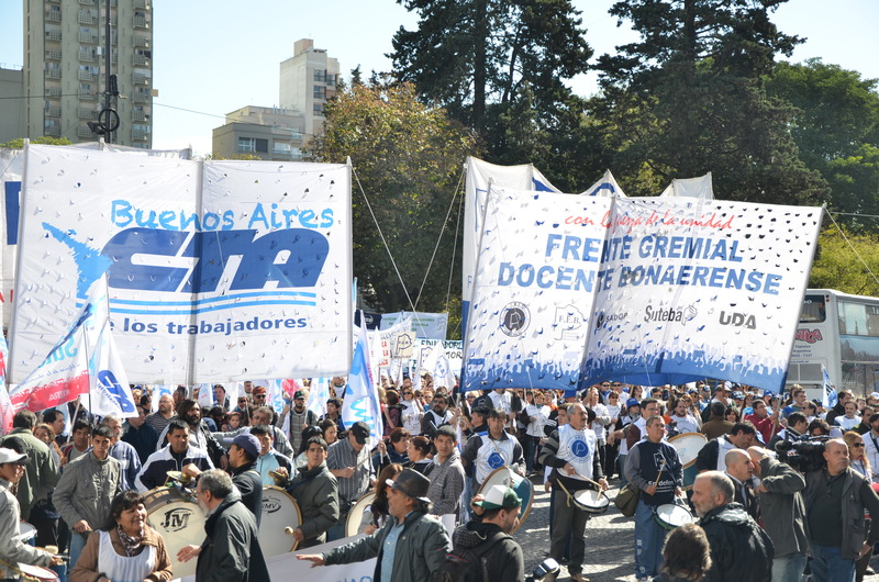 Luego, la militancia se dirigió hacia la Gobernación de la provincia y desde ahí Roberto Baradel, Secretario General de SUTEBA y CTA Buenos Aires, habló a los docentes nucleados en el Frente Gremial y a los trabajadores de la CTA provincia de Buenos Aires: “Estamos acá por un reclamo muy concreto: las Asignaciones Familiares.