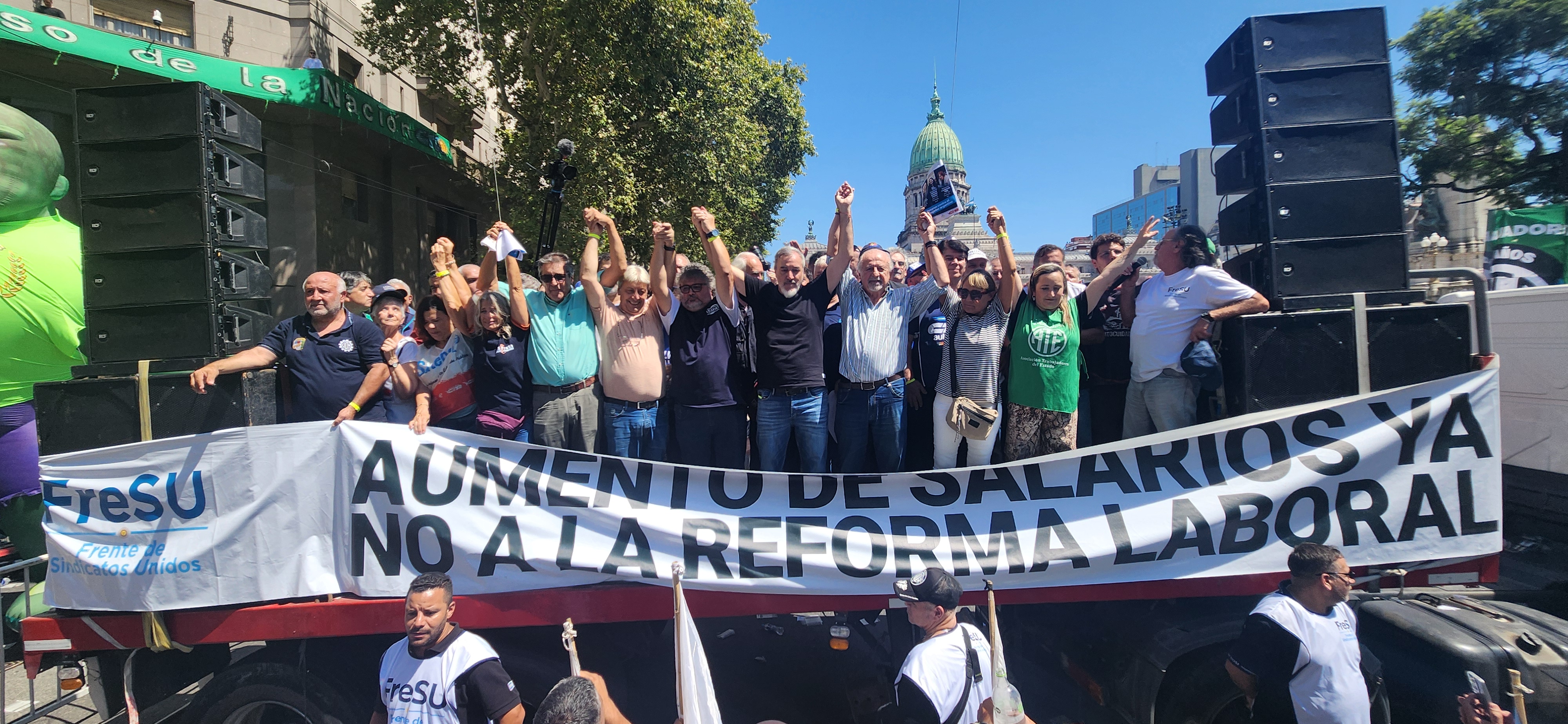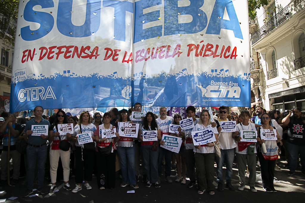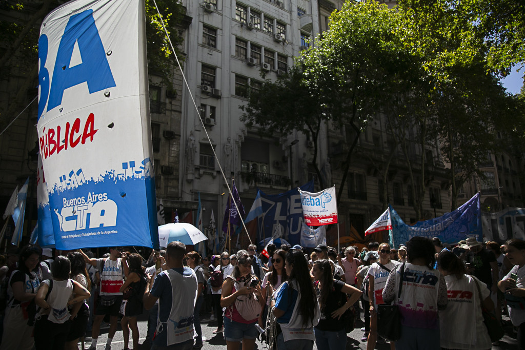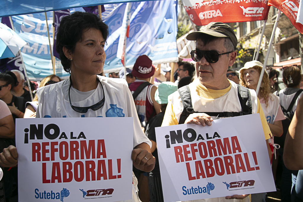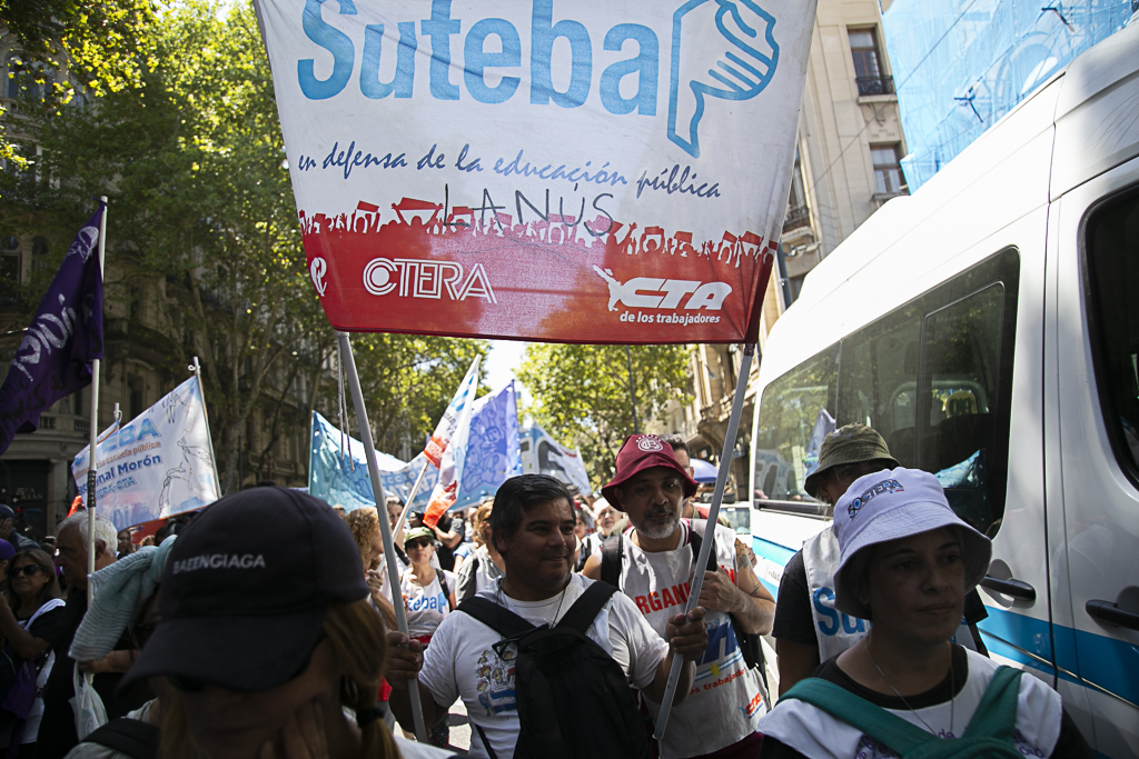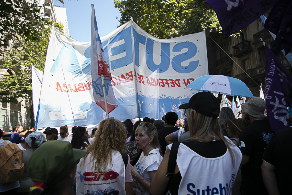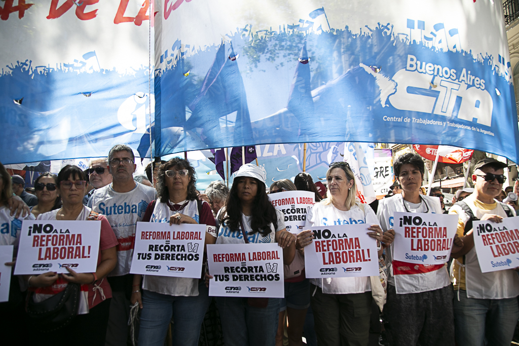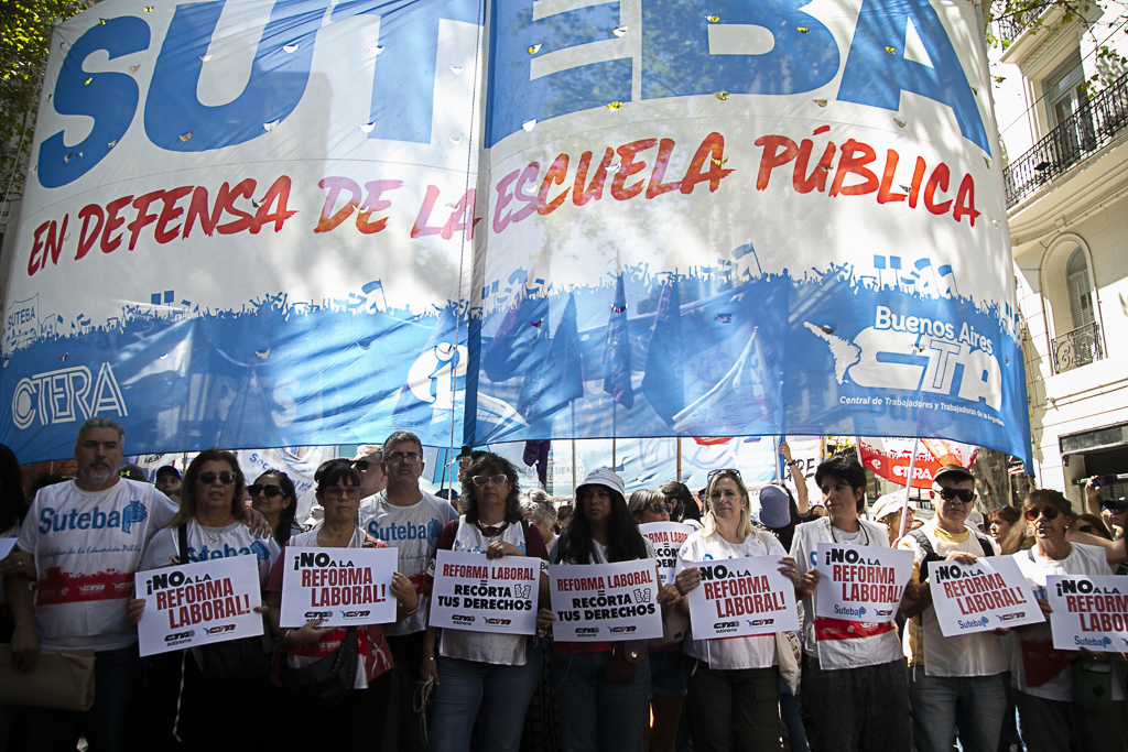 En el marco de la JORNADA NACIONAL DE LUCHA dispuesta en forma conjunta por las dos CTA, el SUTEBA volvió a movilizarse al Congreso contra la reforma laboral de Milei.