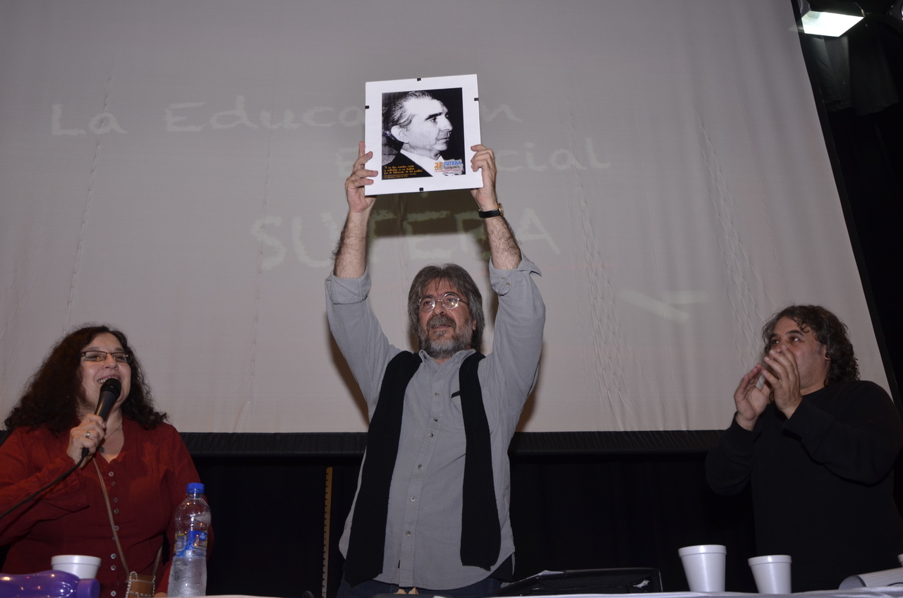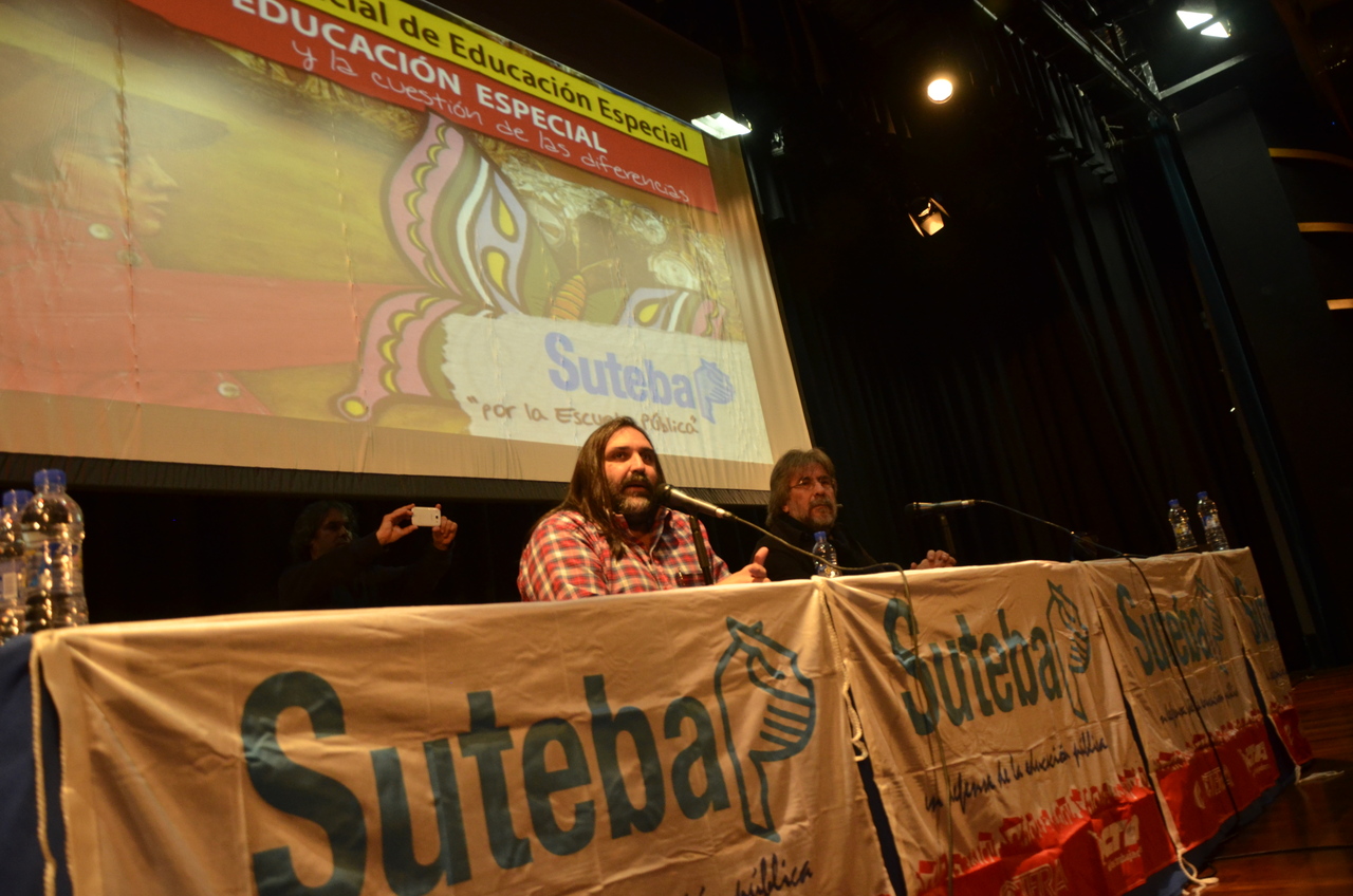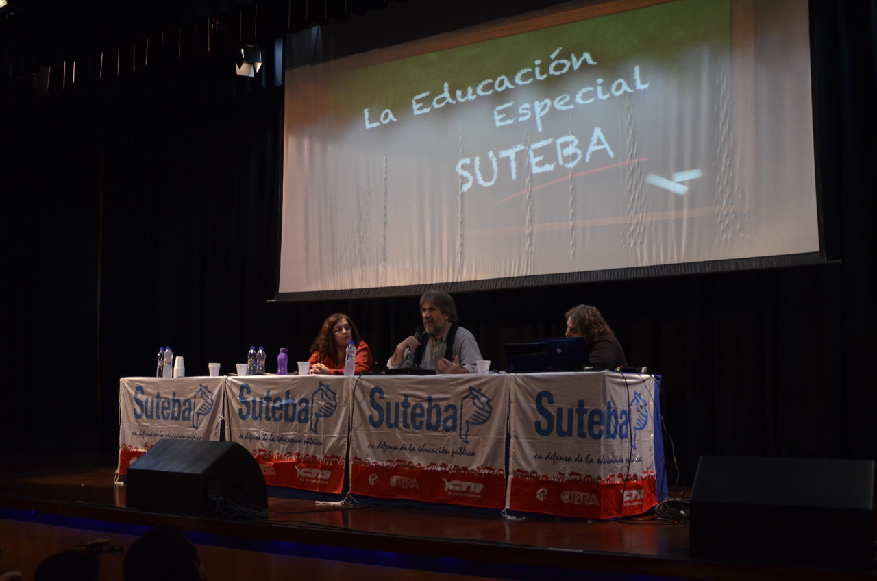 Roberto Baradel Secretario General de SUTEBA abrió el encuentro con las siguientes palabras: "La Modalidad de Educación Especial tiene historia de lucha, tiene compromiso, con la inclusión, con el trabajo con las diferencias. En la década del "90 hubo una fuerte resistencia a la posibilidad de desaparecer. Dimos una pelea constante y seria y pudimos ir contra la Reforma Educativa. Estaban las Escuelas Especiales recibiendo a las familias y a los pibes, cuando desguazaban al Estado con políticas neoliberales y eran, también, estas escuelas las que contenían esas comunidades".