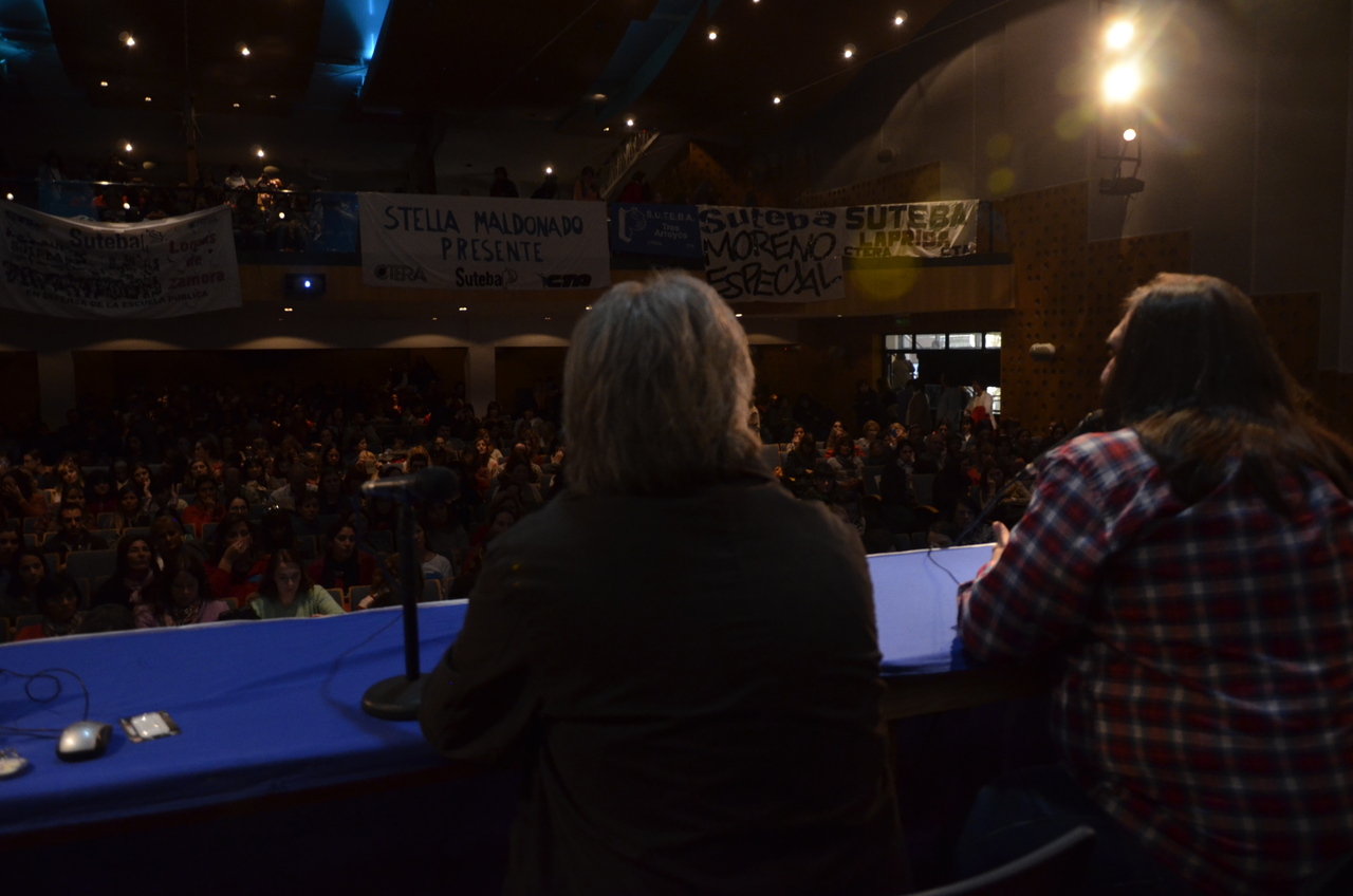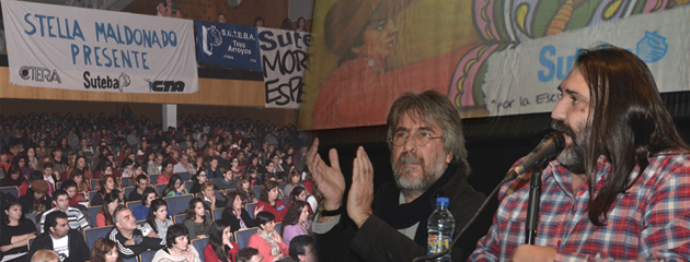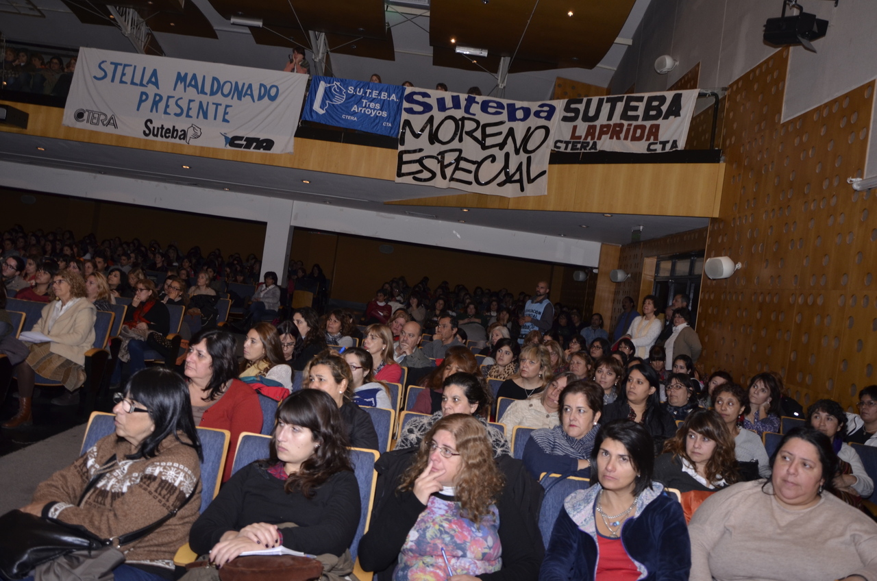 Cabe destacar que más de mil compañeros se hicieron presentes desde las diferentes seccionales que tiene el SUTEBA a lo largo del territorio bonaerense. En este clima tomó la palabra la Secretaria de Educación y Cultura del SUTEBA, Silvia Almazán, quien manifestó: "Destacamos el compromiso, la rebeldía y la lucha en defensa de la Educación Pública en la década del 90. Una lucha a favor del Derecho Social a la Educación con políticas públicas que, en el tránsito particular de estos años, se lograron expresar en: construcciones de edificios adecuados para la Educación Especial, la renovación del servicio de transporte, un Servicio Alimentario nutritivo, variado y específico" Asimismo expresó: "En cuanto a formación, en el marco del PNFP se logró un pos titulo para docentes de Educación Especial, en un acuerdo entre CTERA y el Ministerio de Educación de la Nación."