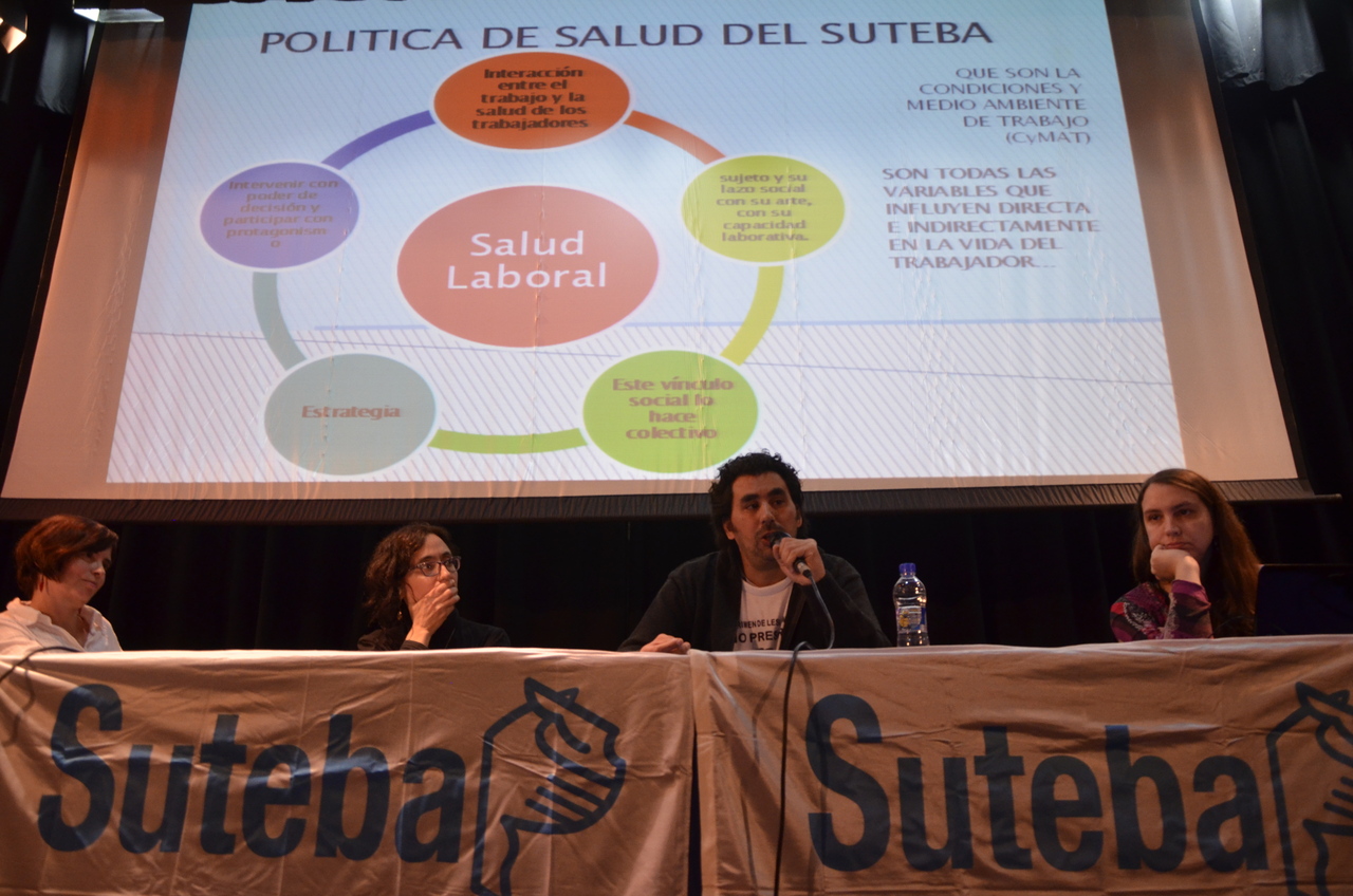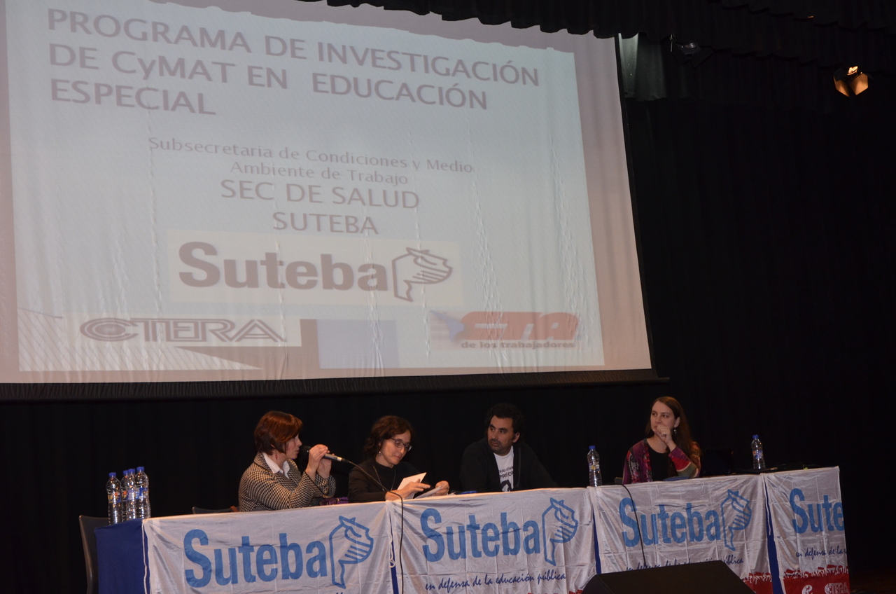 Por último, se contó con una mesa de debate coordinada por Vilma Alvarado, Secretaria de Salud del SUTEBA, e integrada por Tamara Socolovsky, médica pediatra integrante del Equipo de la Secretaría de Salud del SUTEBA, cuyo tema fue la "Medicalización de la infancia y adolescencia" . En la misma mesa se abordó el "Programa de Investigación de Condiciones y Medio Ambiente de Trabajo en Educación Especial " que realizaron José Correa, Secretario de Salud del SUTEBA Moreno y Especialista en Gestión de Salud y Seguridad en el Trabajo, y Paula Matheu, integrante del Equipo de la Secretaría de Salud del SUTEBA.