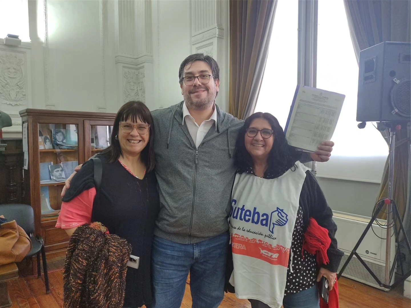El 30 de agosto, Día Internacional del Detenido Desaparecido, el SUTEBA, como parte integrante de la Comisión por la Verdad Histórica de la DGCyE, y con la presencia del Secretario General Roberto Baradel, participó del acto de reparación de los legajos de María Esperanza Cacabelos y Susana Jacue, Docentes detenidas desaparecidas; de María Liberatore, Docente cesanteada y sobreviviente; y de auxiliares y administrativxs de la DGCyE.