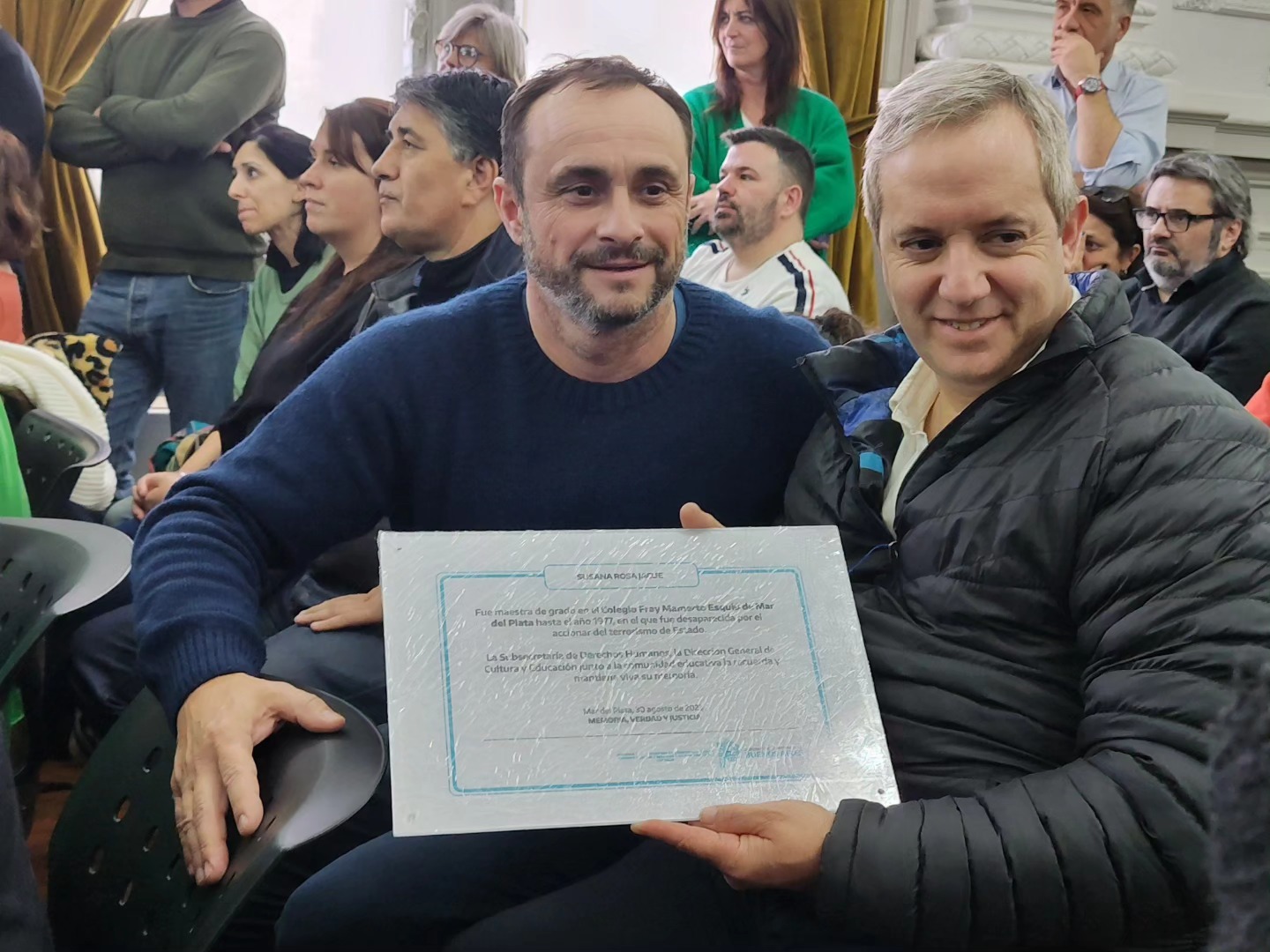 En este emotivo acto, que contó con la participación de Estela de Carlotto, presidenta de Abuelas de Plaza de Mayo, también se rectificaron los títulos de egresado del primario y secundario de Guillermo Pérez Roisinblit, nieto restituido por la lucha de Abuelas, con su verdadera identidad.