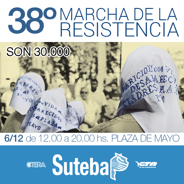 Ayer, SUTEBA participó, como todos los años, en la 38° Marcha de la Resistencia junto a las Madres de Plaza de Mayo Línea Fundadora, que estuvieron acompañadas por decenas de militantes de organizaciones políticas, sociales y gremiales.