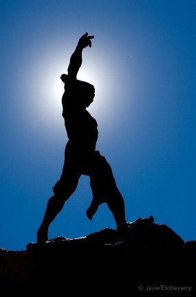 Esta obra fue emplazada donde originalmente se encontraba la torre de Santa Bárbara, que fue corrida unos 50 metros a su izquierda. La nueva escultura está compuesta por piedra y unas 70 toneladas de bronce, las cuales se dividieron en cuatro partes. La principal, está dada por el grupo escultórico de 9 metros de alto, que representa al aborigen Socompa, quién se dice que fue el que transmitió la noticia de Libertad; sin embargo muchos aseguran que la figura correspondería a Diego Viltipoco, cacique que ayudó a Belgrano en la Lucha. En la Escultura, se vislumbran tres imágenes que representan, a los grupos originarios, a los gauchos y finalmente una imagen que muestra la batalla que libraron los nativos, junto a los gauchos, en contra de los realistas.