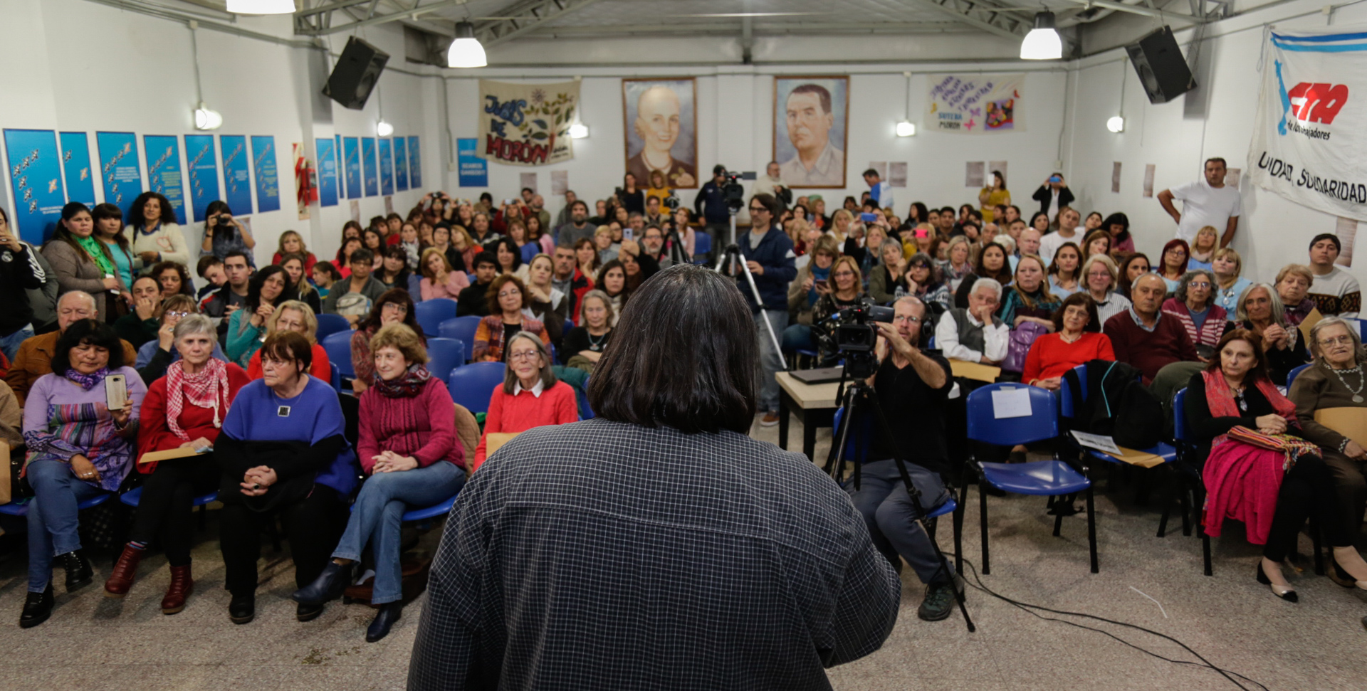 "Nos arrebataron 30.000 compañerxs y a pesar de eso seguimos luchando desde el Sindicato, desde la CTERA y desde el SUTEBA. Isauro Arancibia, Marina Vilte, Eduardo Requena y Susana Pertierra, entre tantxs otrxs, están presentes en cada una de nuestras luchas, como todxs lxs desaparecidxs. La resistencia a la dictadura fueron lxs Trabajadorxs, protagonistas imprescindibles de la reconquista de la Democracia. Con la misma convicción, hoy seguimos luchando por una Patria justa, libre y soberana", culminó emocionada y entre aplausos Cecilia Martínez.
