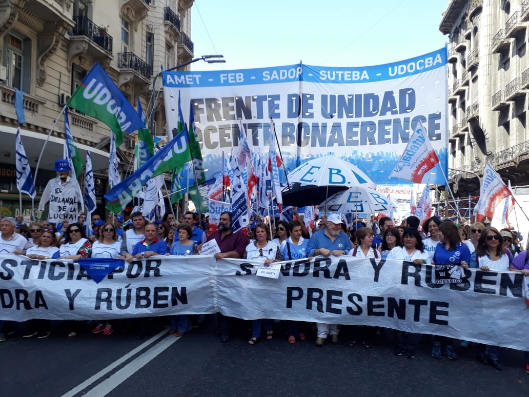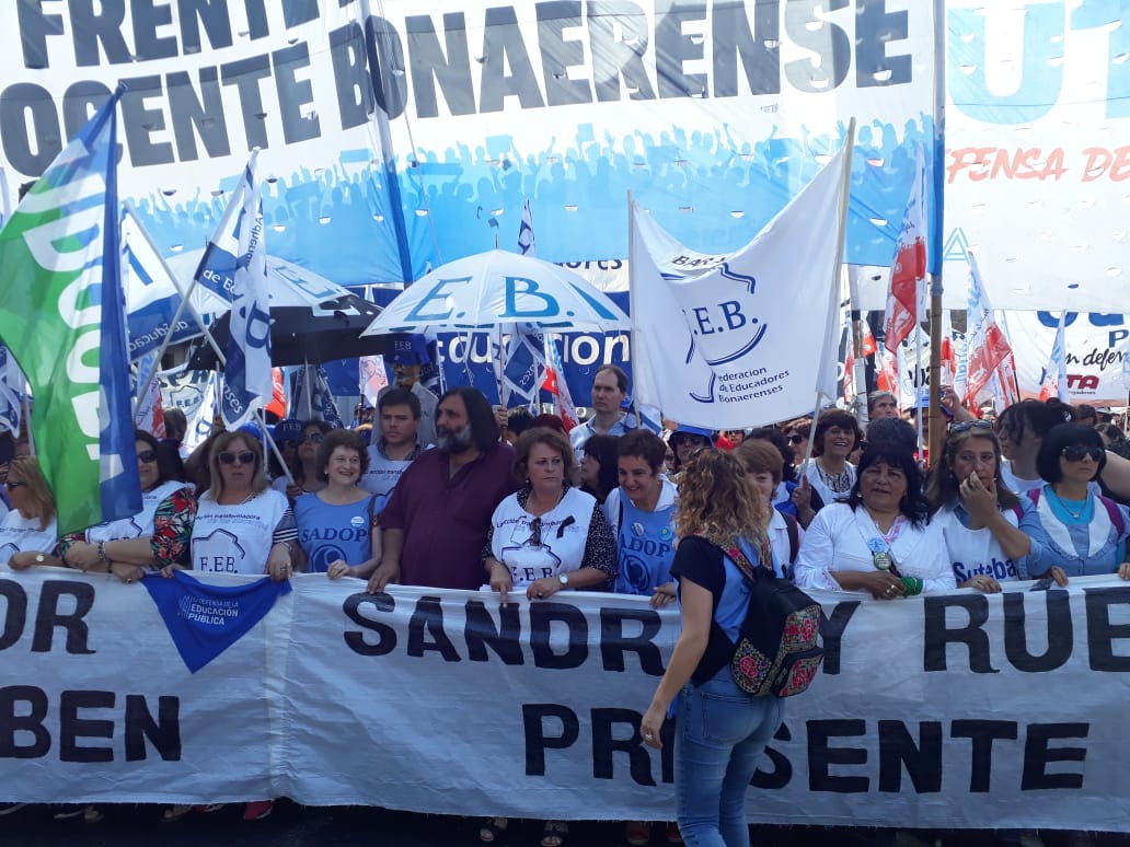 En estos momentos, desde SUTEBA y en el marco del Paro Provincial de 48 hs convocado por el Frente de Unidad Docente Bonaerense, lxs Trabajadorxs de la Educación de todos los distritos de la Provincia se están movilizando desde el Congreso de la Nación hacia la Casa de la Provincia para demandarle al Gobierno de Vidal por Salarios Dignos y Escuelas Seguras.