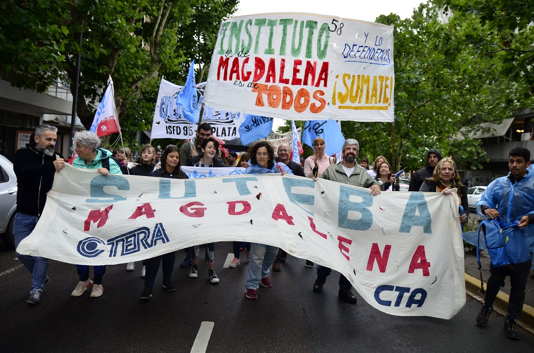 La Secretaria de Educación Superior del SUTEBA, Sandra Ramal, expresó: "Estamos dando una lucha ejemplar junto a la comunidad educativa en toda la Provincia en defensa del derecho social a la Educación Superior. Hoy, con una masiva movilización, planteamos en la DES (como lo venimos haciendo en cada distrito y región educativa) que los Institutos estamos de pie, reclamando en defensa de las carreras y los cursos que faltan".