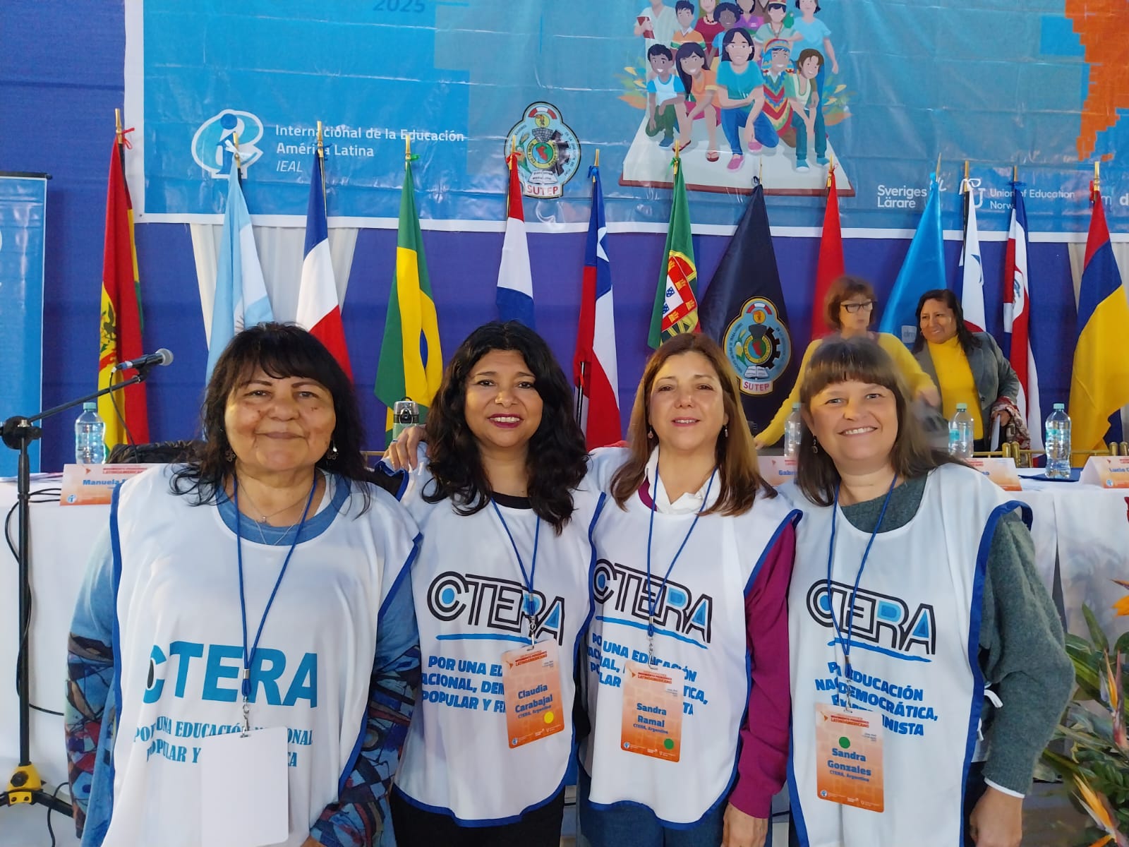 Representando a la Argentina, participó una comitiva conformada por Sonia Alesso, Roberto Baradel, nuestro Secretario General, Secretario General Adjunto de la CTERA y miembro del Consejo Ejecutivo Mundial de la IE; Silvia Almazán, Secretaria General Adjunta, y una delegación del Consejo Ejecutivo Provincial del SUTEBA compuesta por Sandra Ramal, Claudia Carbajal y Sandra González.