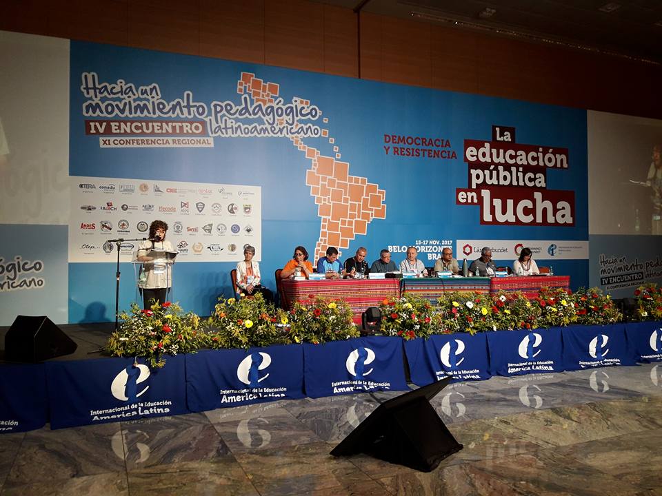 Desde el 15 hasta el 17 de noviembre, en Belo Horizonte, Brasil, se llevó a cabo el IV Encuentro: Hacia un Movimiento Pedagógico Latinoamericano. Durante estos tres días se realizaron distintos seminarios y debates con representantes de todos los países que participan de la Internacional de la Educación.