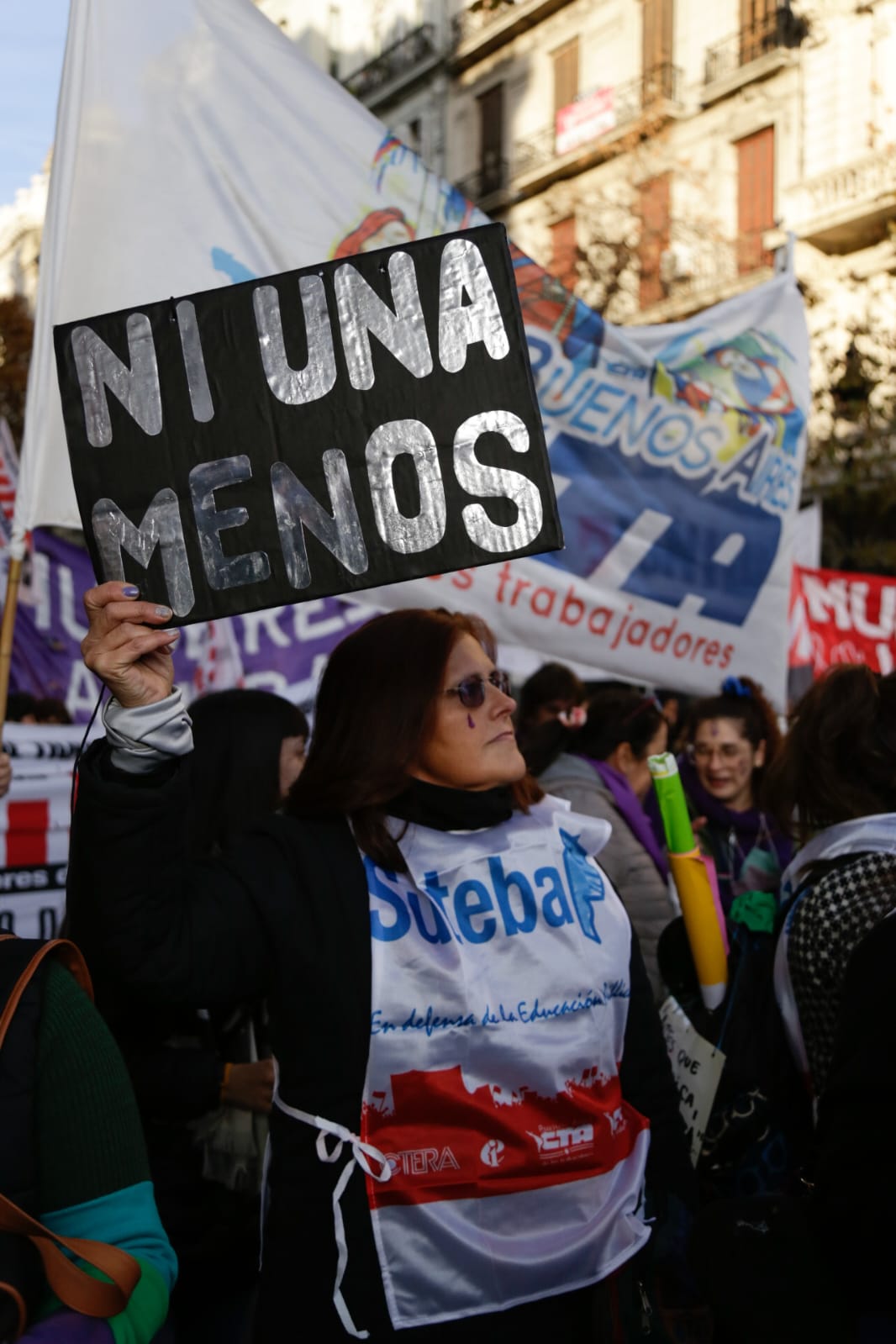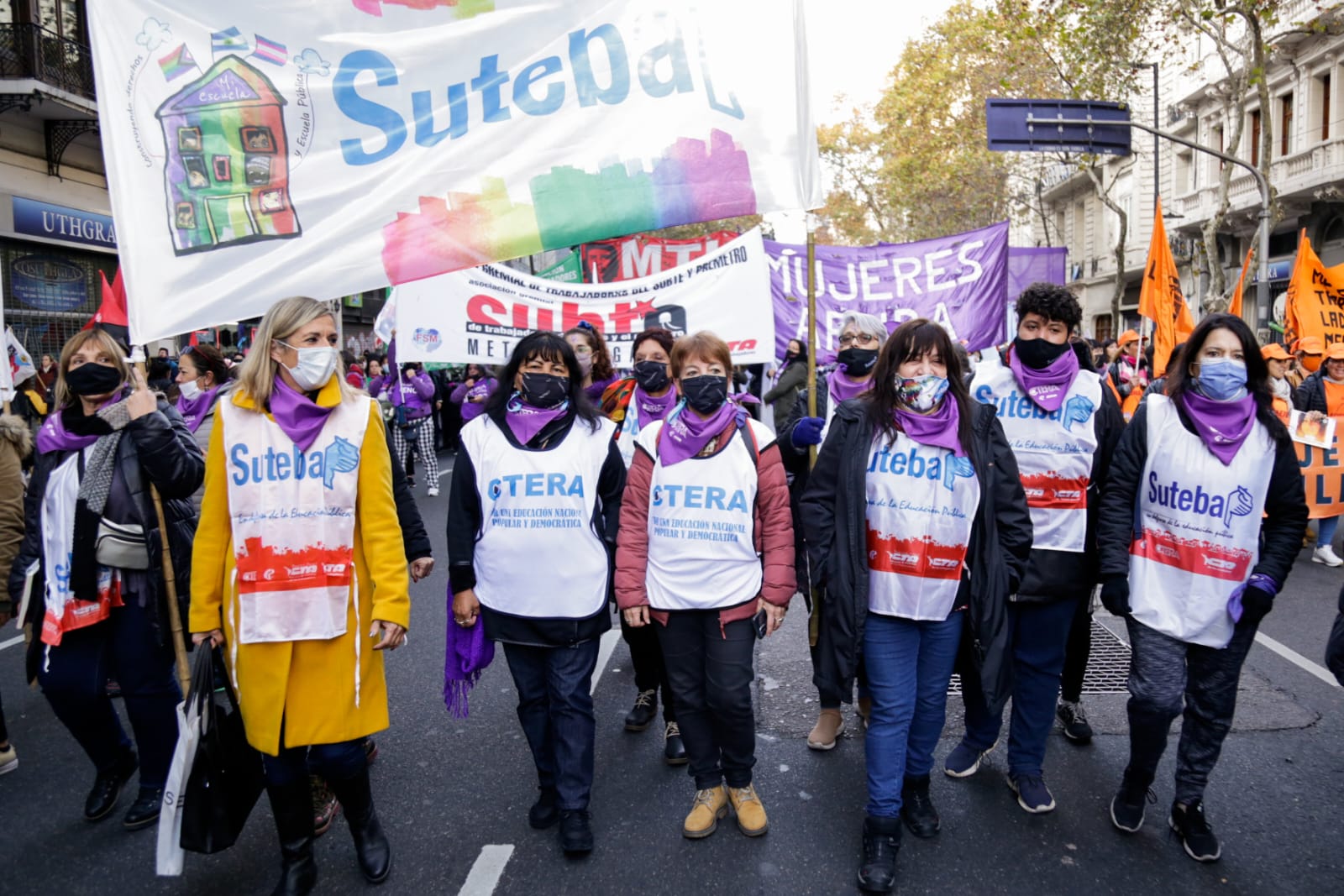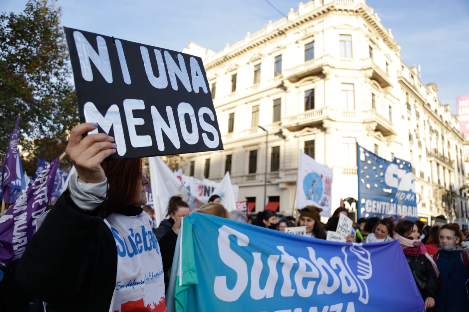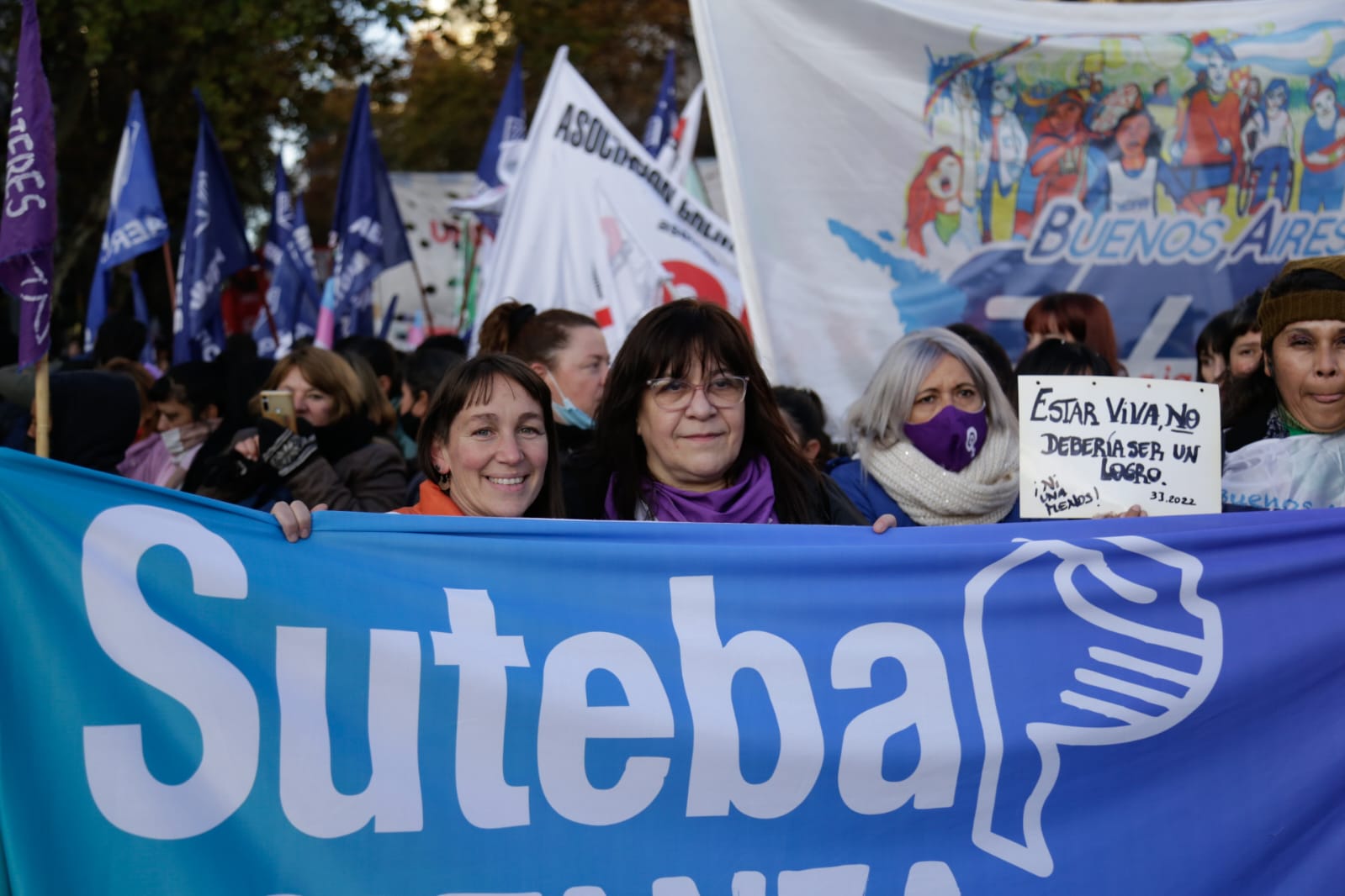 Desde el SUTEBA seguimos sosteniendo firmemente las banderas contra la violencia machista y patriarcal junto al movimiento de mujeres, los feminismos y las Organizaciones Sindicales, Políticas y Sociales.