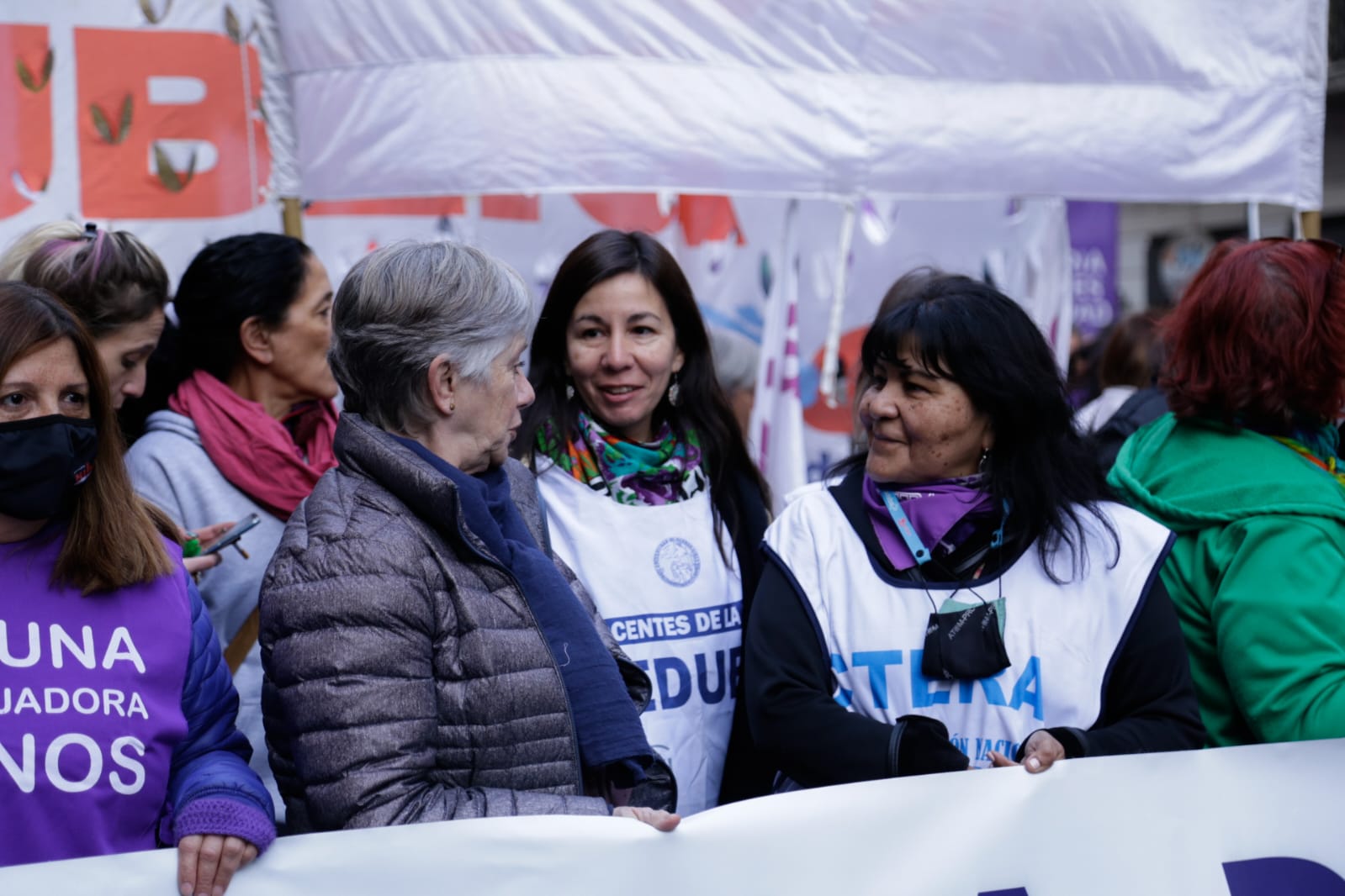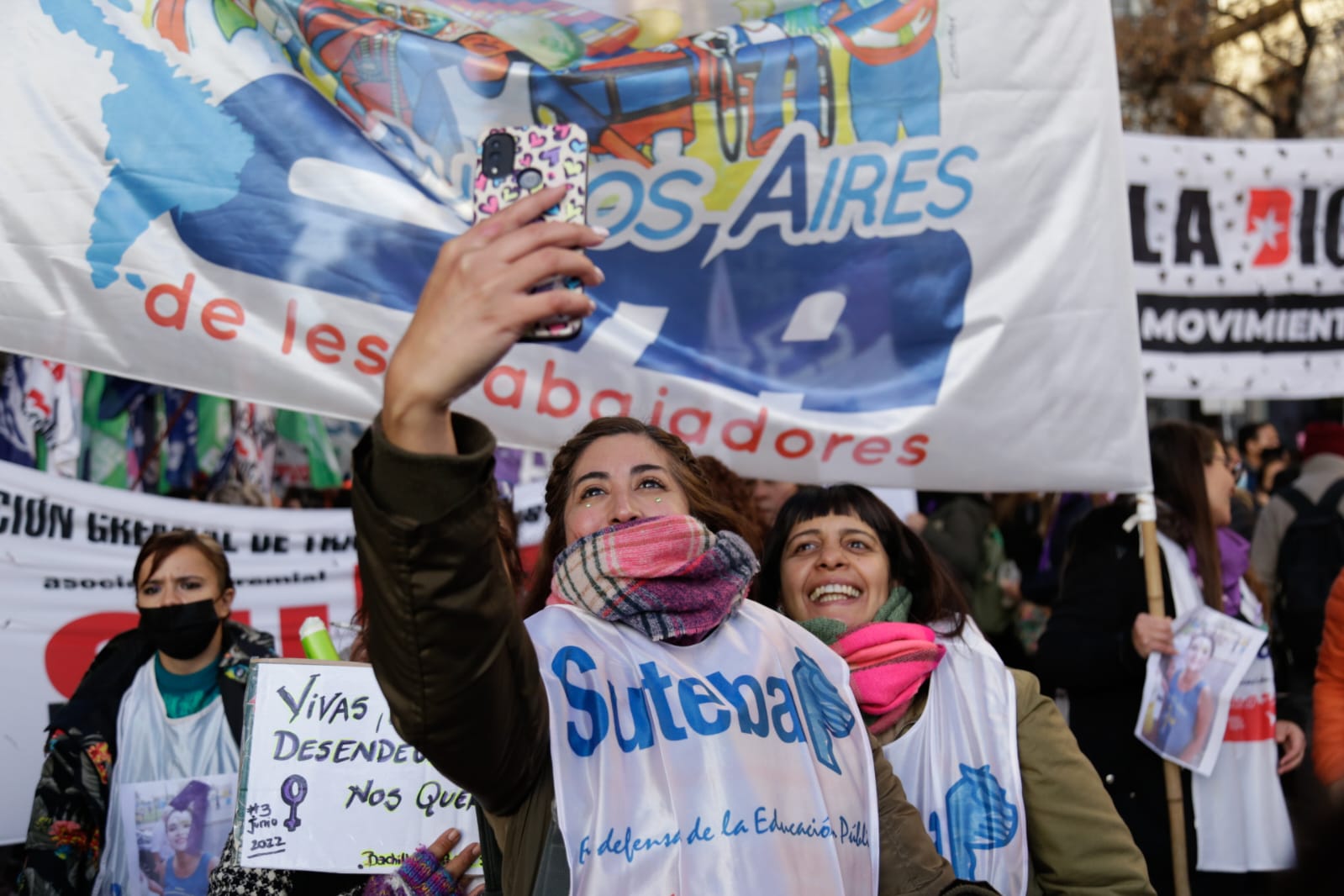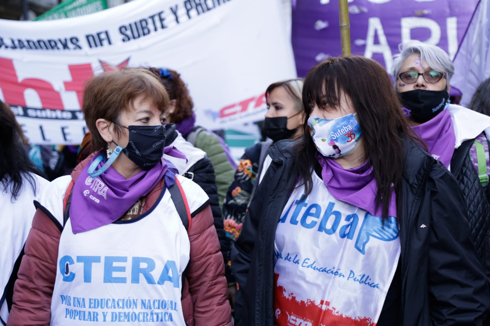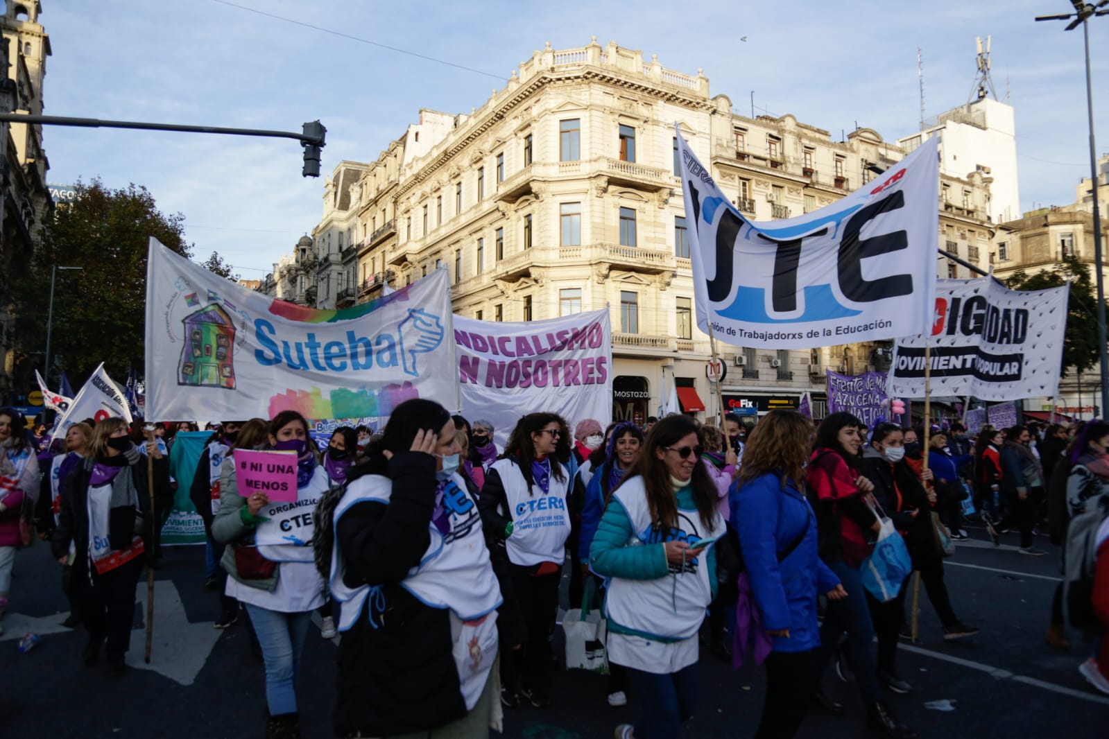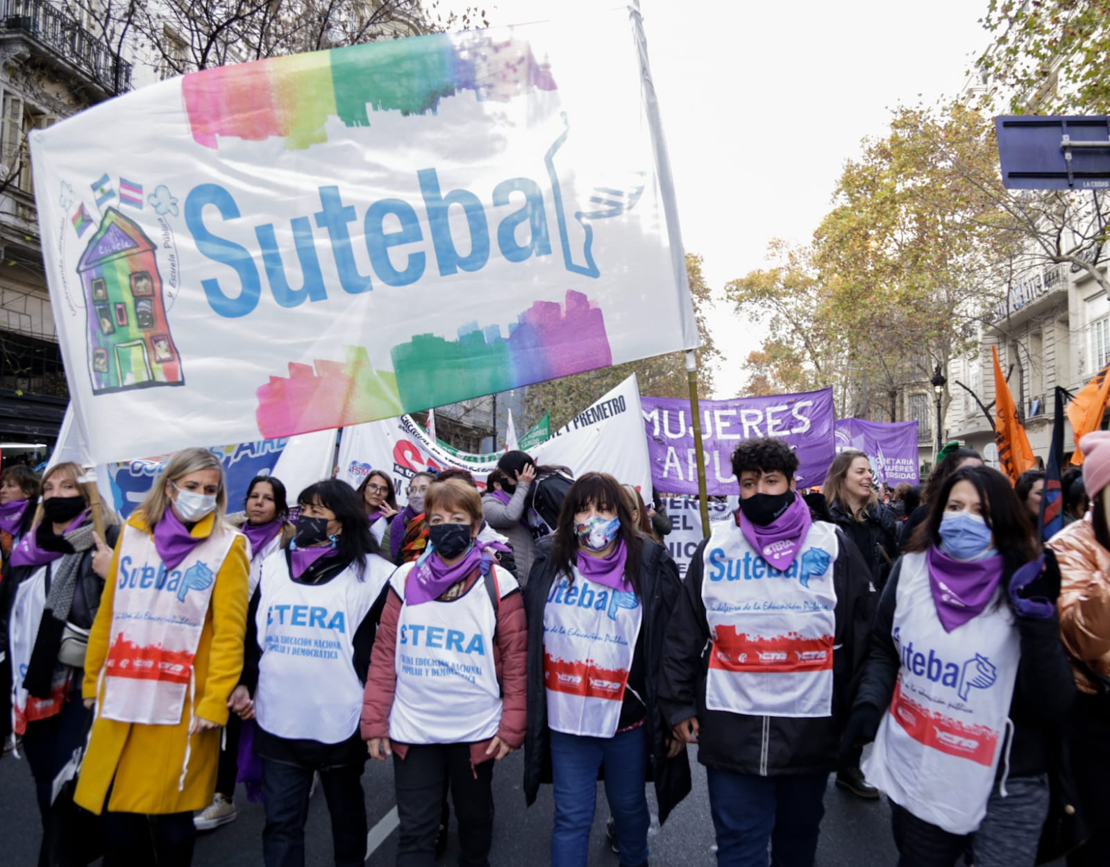 En la misma línea, Amanda González, Subsecretaria de Igualdad de Géneros y Diversidades, sostuvo: "Muy contenta, porque volvimos a ganar la calle después de dos años de pandemia, poder reencontrarnos con las compañeras y compañeres, con las Trabajadoras organizadas, sosteniendo las mismas banderas de lucha desde el SUTEBA desde hace siete años, con el primer Ni Una Menos. Muchas de nuestras demandas se convirtieron en políticas públicas, gracias a la lucha colectiva, y seguimos sosteniendo la implementación de la ESI con perspectiva no binaria, de género, no capacitista, en todas las Escuelas, y la Ley de Identidad de Género como garante de las pibas y pibes, y también que ninguna compañera y ningún compañere falte de su casa. Seguiremos luchando por cada uno de los derechos que nos falta conseguir".