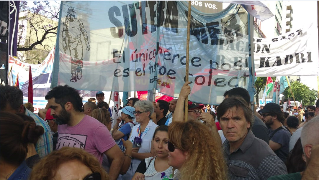 Ante esta situación, SUTEBA en el marco de la convocatoria de la CTA, se moviliza el día de hoy, junto a diversas organizaciones sociales, sindicales y políticas para decir NO al FMI, NO a las políticas autoritarias y fascistas, NO a la concentración de la riqueza y NO a la agenda del G20.