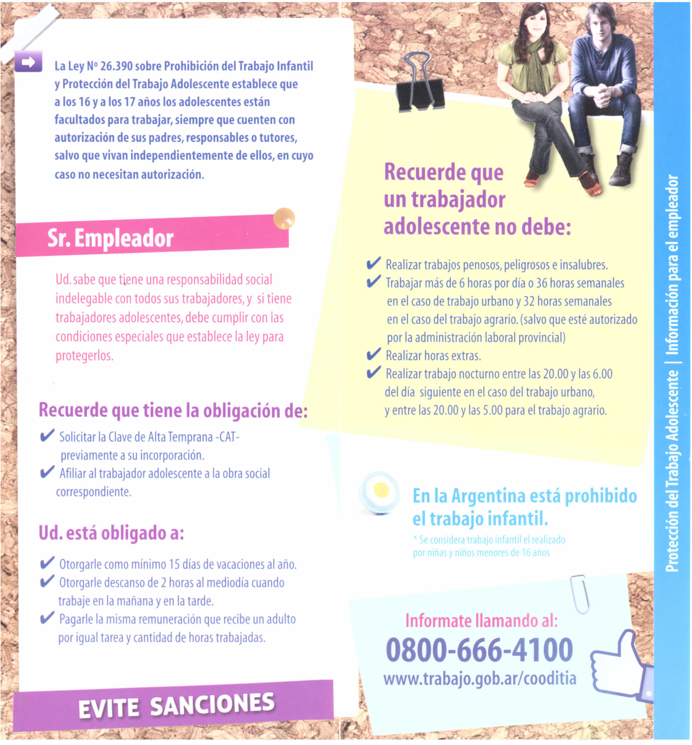 - Muchas veces no se considera trabajo, por ello redunda para los/as adolescentes en trabajo no registrado, sin remuneración o muy escasa, sin el reconocimiento de los derechos sociales.