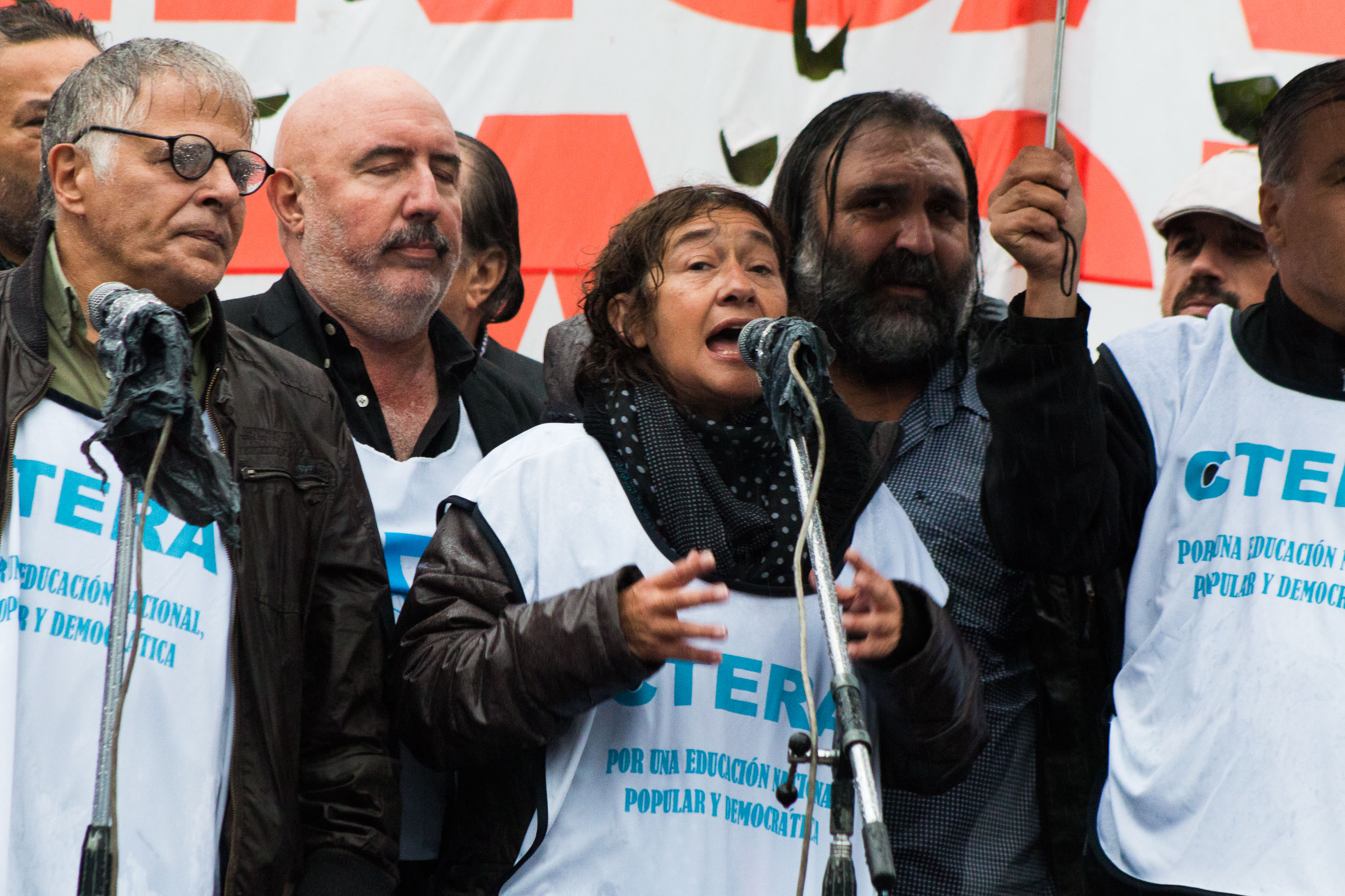 Madres y Abuelas de Plaza de Mayo, Organismos Sociales y de Derechos Humanos, actores, artistas, senadores y diputados estuvieron presentes, en apoyo a los cincos gremios nacionales y en defensa de la Educación Argentina.