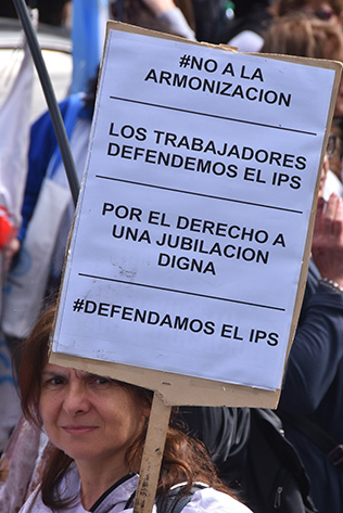 Asimismo, Lisandro Pereda, Delegado General Junta Interna de ATE en el IPS, denunció: "Rechazamos la política que lleva adelante el Gobierno de Vidal y que desfinancia el IPS, esto nos genera la pérdida de derechos muy importantes que tiene nuestra caja previsional, como la movilidad directa, determinación del cargo y edad jubilatoria".