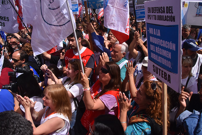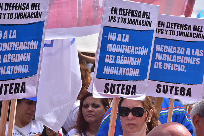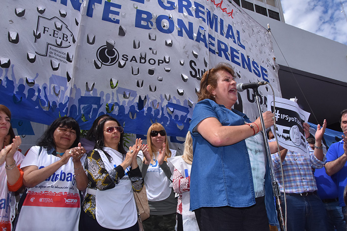 Por su parte, el Secretario General del SUTEBA, Roberto Baradel, aseguró: "Los sindicatos del FGDB nos comprometemos a realizar un paro general en la Provincia si hay una sola iniciativa de armonización, sea del Poder Ejecutivo o Legislativo. No aceptamos ninguna iniciativa que ponga en riesgo las jubilaciones de los trabajadores estatales y docentes. Para defender el IPS, seguimos reclamando reapertura de paritarias para que se incorporen las sumas al básico y que haya aportes y mejora salarial".