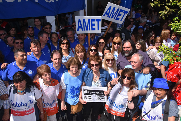 El viernes 14, el SUTEBA, en el marco del Frente Gremial Docente Bonaerense, realizó un abrazo simbólico frente al Instituto de Previsión Social (IPS), ante a las políticas que está implementando el Gobierno Provincial y las graves problemáticas que afectan a los Trabajadores de la Educación bonaerenses.