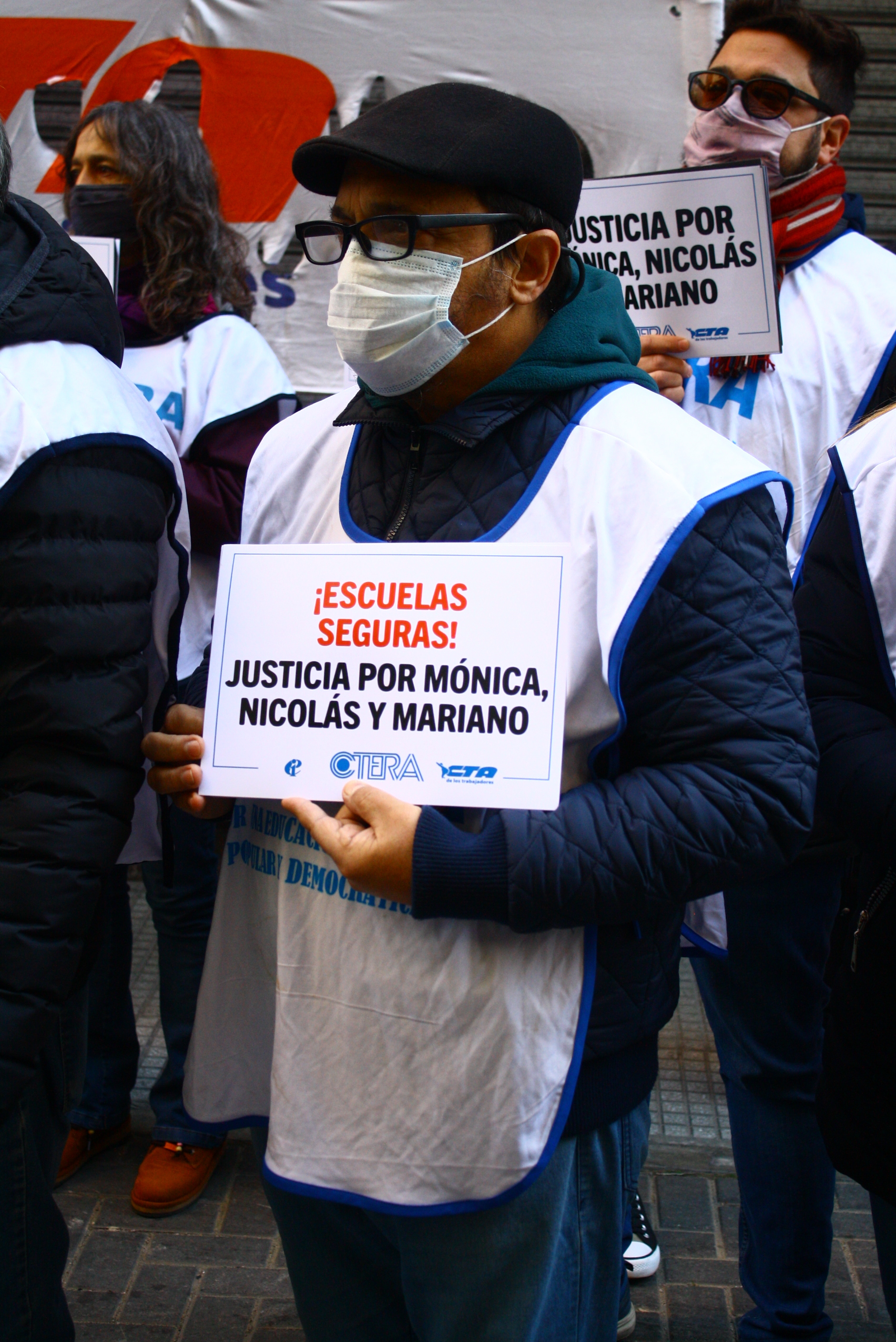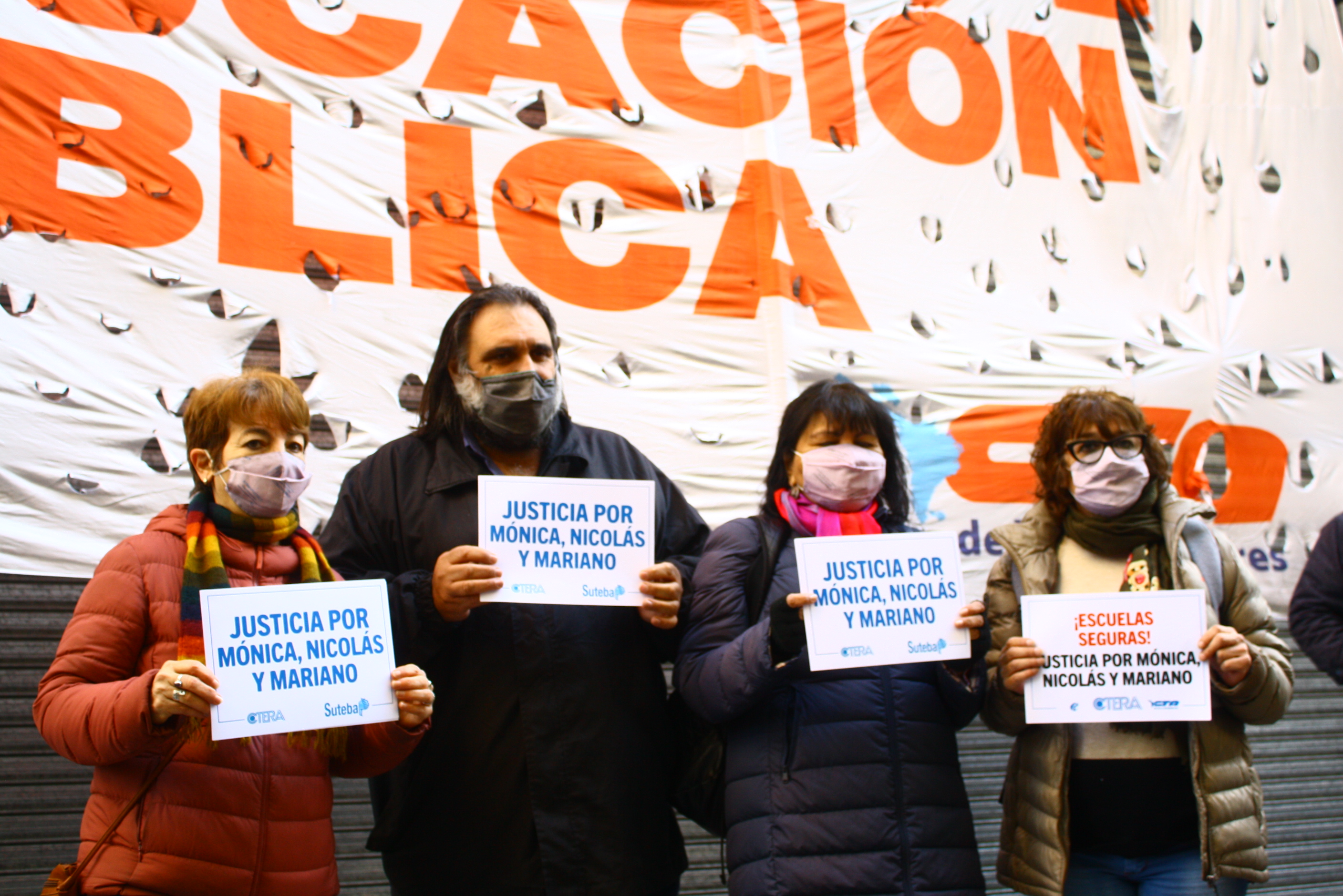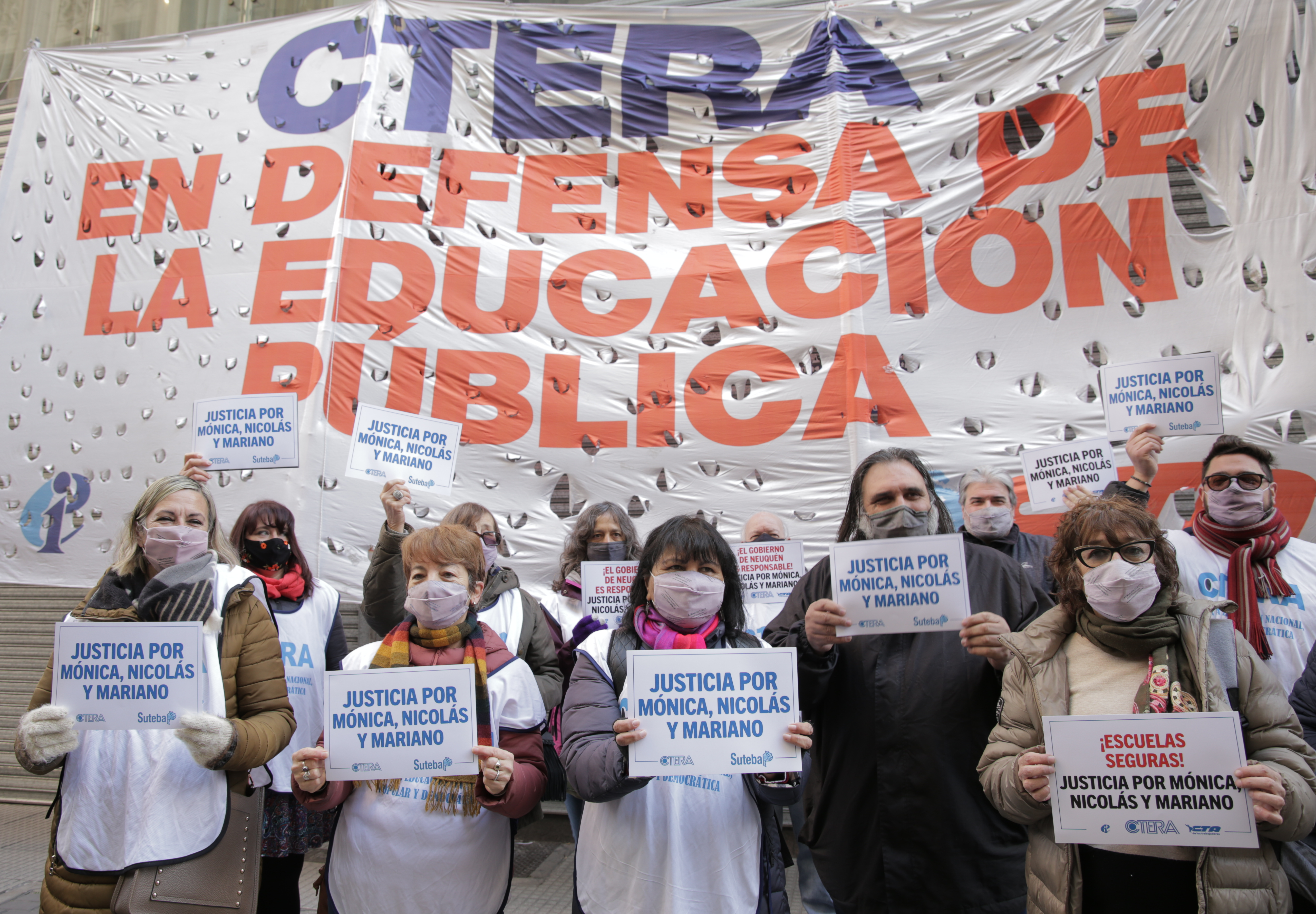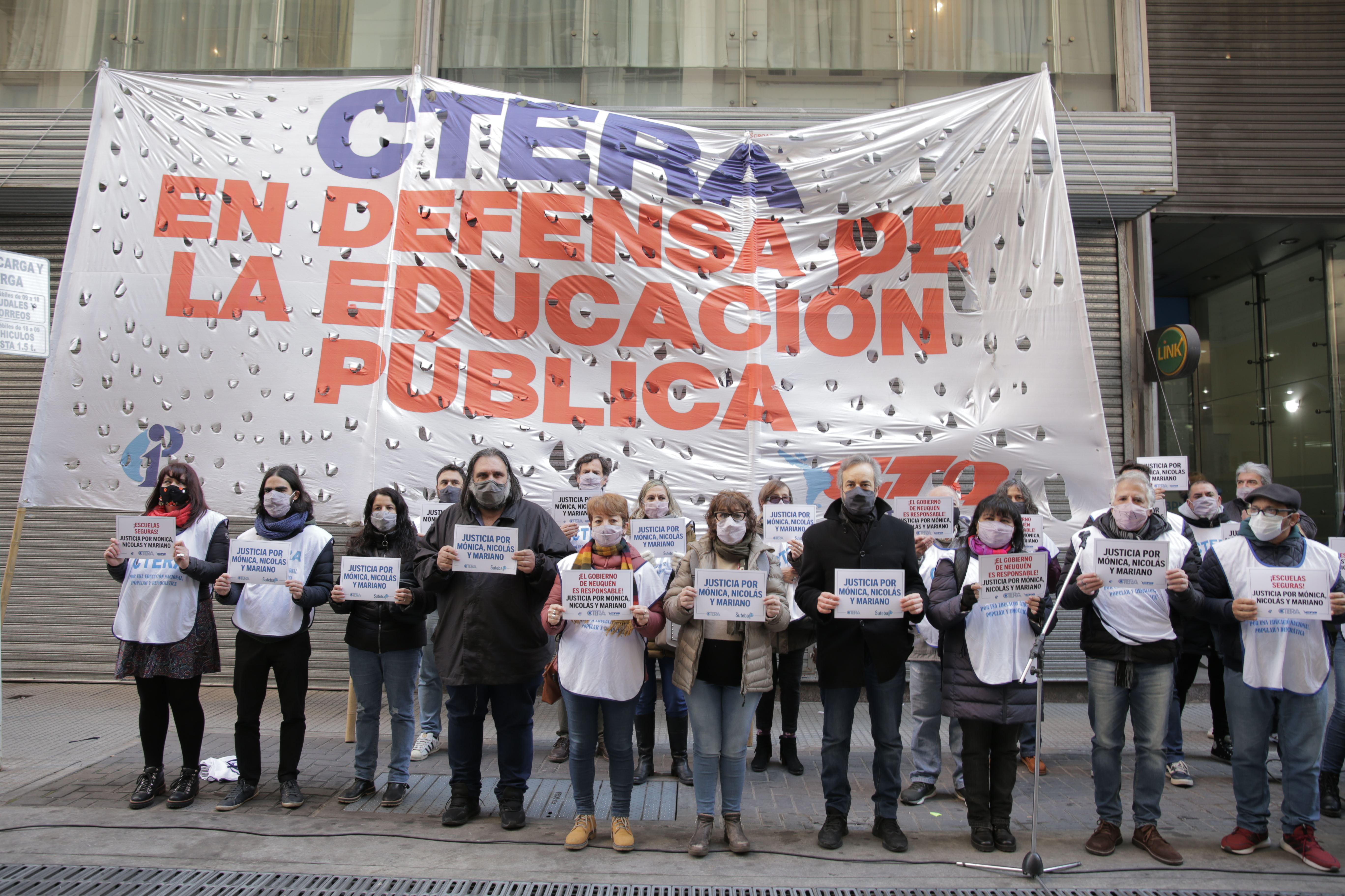 CTERA, encabezada por Sonia Alesso – Secretaria General – y Roberto Baradel – Secretario General Adjunto –, se concentró frente la Casa de la Provincia de Neuquén en la Ciudad de Buenos Aires, para exigir Justicia, Escuelas seguras y solidarizarse con las familias, lxs compañerxs de la Escuela y ATEN, en su lucha por esclarecer los hechos y reclamar justicia por Mónica, Nicolás y Mariano.