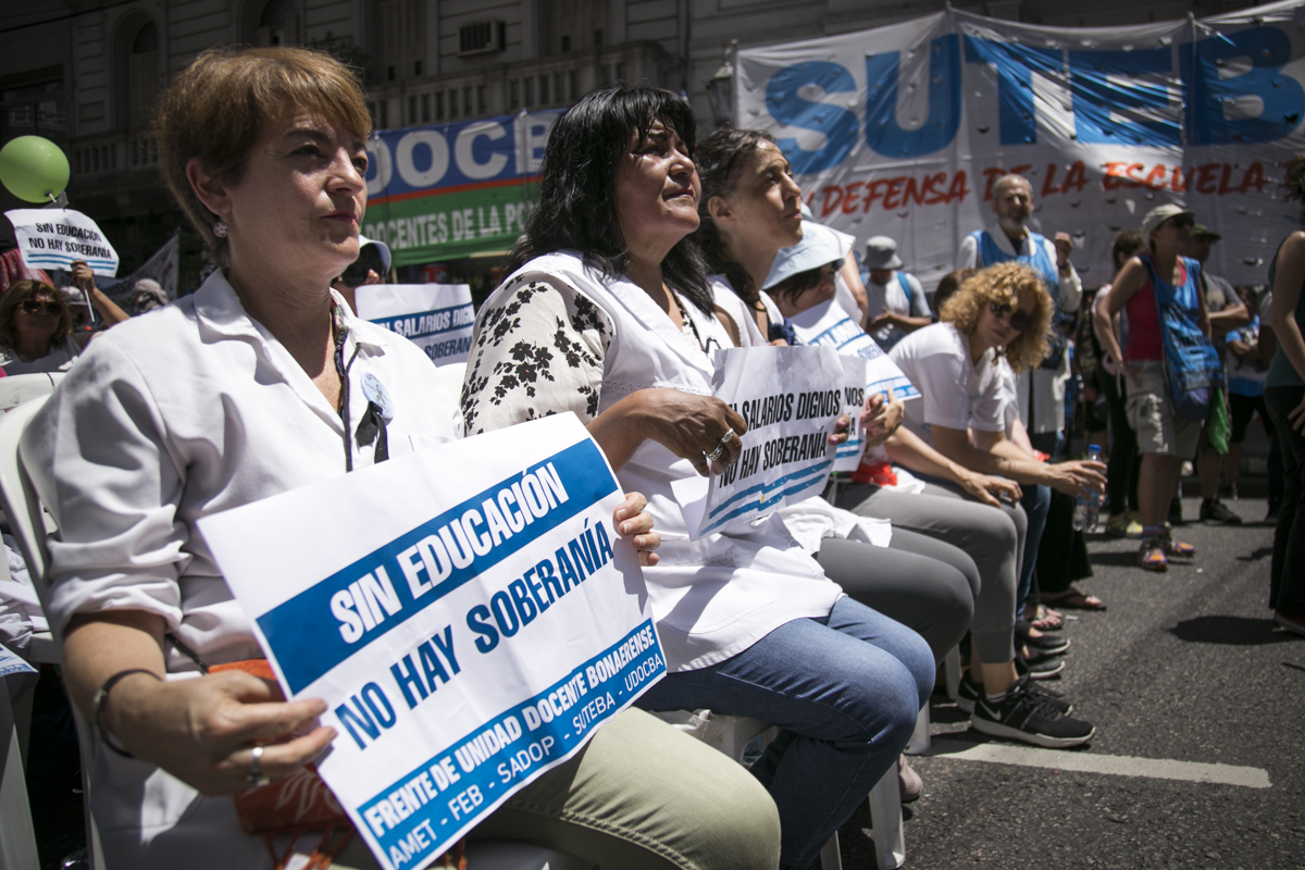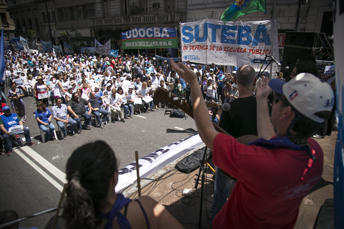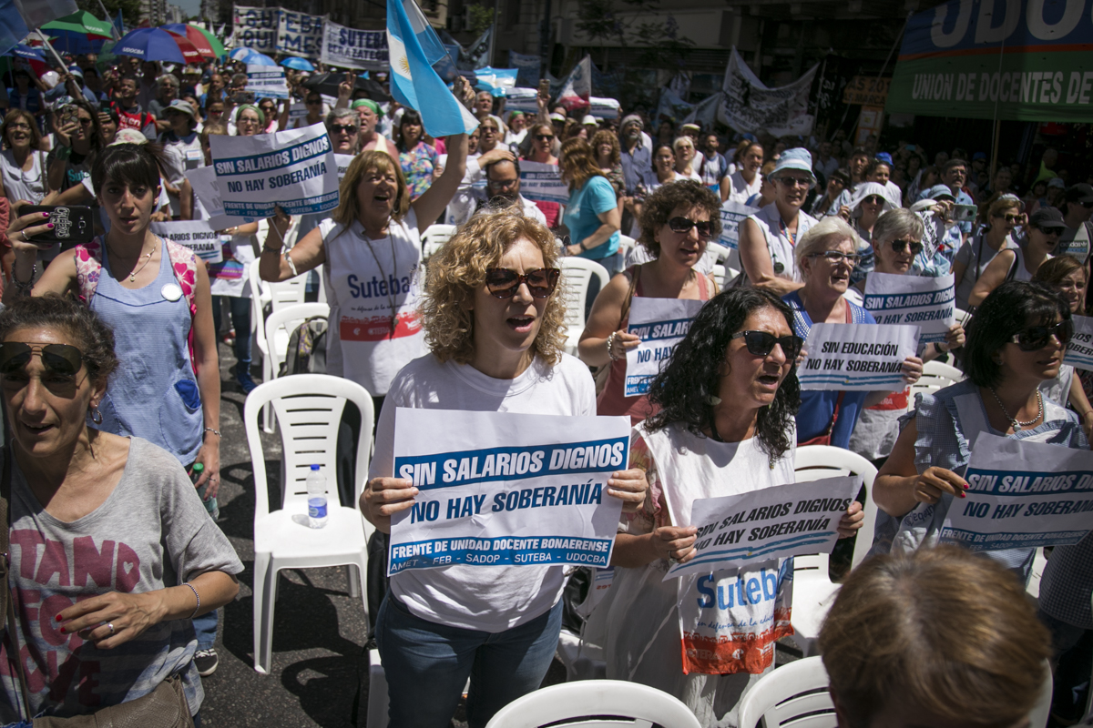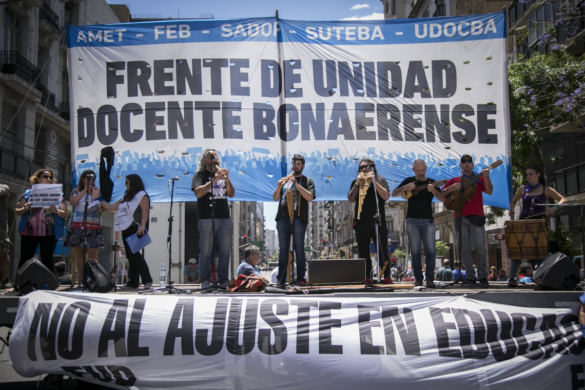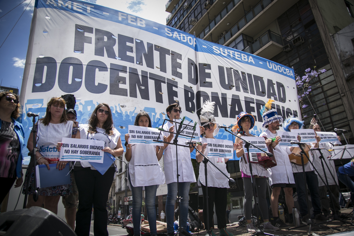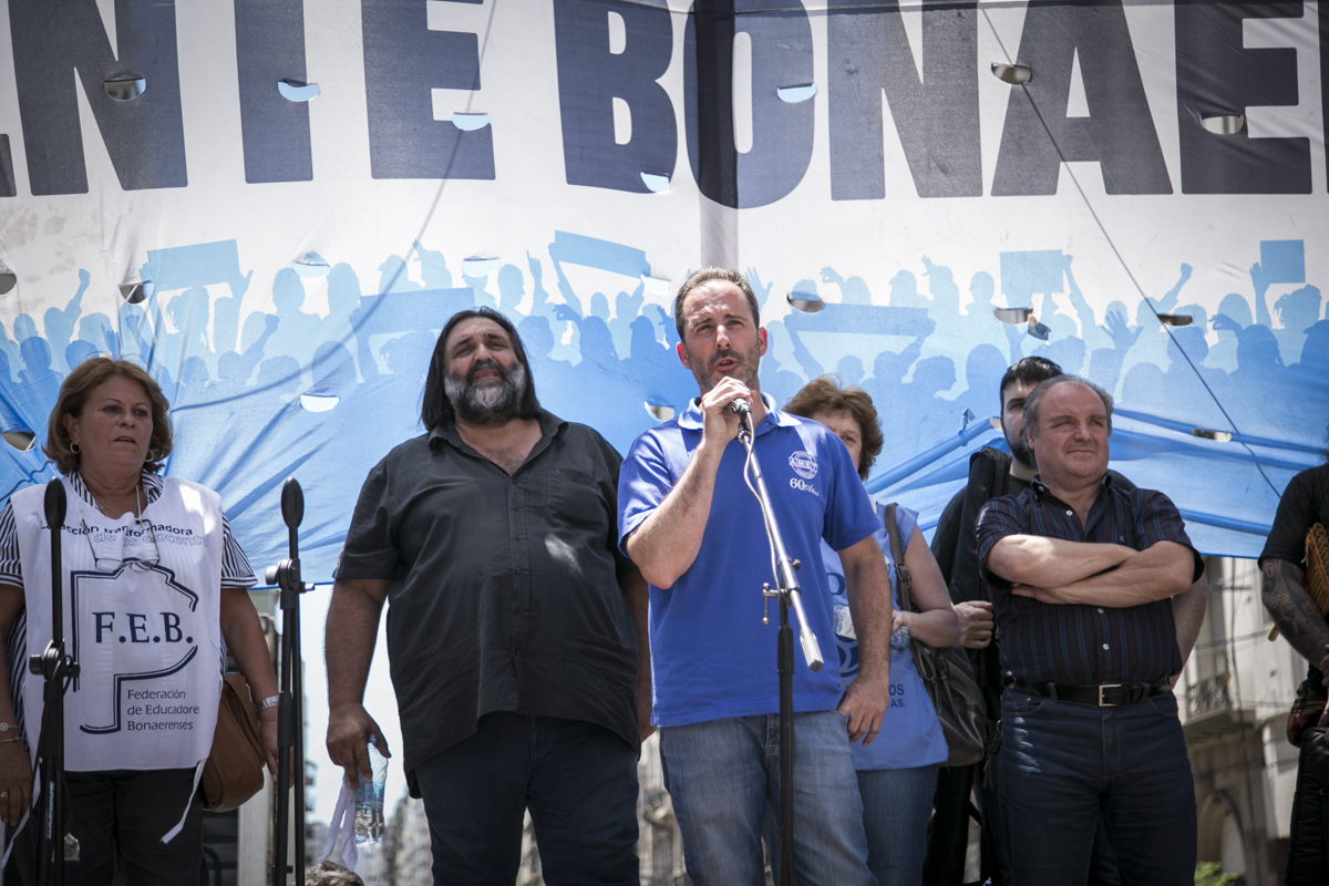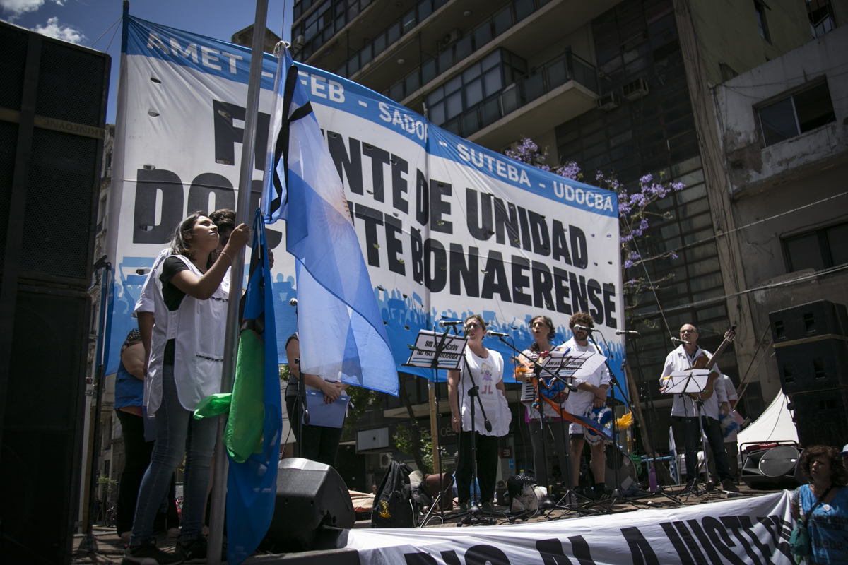 "Lxs Ministrxs y la Gobernadora deben hacerse cargo y resolver las necesidades de lxs Docentes y de las Escuelas bonaerenses. Queremos Escuelas seguras y salarios dignos. Repudiamos los sumarios a los Directivxs y Docentes y exigimos que se termine el amedrentamiento por ejercer el legítimo derecho a huelga. Estamos en alerta por las Escuelas Técnicas, los CFP y la Educación Superior. Y esto hay que decirlo claramente: no se cierra la Paritaria porque Cambiemos quiere bajarle el salario a lxs Trabajadorxs y el FUDB no está dispuesto a aceptarlo. Deben convocarnos y resolver las necesidades de la Escuela Pública, porque si así terminamos este año, no empezamos el año que viene. Y el Gobierno Nacional debe convocar a CTERA a discutir Paritarias, si no lxs Docentes de todo el país vamos a parar para exigirla", culminó Baradel.