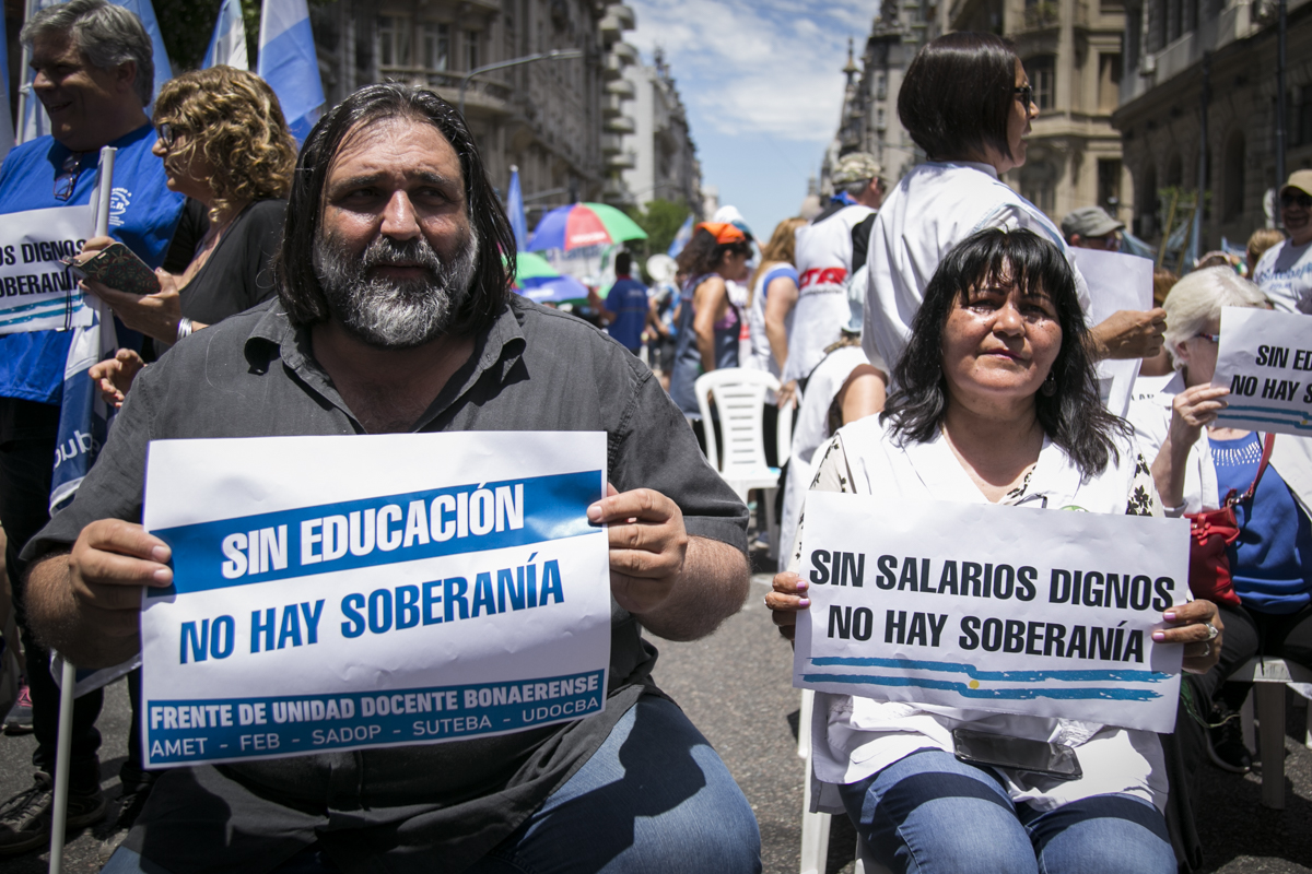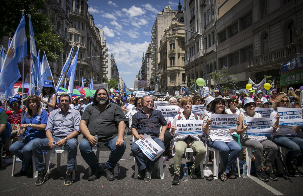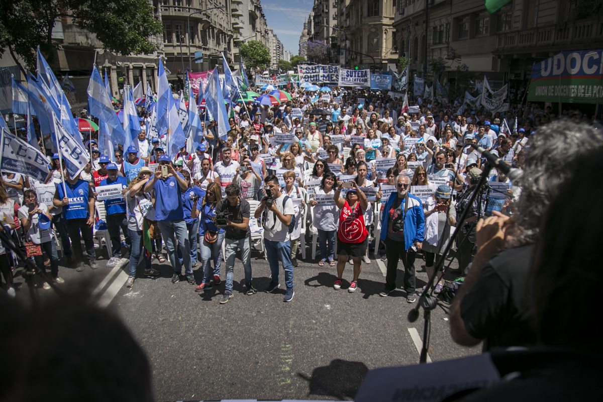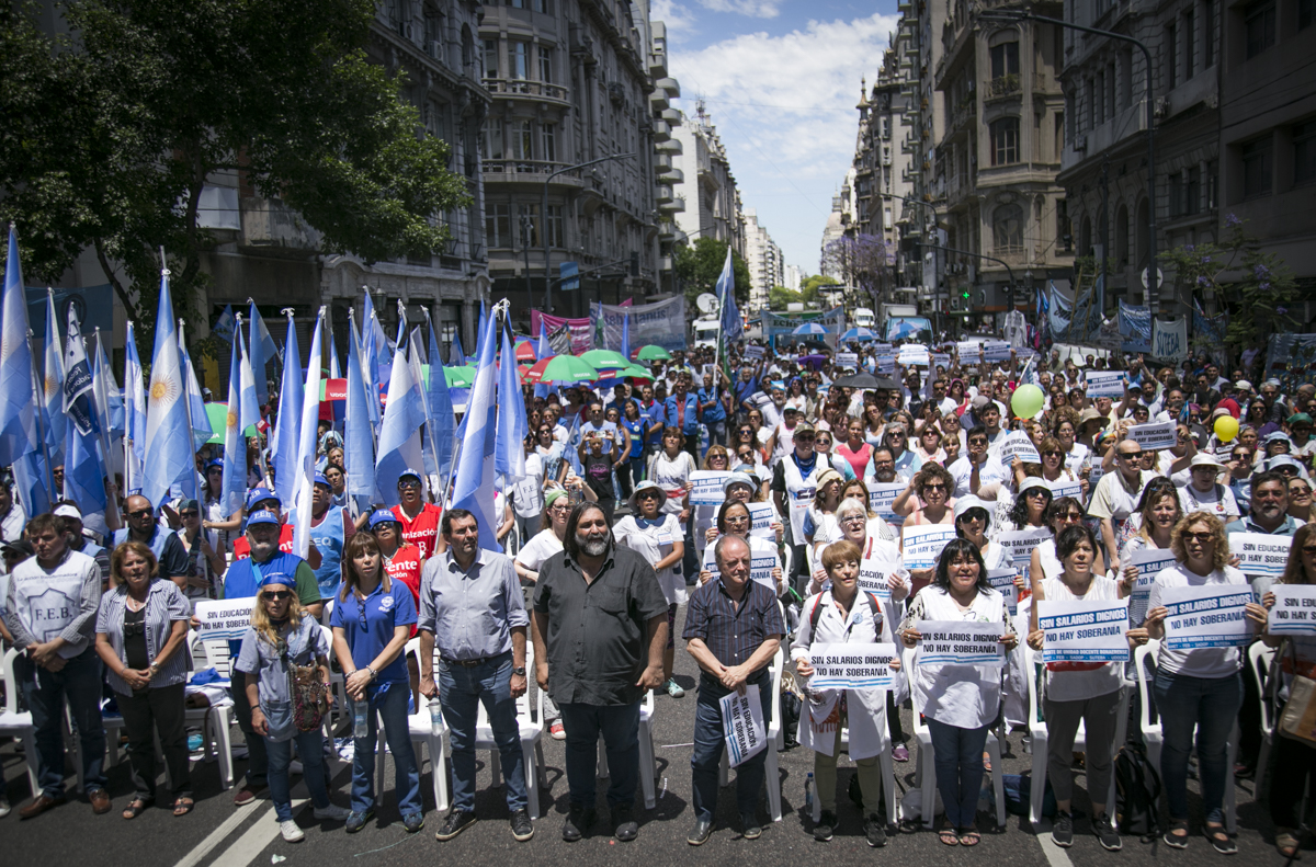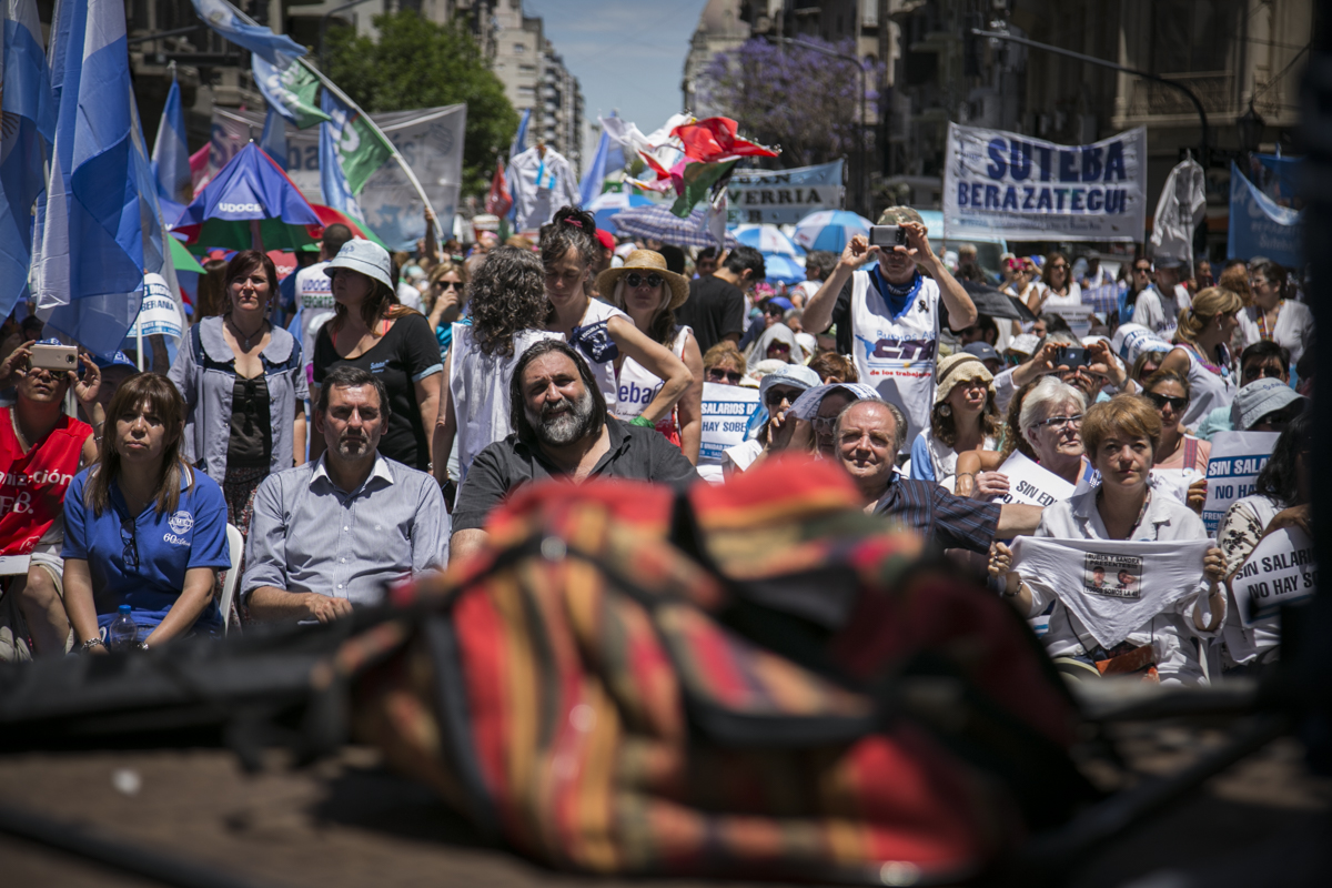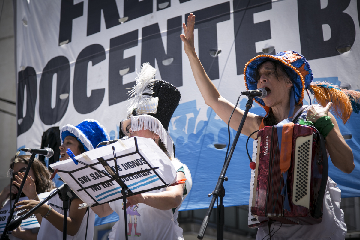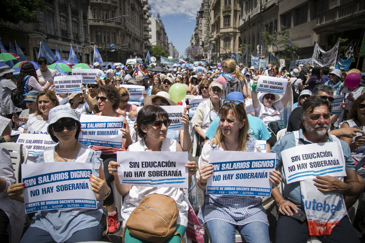"Lxs Ministrxs y la Gobernadora deben hacerse cargo y resolver las necesidades de lxs Docentes y de las Escuelas bonaerenses. Queremos Escuelas seguras y salarios dignos. Repudiamos los sumarios a los Directivxs y Docentes y exigimos que se termine el amedrentamiento por ejercer el legítimo derecho a huelga. Estamos en alerta por las Escuelas Técnicas, los CFP y la Educación Superior. Y esto hay que decirlo claramente: no se cierra la Paritaria porque Cambiemos quiere bajarle el salario a lxs Trabajadorxs y el FUDB no está dispuesto a aceptarlo. Deben convocarnos y resolver las necesidades de la Escuela Pública, porque si así terminamos este año, no empezamos el año que viene. Y el Gobierno Nacional debe convocar a CTERA a discutir Paritarias, si no lxs Docentes de todo el país vamos a parar para exigirla", culminó Baradel.