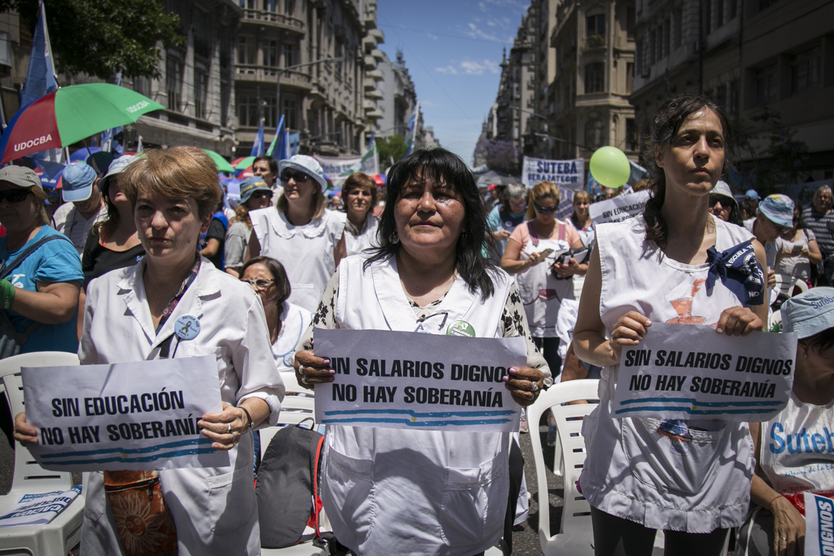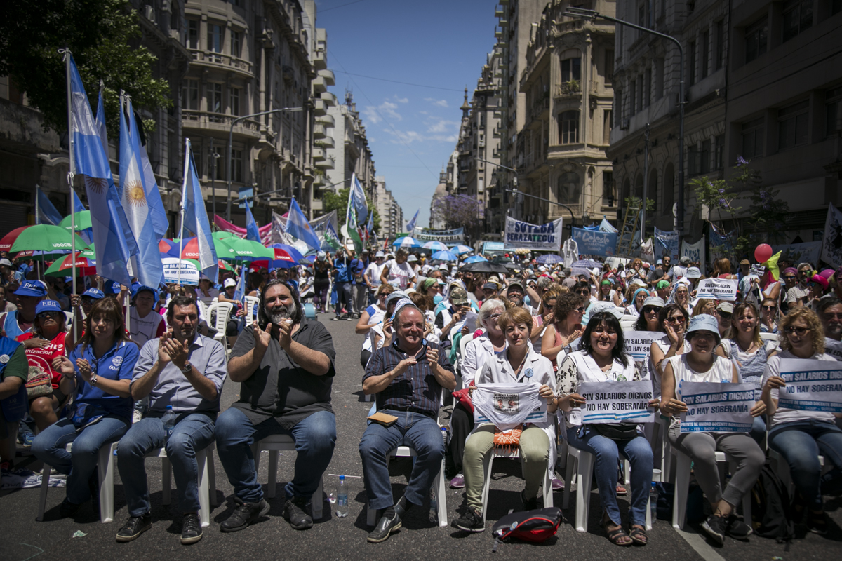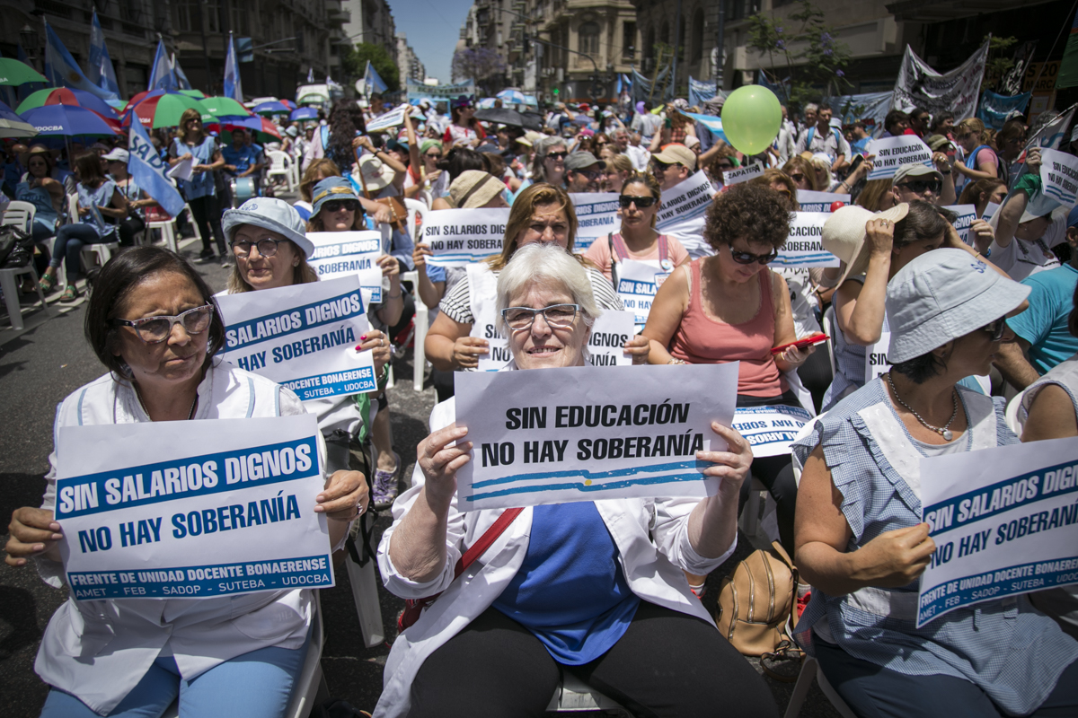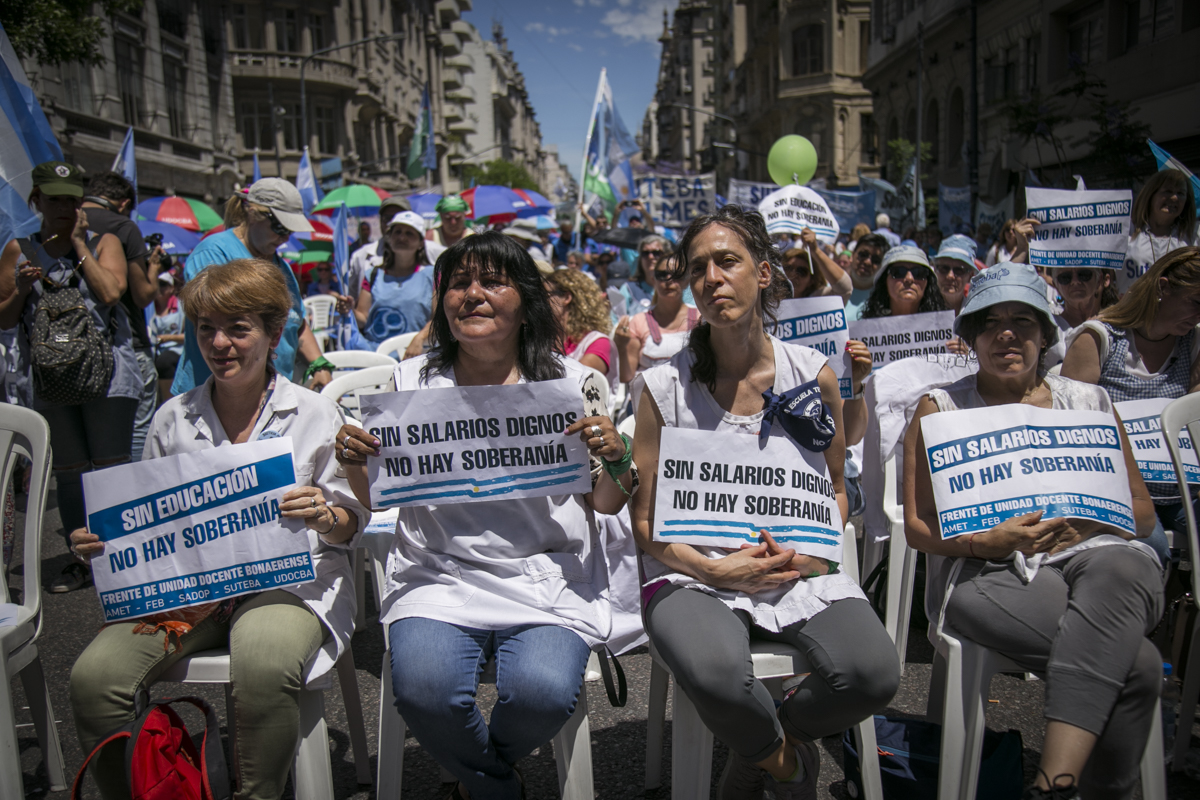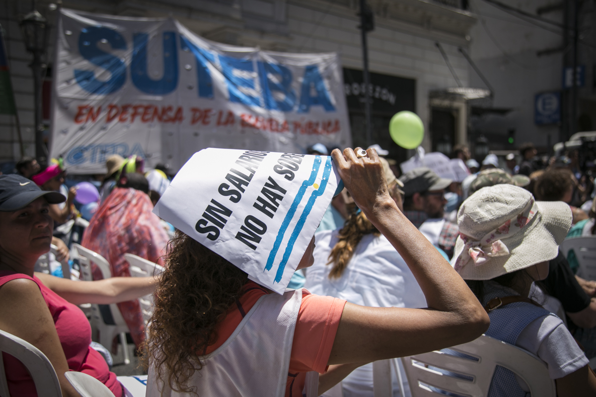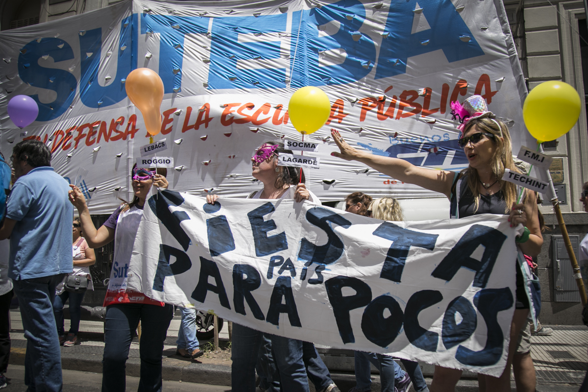 "Lxs Ministrxs y la Gobernadora deben hacerse cargo y resolver las necesidades de lxs Docentes y de las Escuelas bonaerenses. Queremos Escuelas seguras y salarios dignos. Repudiamos los sumarios a los Directivxs y Docentes y exigimos que se termine el amedrentamiento por ejercer el legítimo derecho a huelga. Estamos en alerta por las Escuelas Técnicas, los CFP y la Educación Superior. Y esto hay que decirlo claramente: no se cierra la Paritaria porque Cambiemos quiere bajarle el salario a lxs Trabajadorxs y el FUDB no está dispuesto a aceptarlo. Deben convocarnos y resolver las necesidades de la Escuela Pública, porque si así terminamos este año, no empezamos el año que viene. Y el Gobierno Nacional debe convocar a CTERA a discutir Paritarias, si no lxs Docentes de todo el país vamos a parar para exigirla", culminó Baradel.