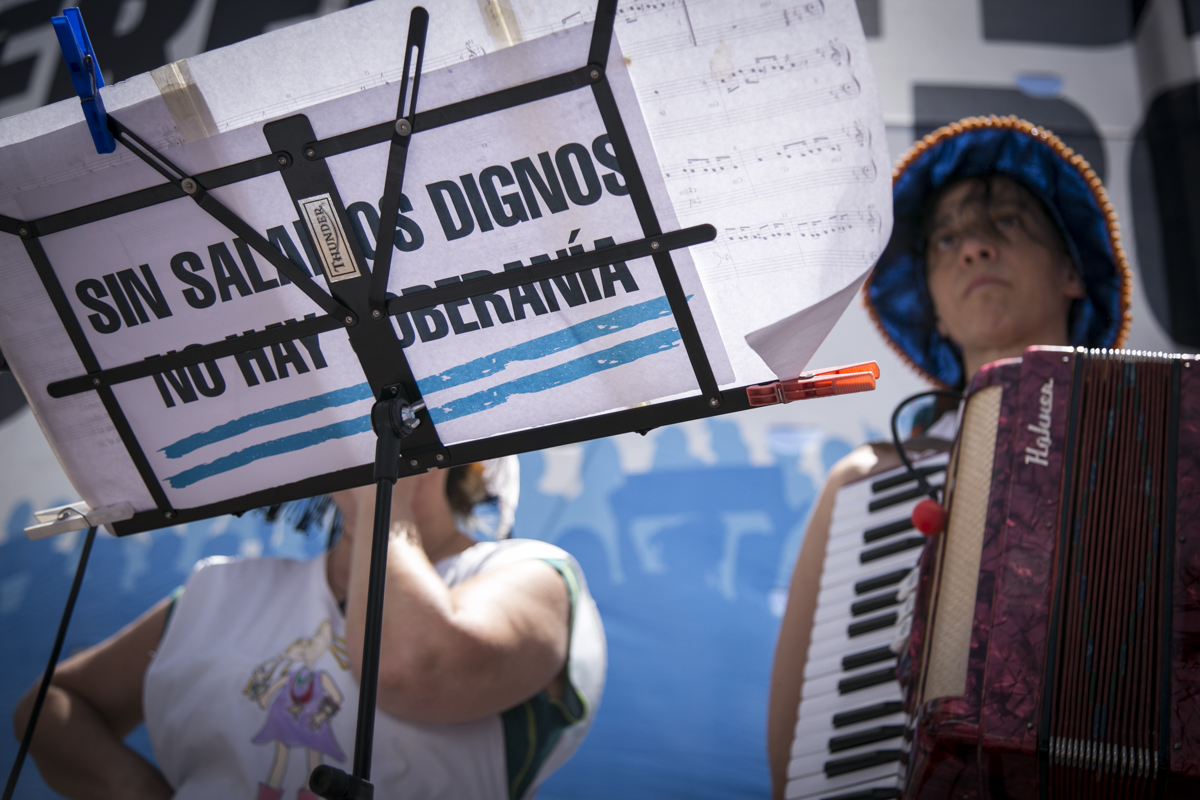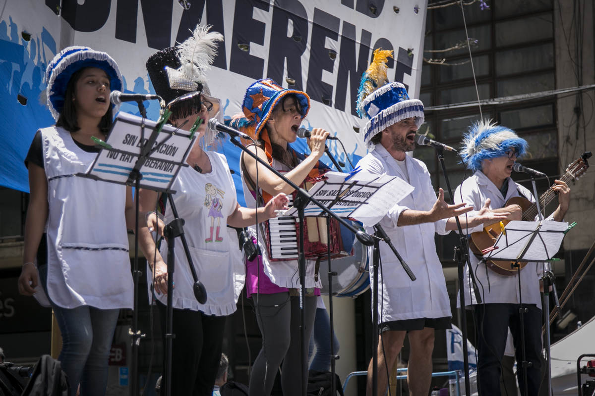 En el mismo, participaron distintos grupos artísticos que acompañaron la jornada de lucha con sus canciones y diversas expresiones artísticas desde el escenario y mezcladxs con el público: Mamurga, conformado por Docentes y alumnxs de Merlo; Colectivo Sacapuntas, iniciativa teatral de Merlo; y la Orquesta Andina del SUTEBA Lomas de Zamora.