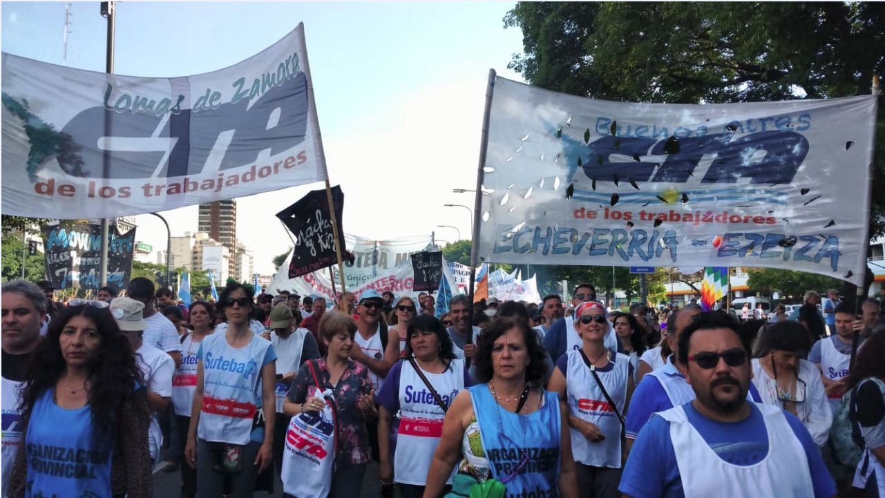Ante esta situación, SUTEBA en el marco de la convocatoria de la CTA, se moviliza el día de hoy, junto a diversas organizaciones sociales, sindicales y políticas para decir NO al FMI, NO a las políticas autoritarias y fascistas, NO a la concentración de la riqueza y NO a la agenda del G20.