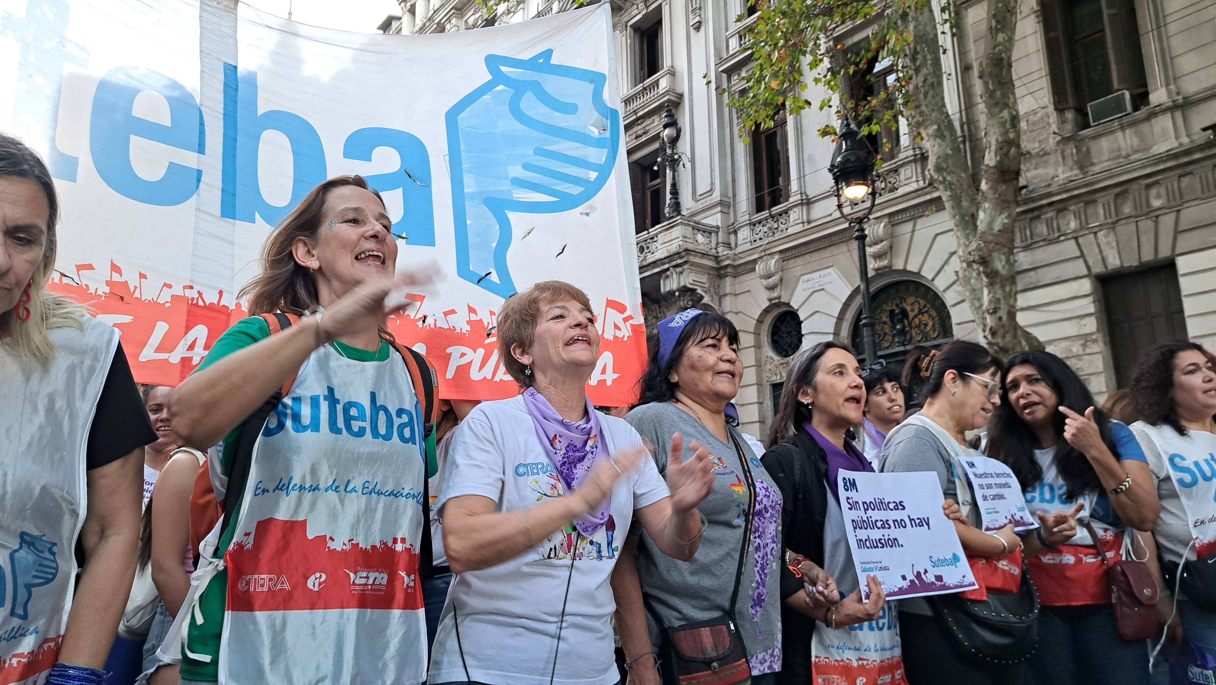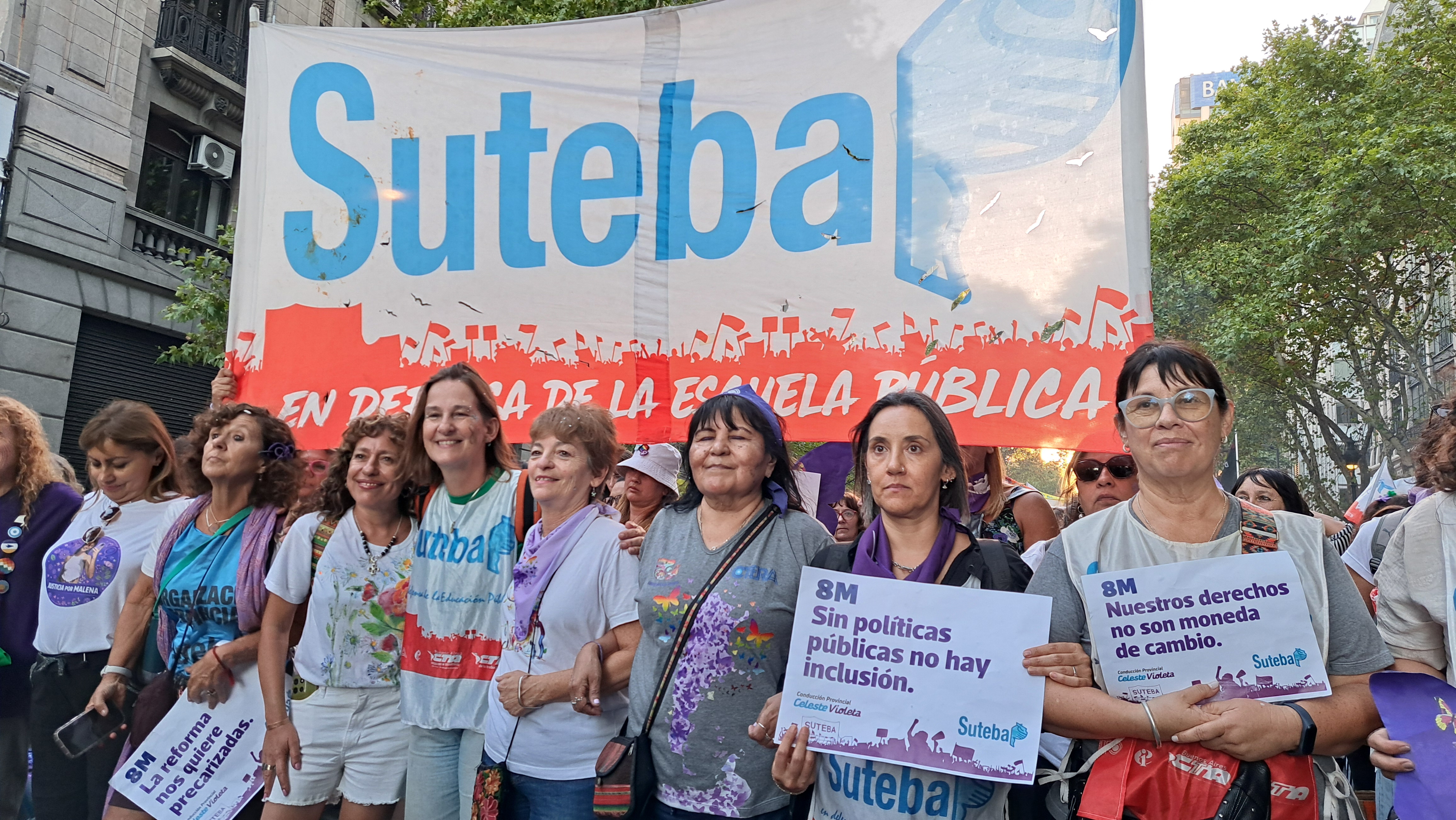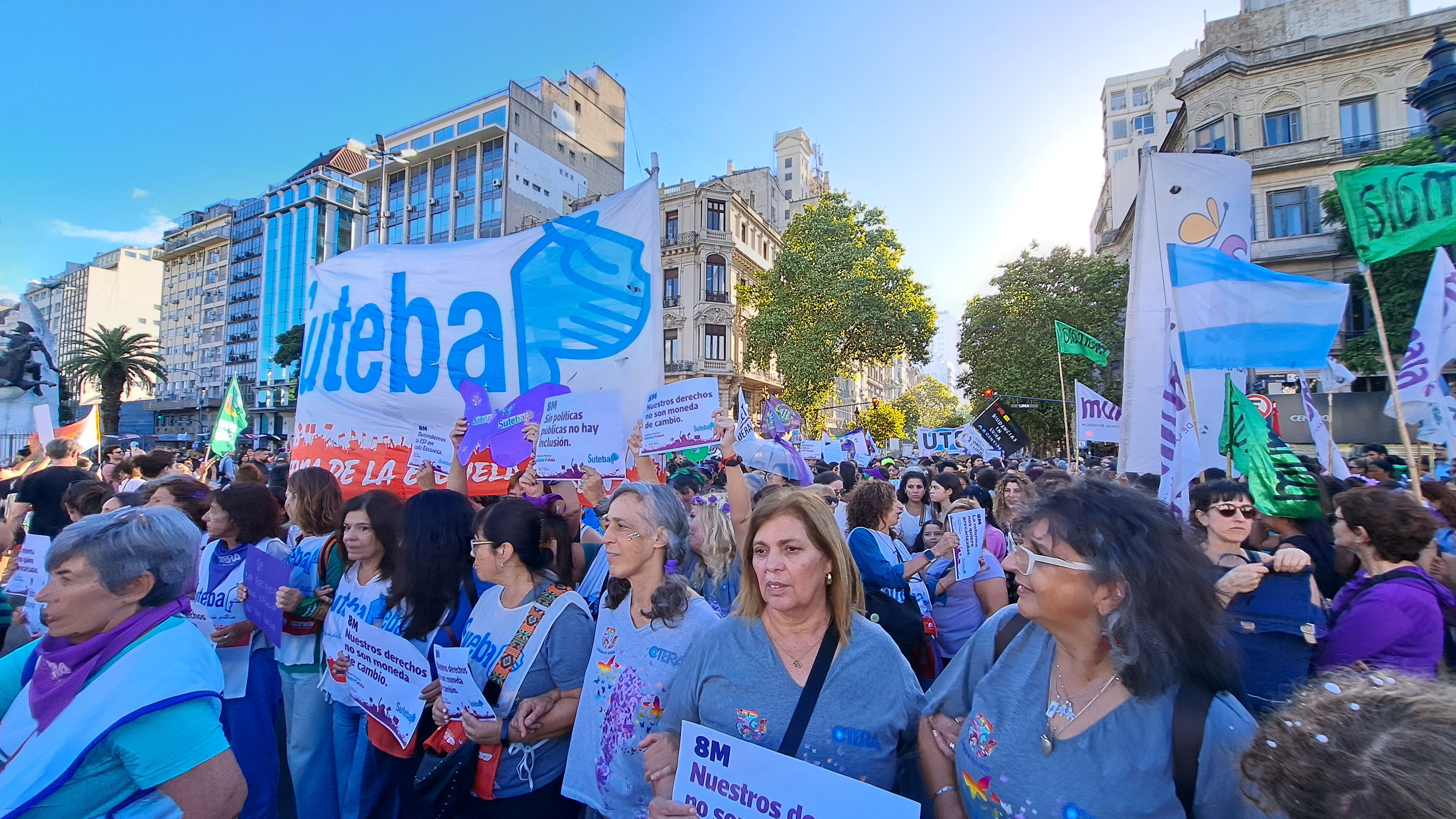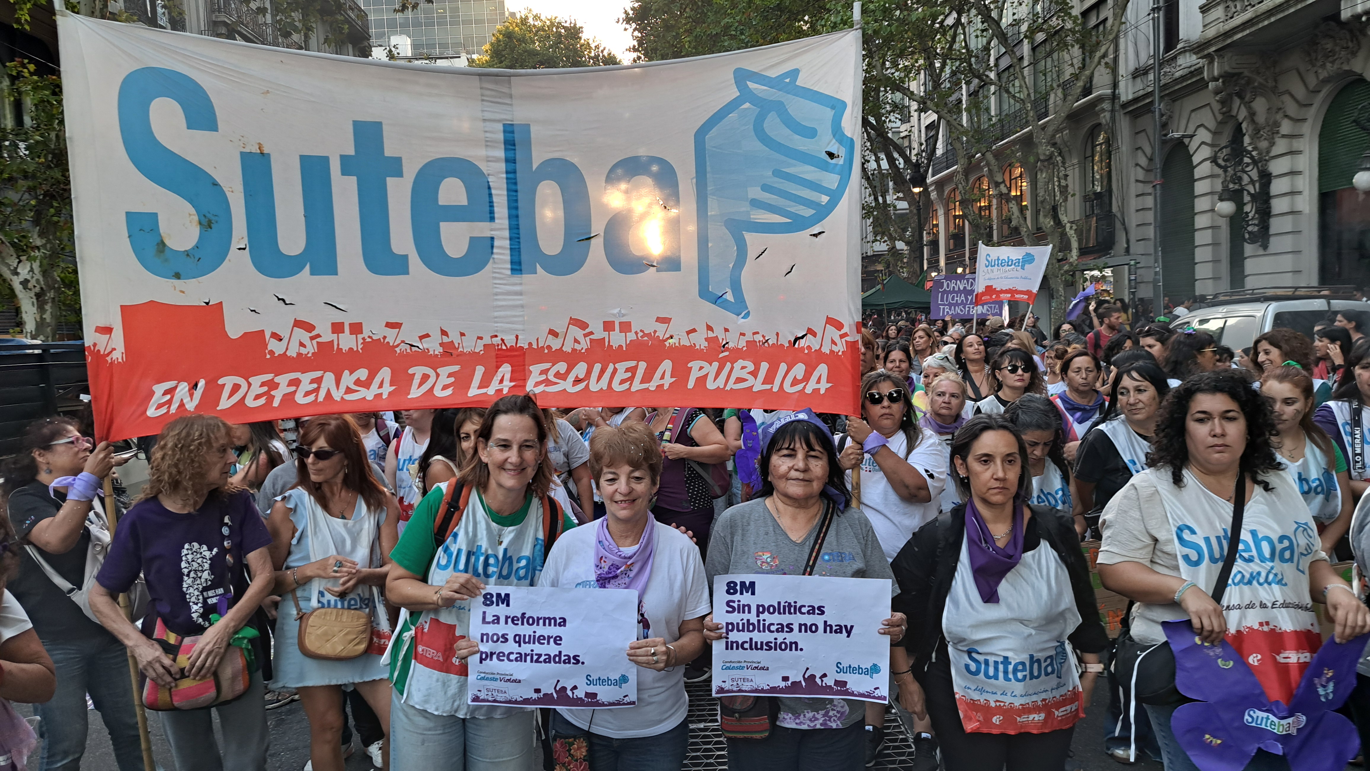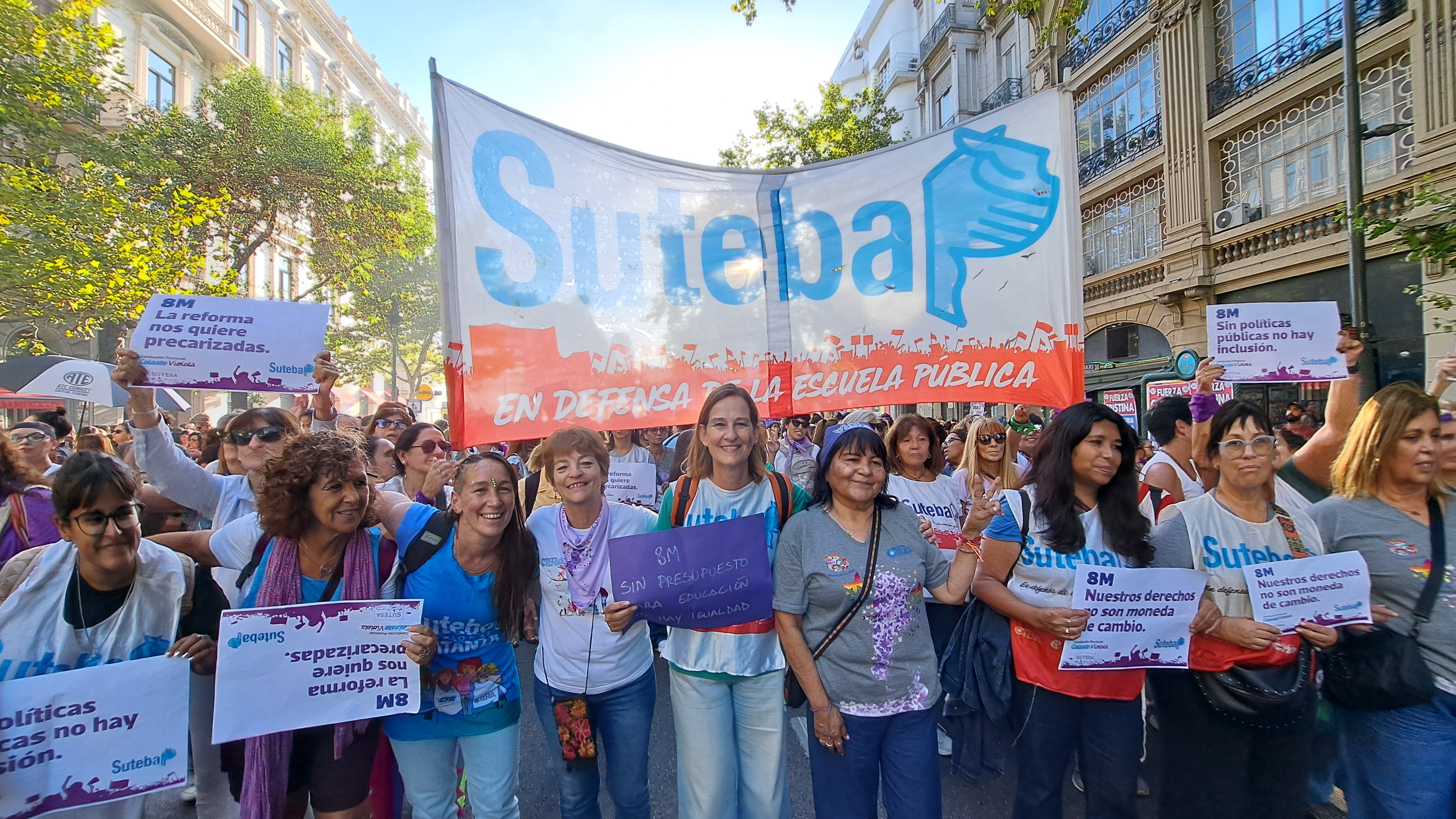 El SUTEBA adhirió al Paro Internacional Transfeminista y formó parte ayer de la multitudinaria movilización del Congreso a Plaza de Mayo por el Día Internacional de las Mujeres Trabajadoras. Una vez más, las Trabajadoras organizadas en el SUTEBA, la CTERA y la CTA-T fuimos protagonistas de la imponente marcha.