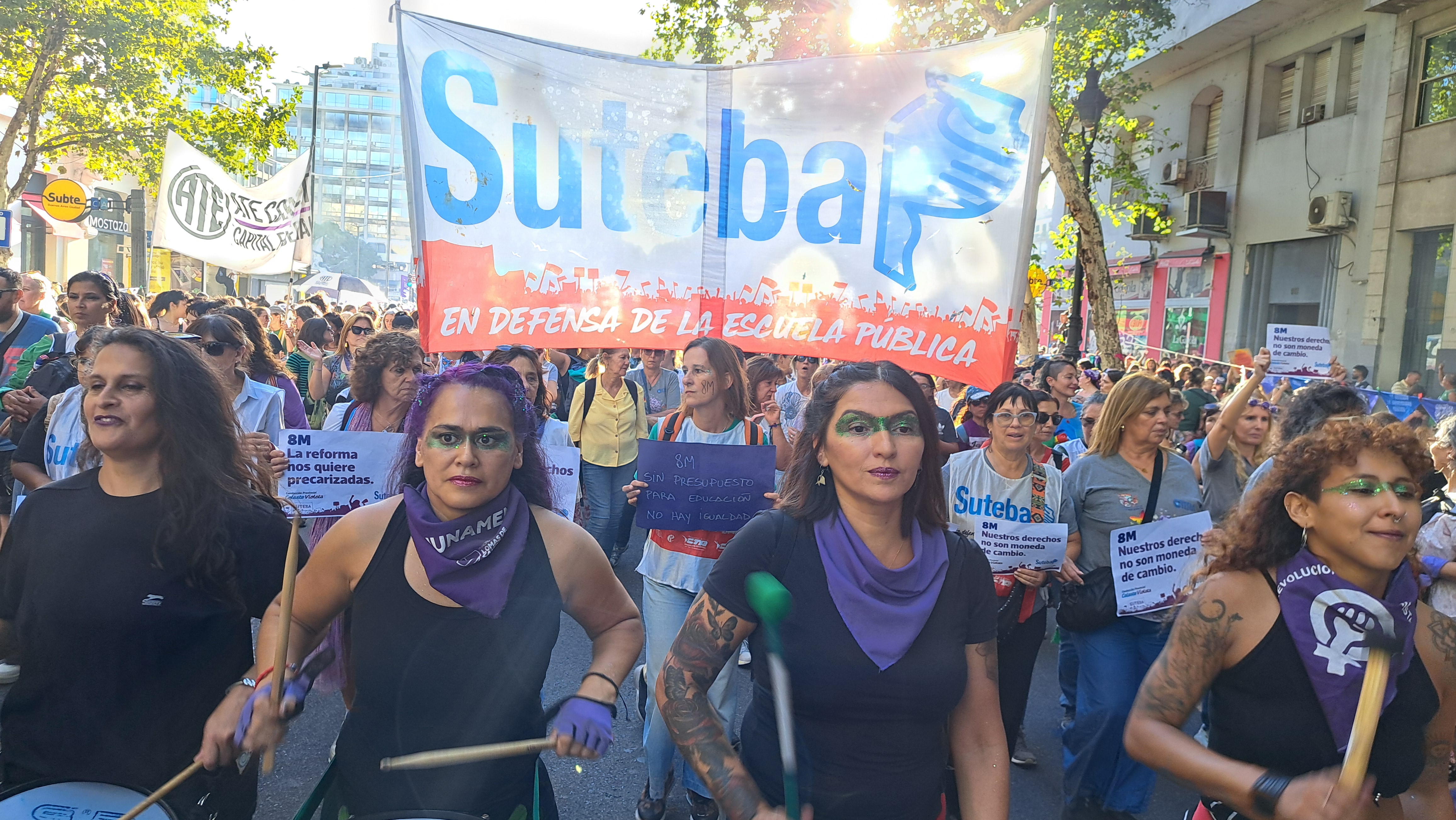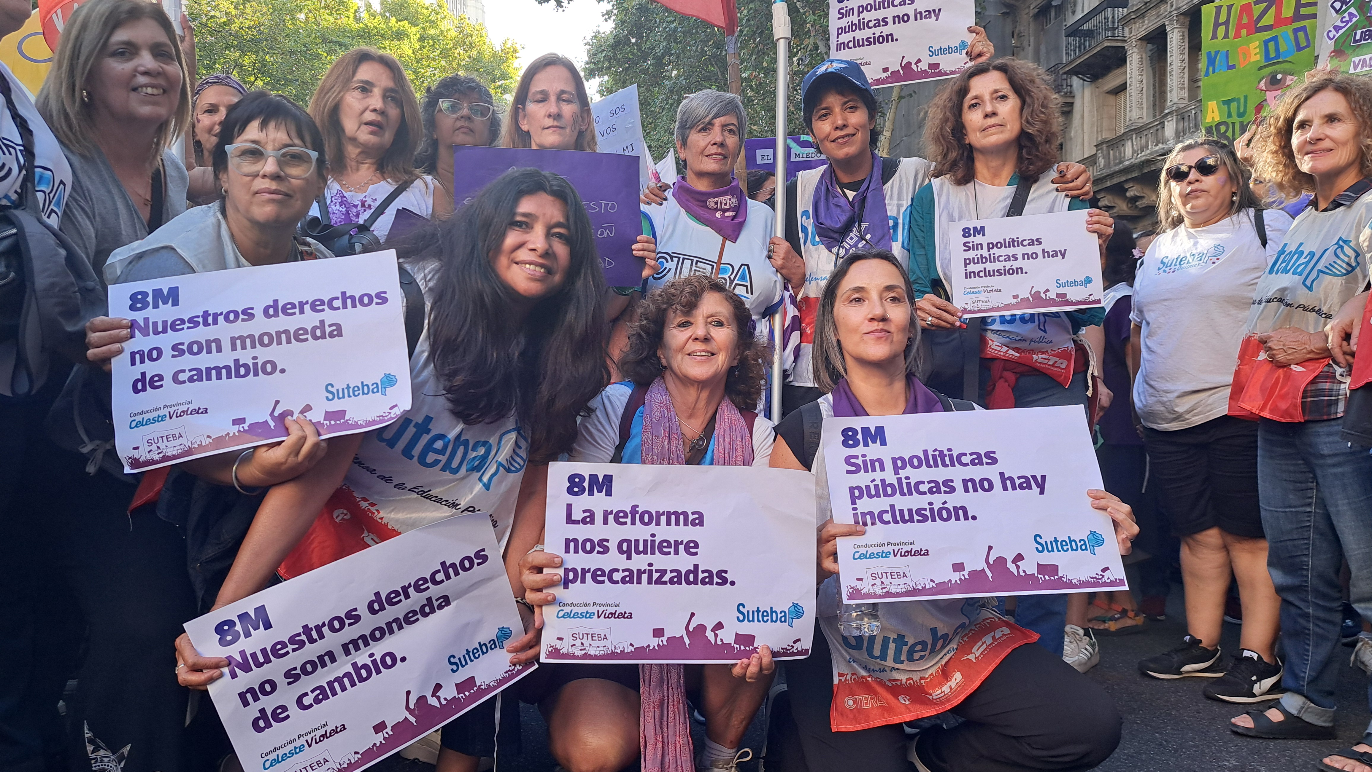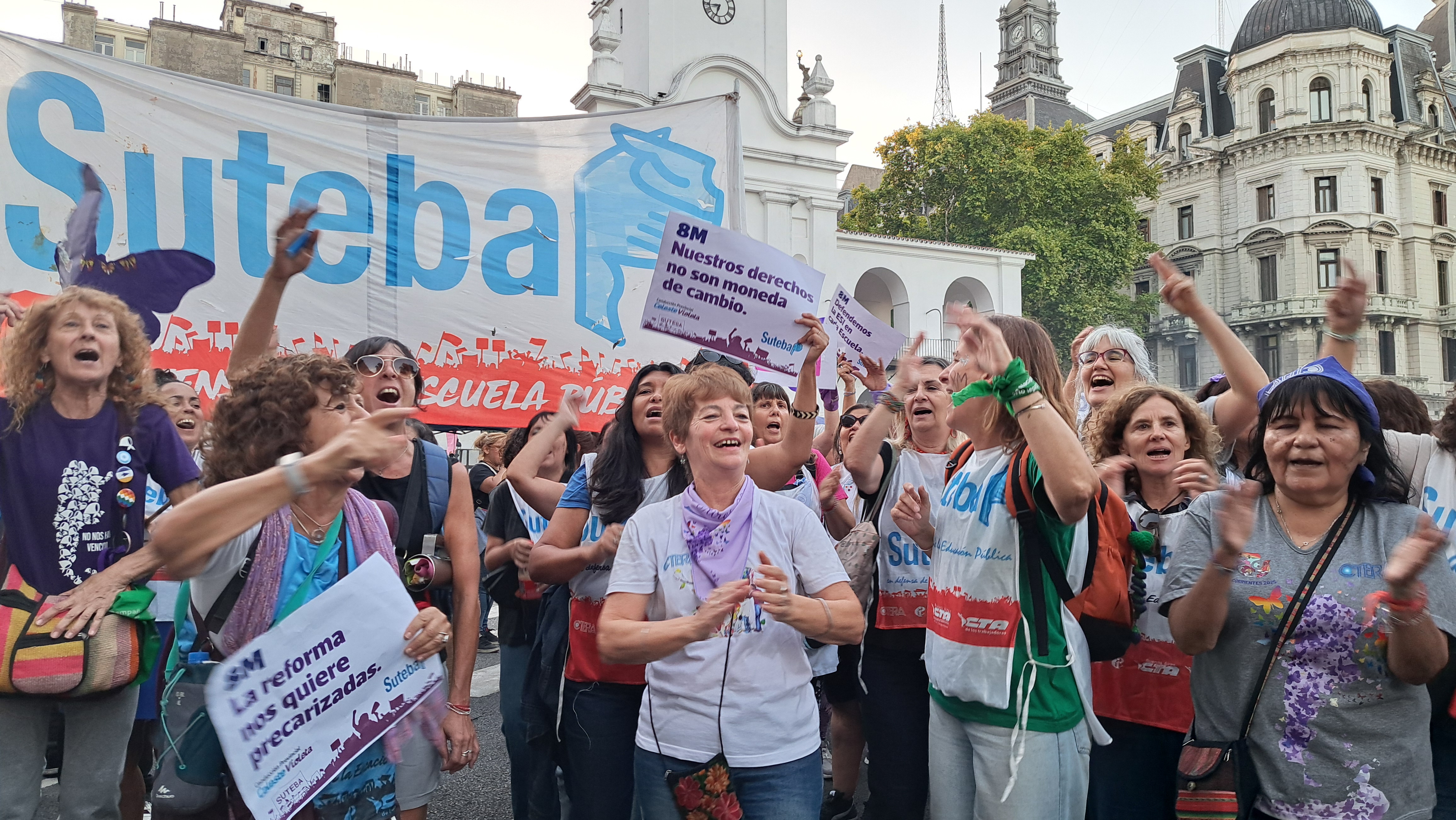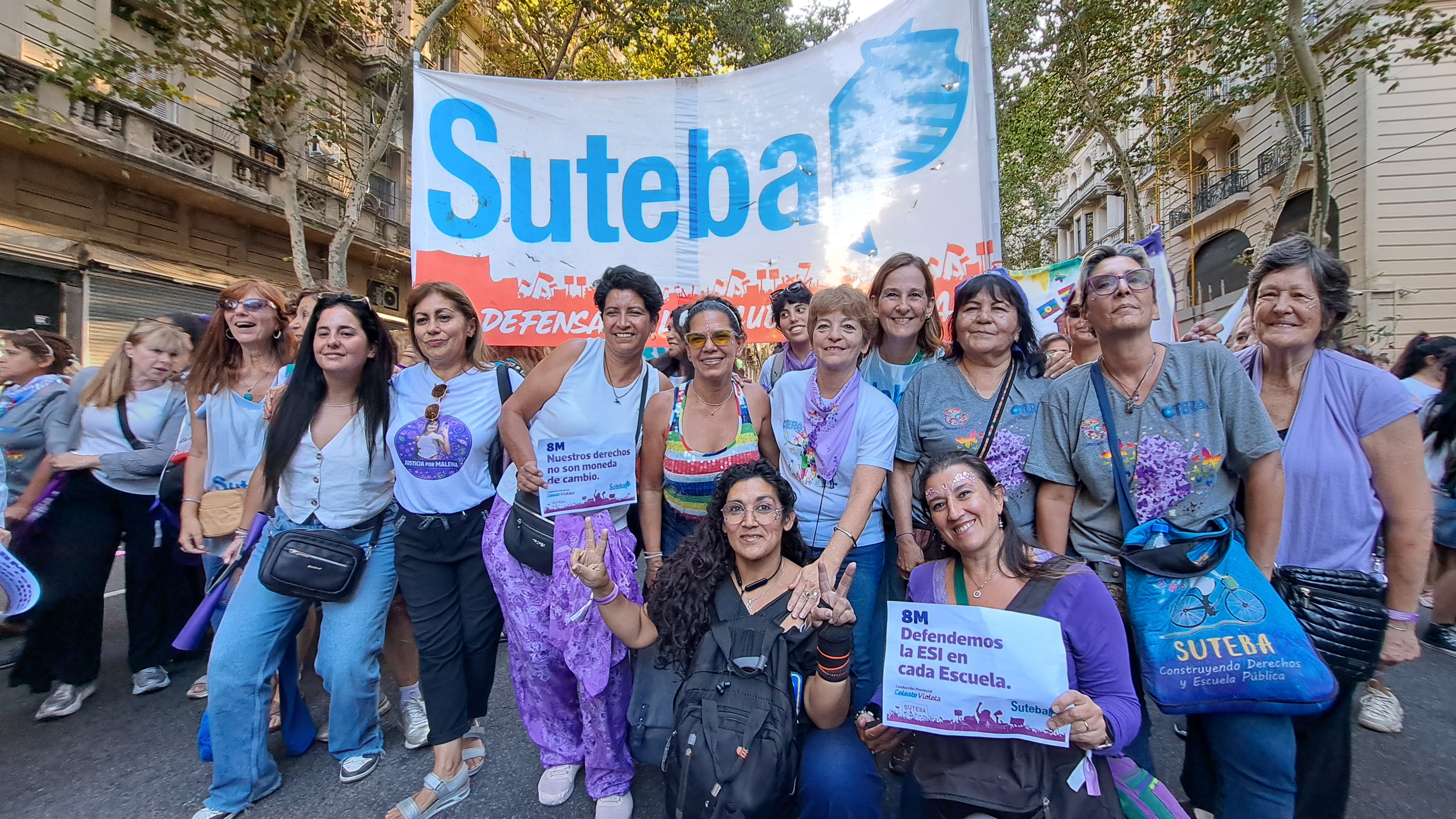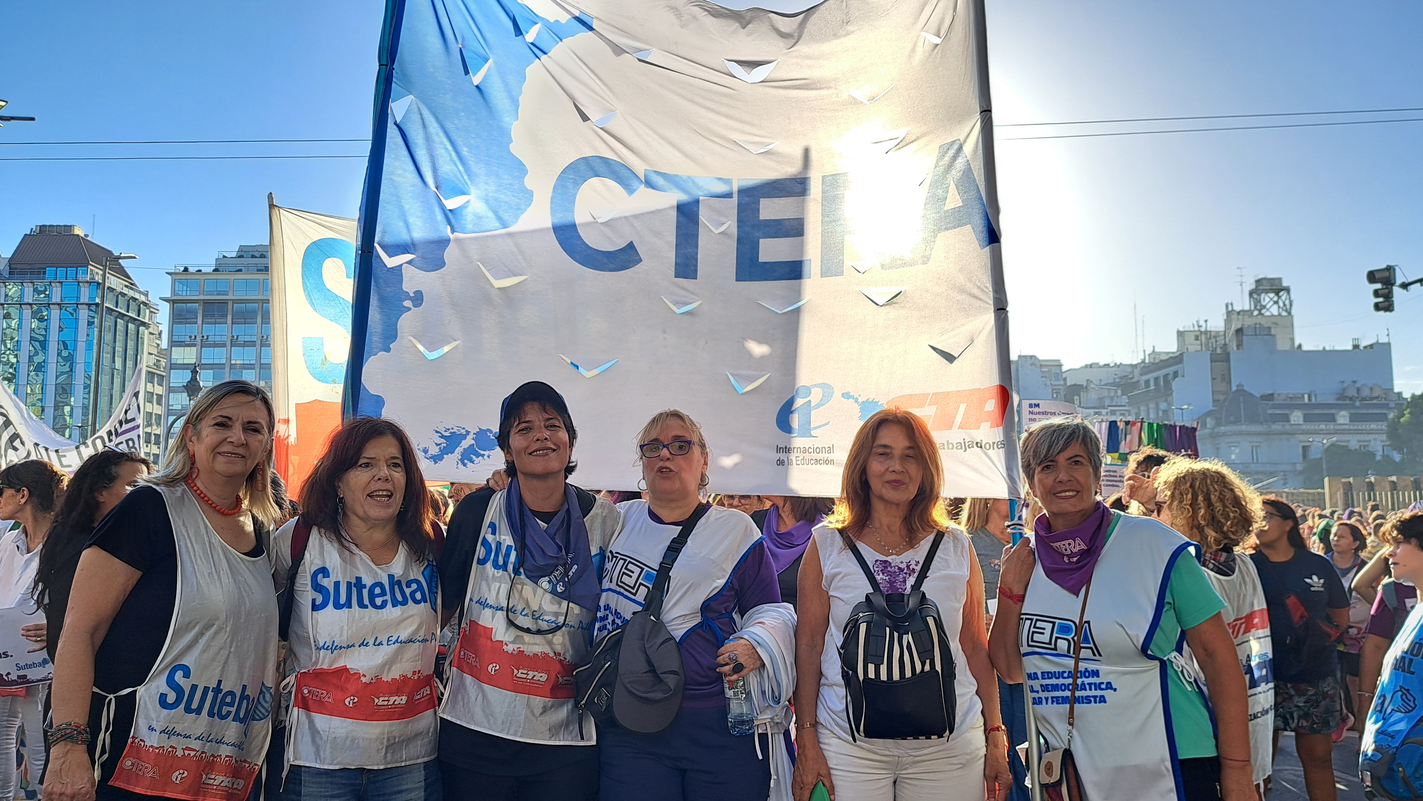 El SUTEBA adhirió al Paro Internacional Transfeminista y formó parte ayer de la multitudinaria movilización del Congreso a Plaza de Mayo por el Día Internacional de las Mujeres Trabajadoras. Una vez más, las Trabajadoras organizadas en el SUTEBA, la CTERA y la CTA-T fuimos protagonistas de la imponente marcha.
