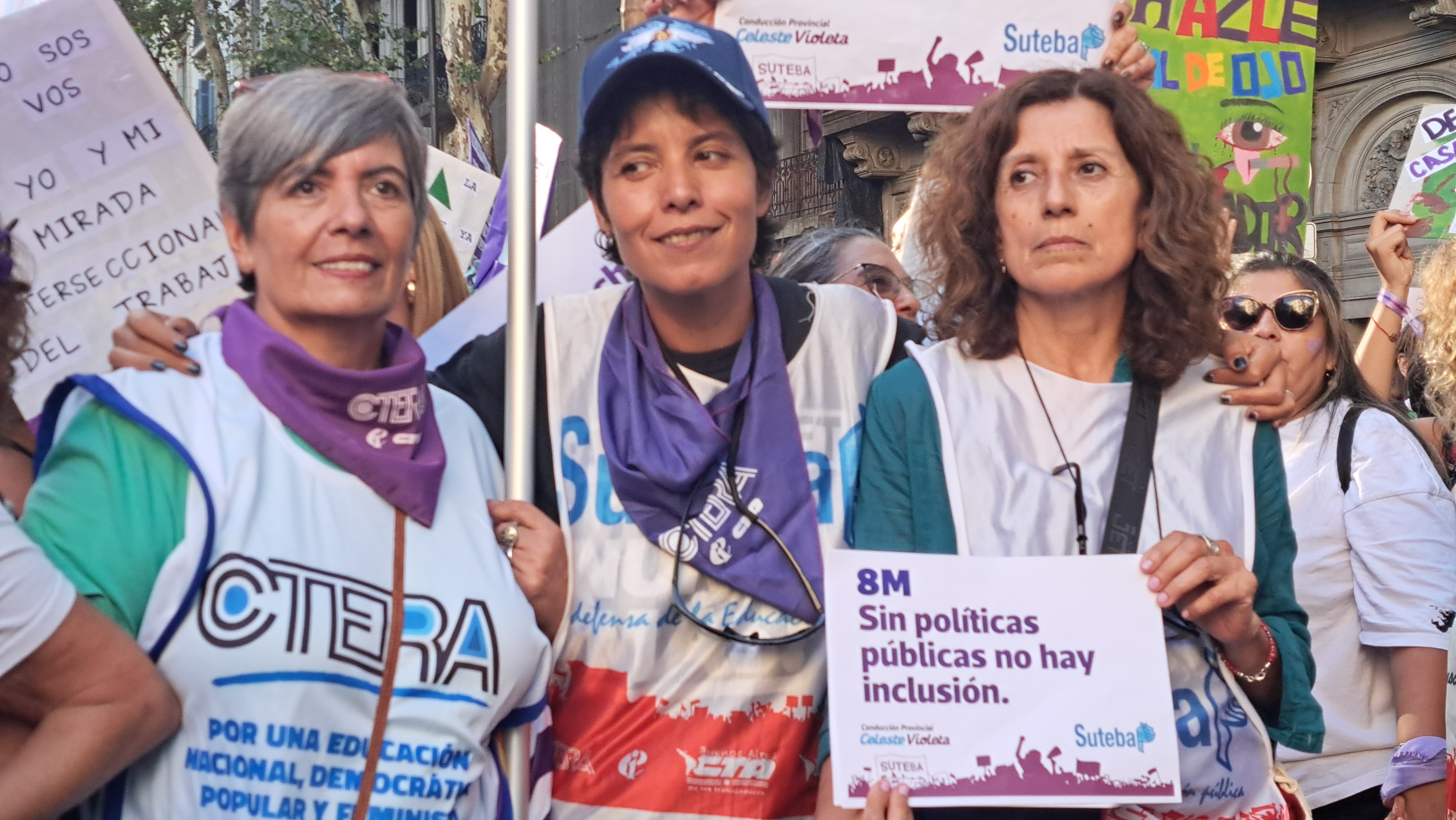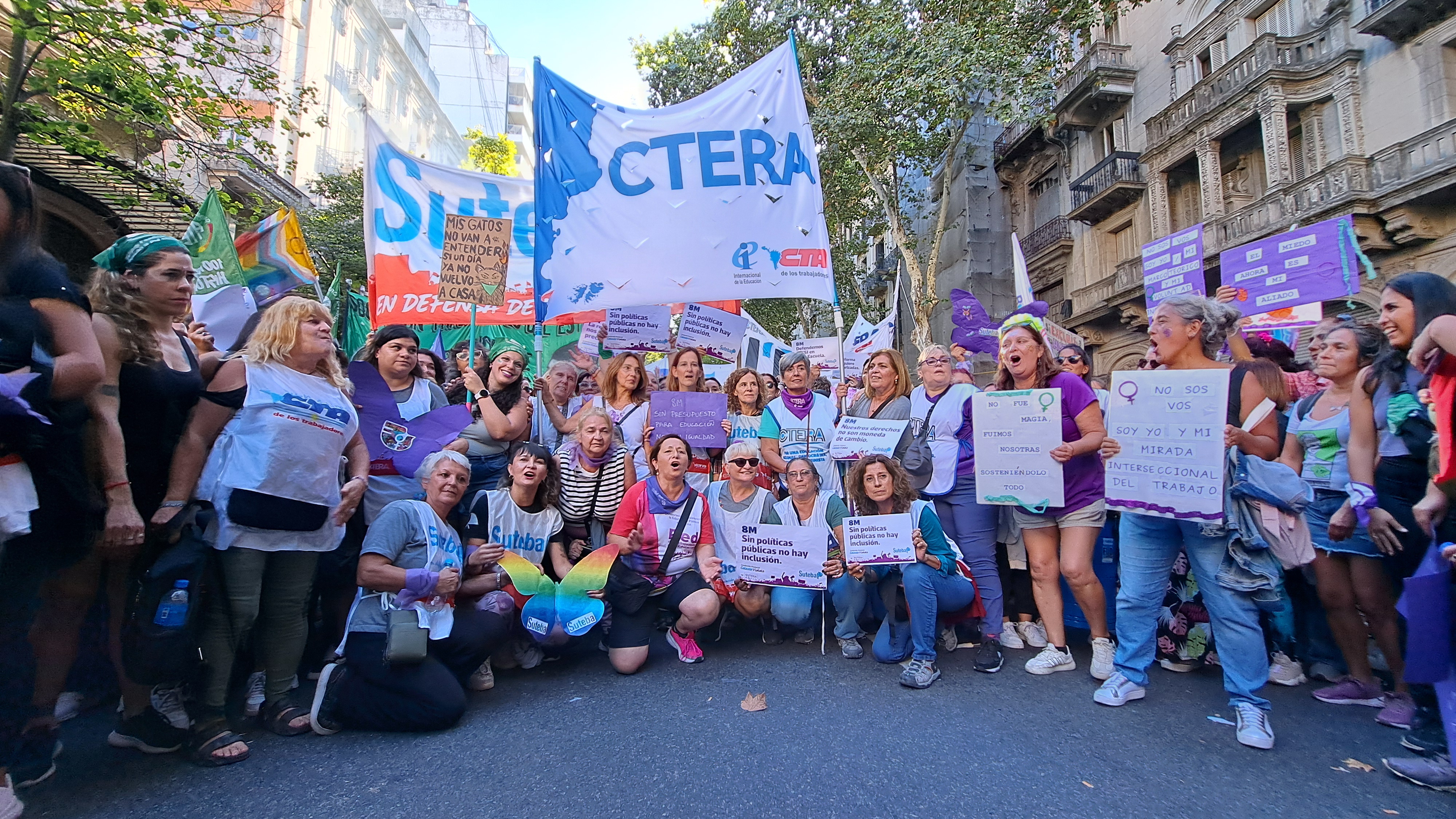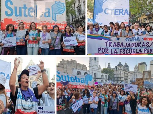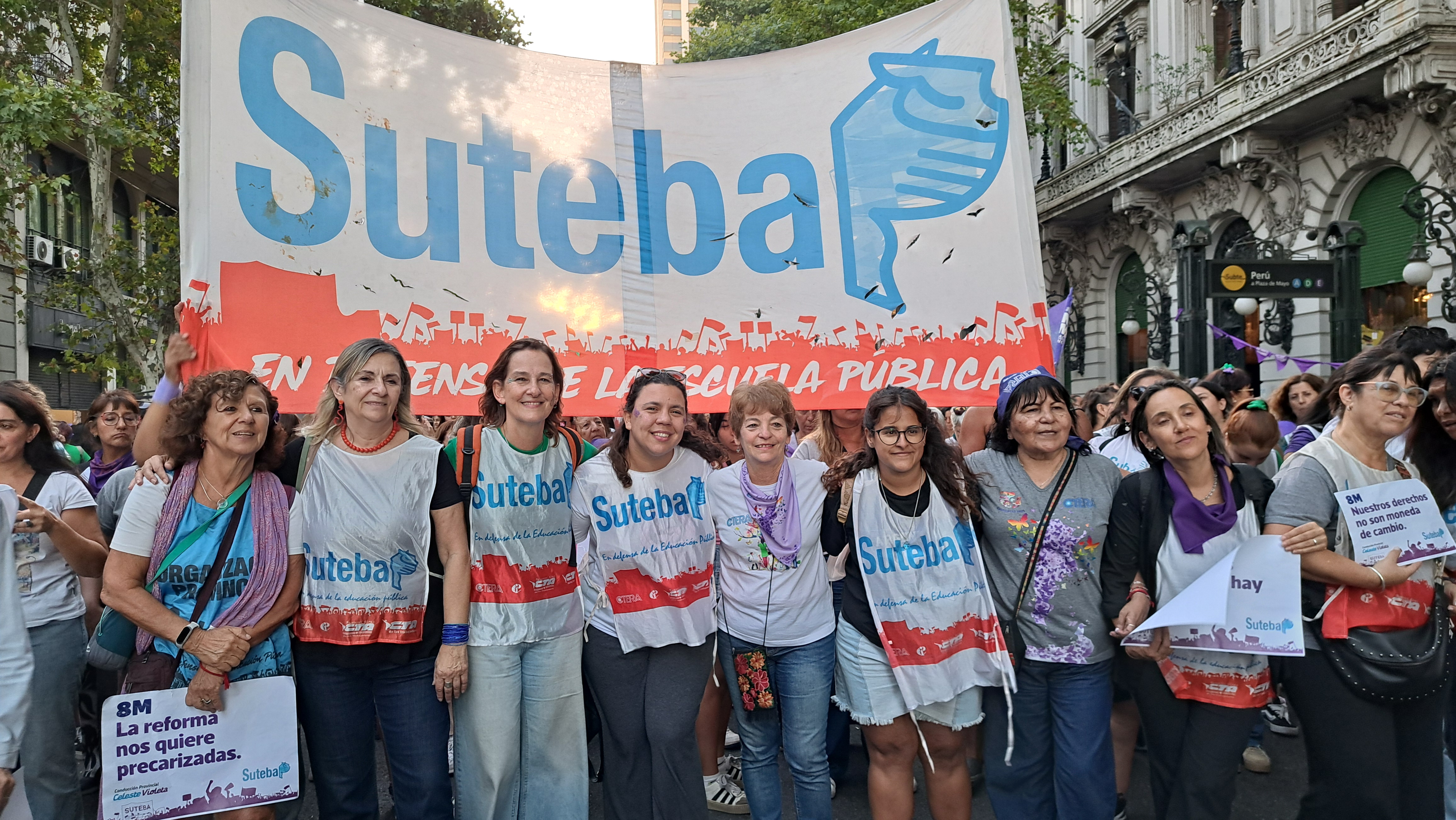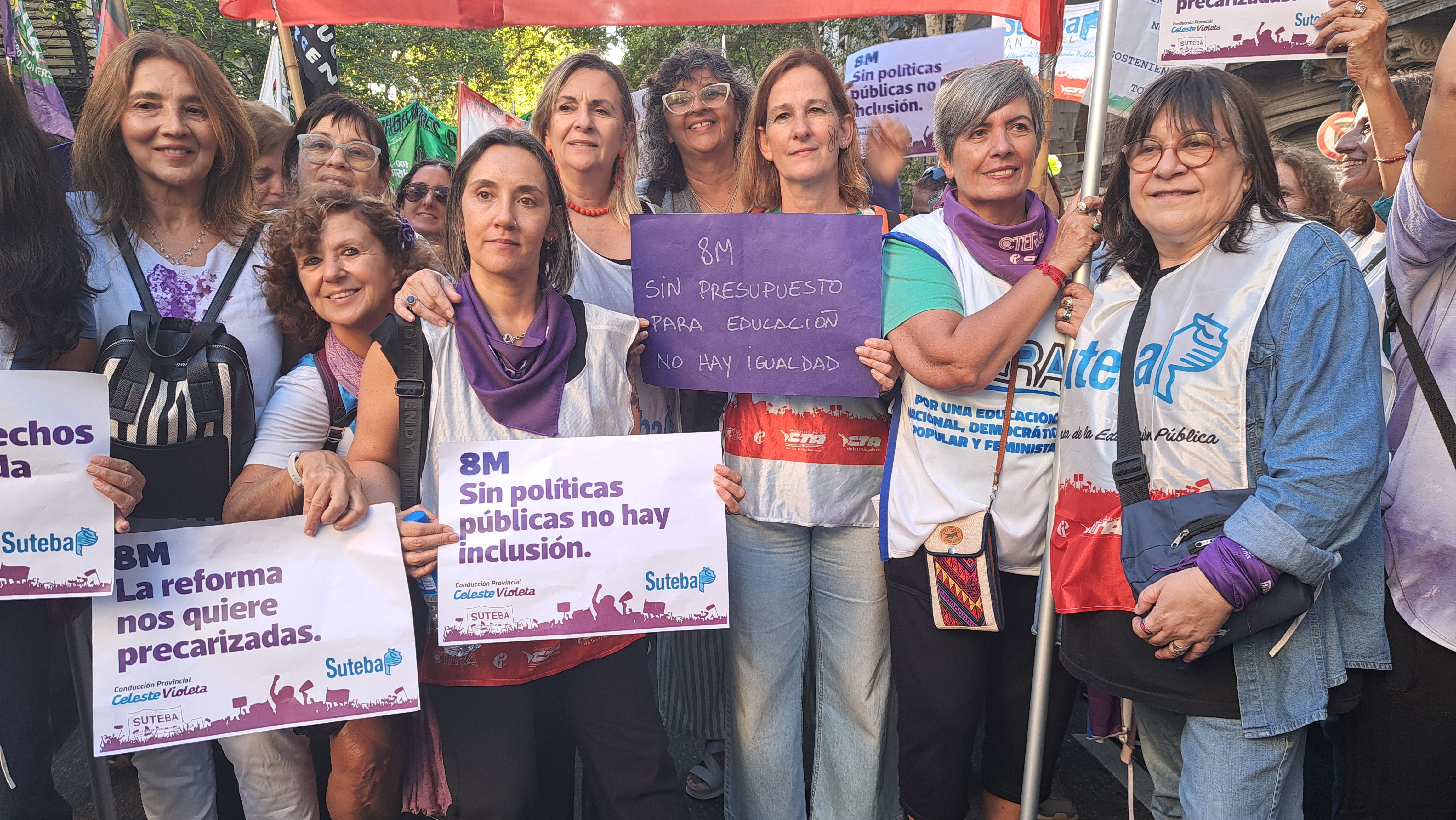 El SUTEBA adhirió al Paro Internacional Transfeminista y formó parte ayer de la multitudinaria movilización del Congreso a Plaza de Mayo por el Día Internacional de las Mujeres Trabajadoras. Una vez más, las Trabajadoras organizadas en el SUTEBA, la CTERA y la CTA-T fuimos protagonistas de la imponente marcha.