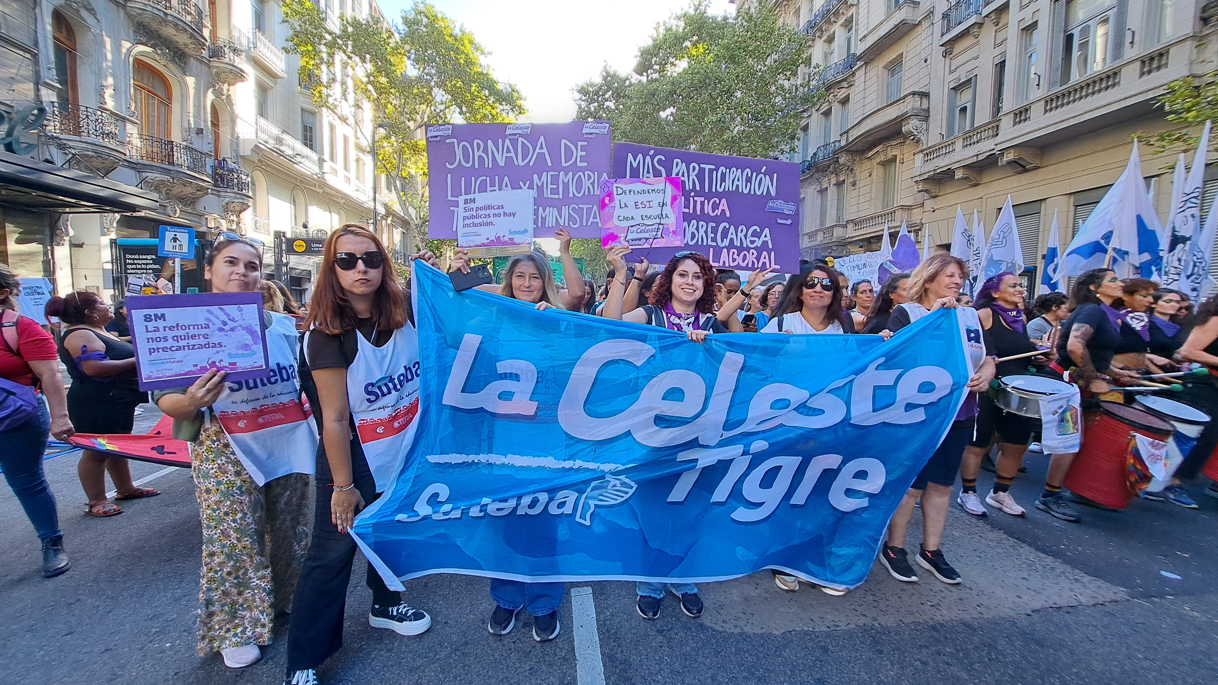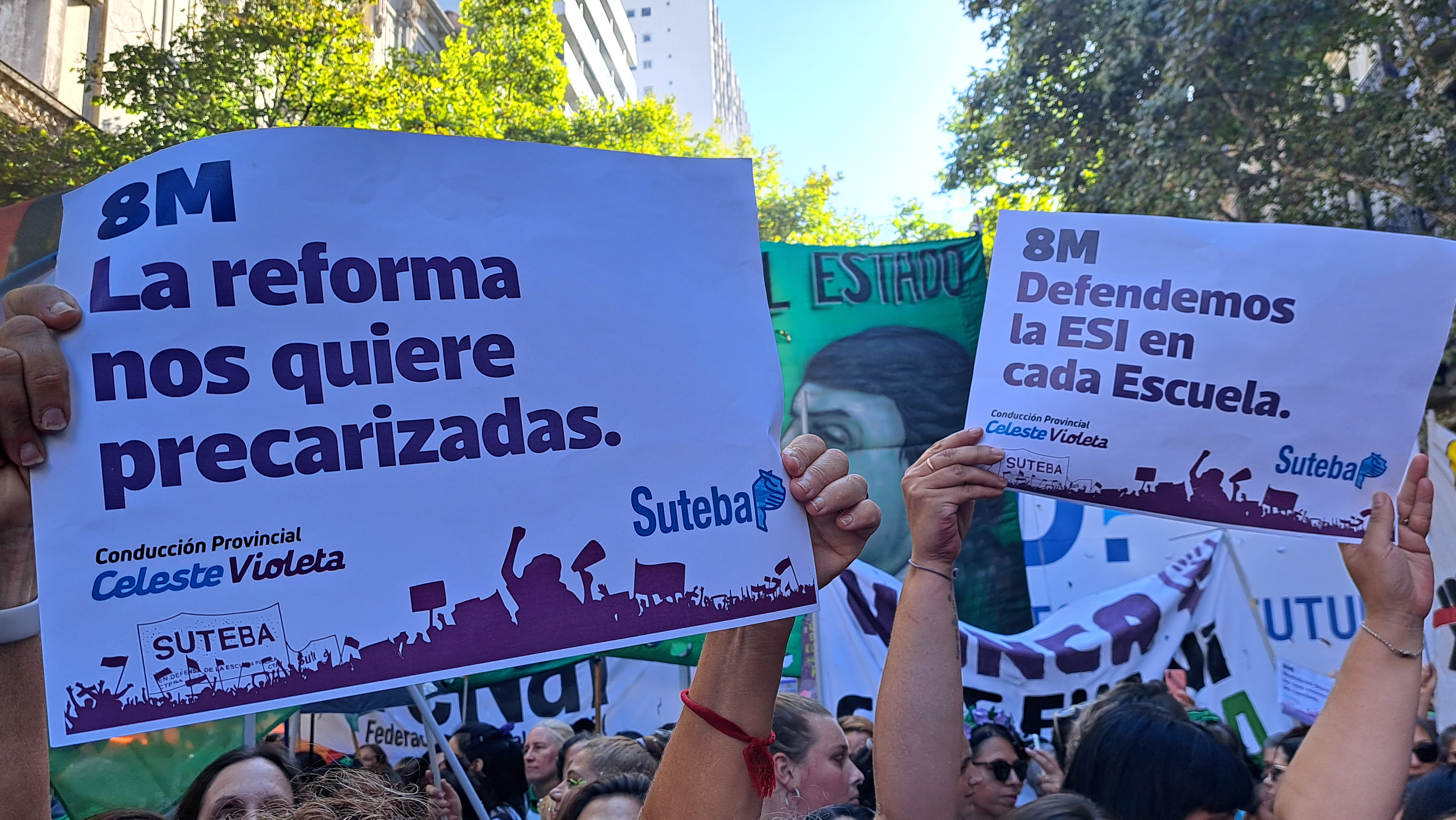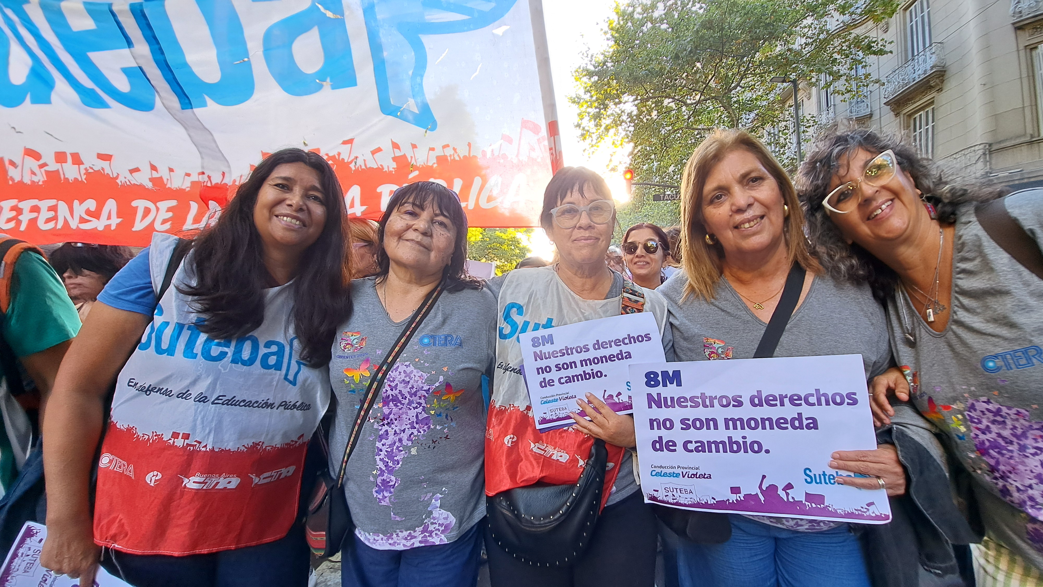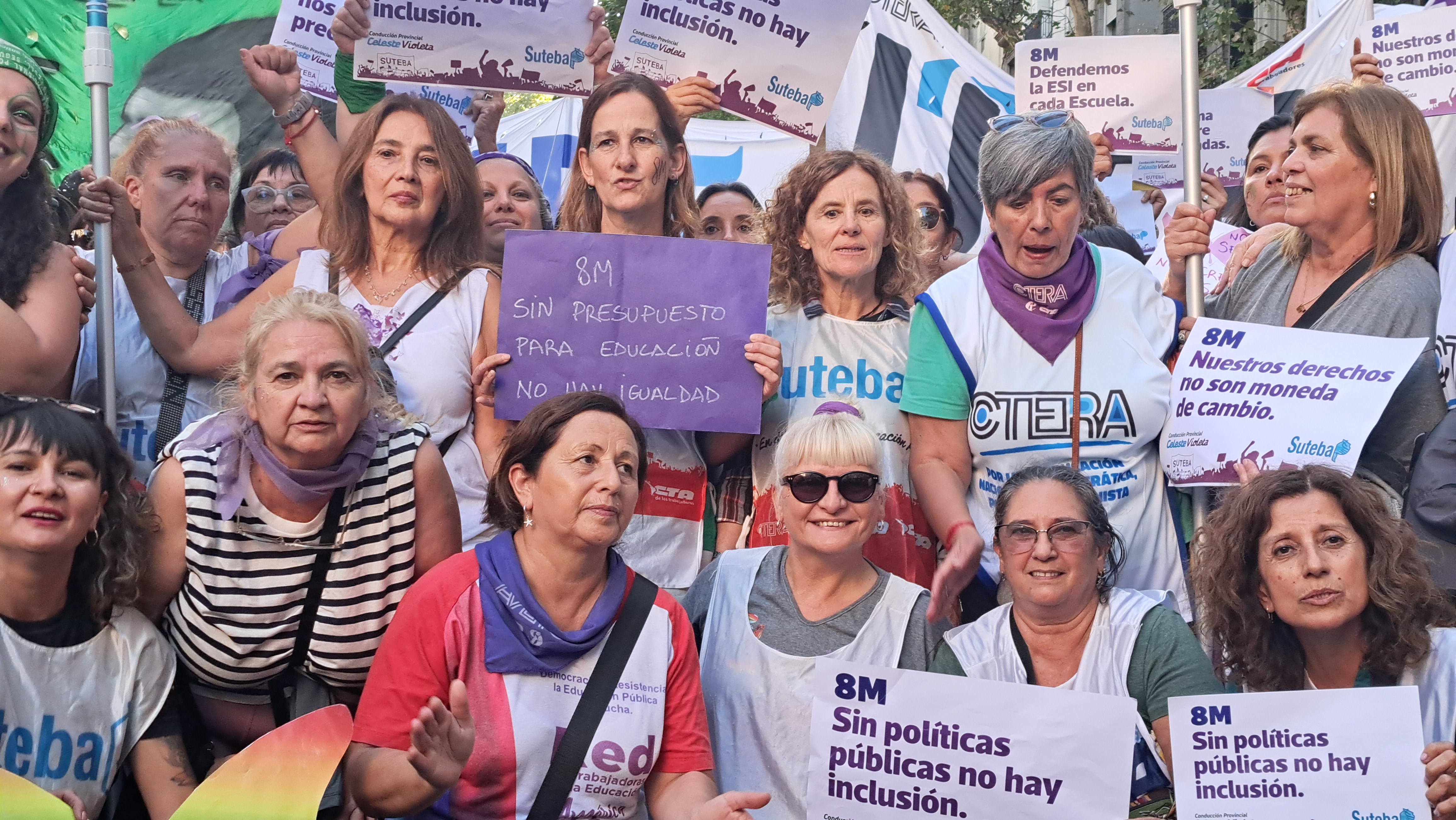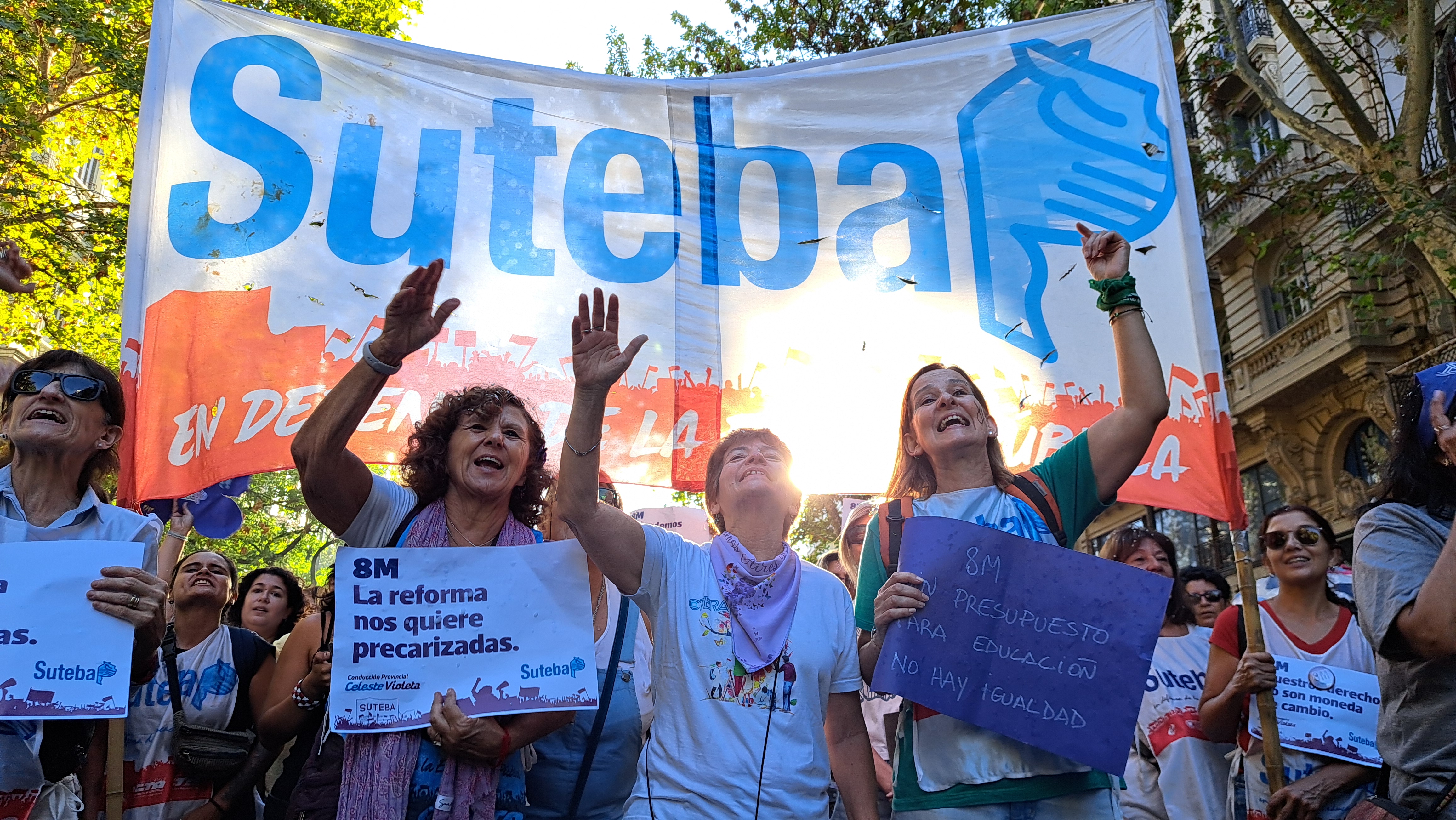 El SUTEBA adhirió al Paro Internacional Transfeminista y formó parte ayer de la multitudinaria movilización del Congreso a Plaza de Mayo por el Día Internacional de las Mujeres Trabajadoras. Una vez más, las Trabajadoras organizadas en el SUTEBA, la CTERA y la CTA-T fuimos protagonistas de la imponente marcha.