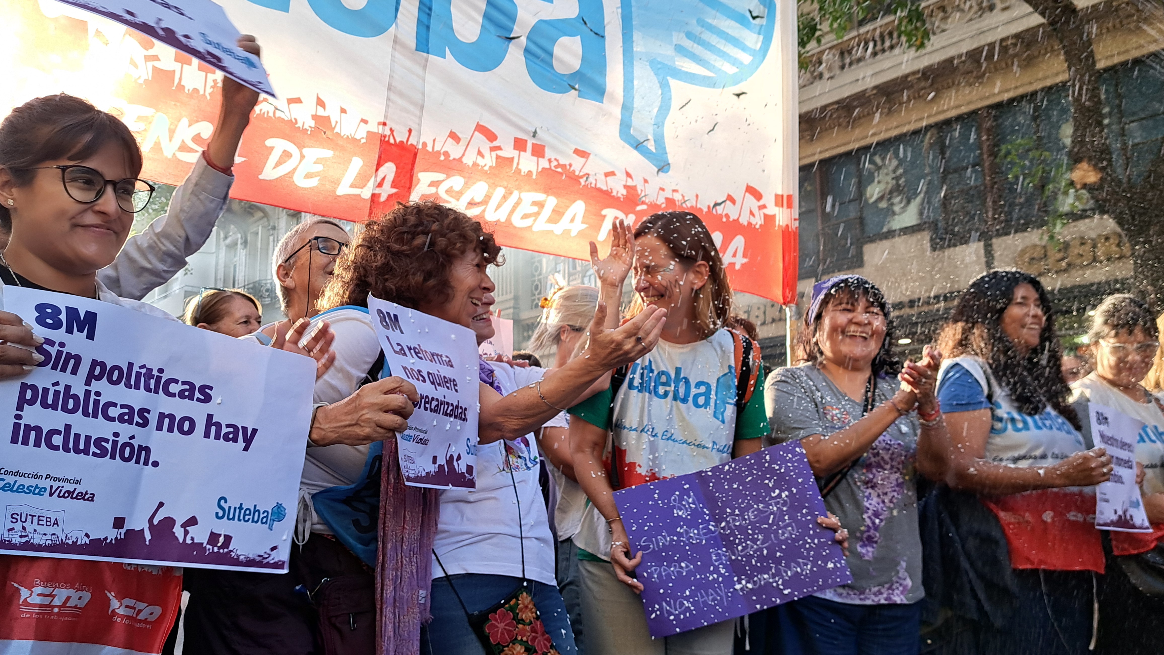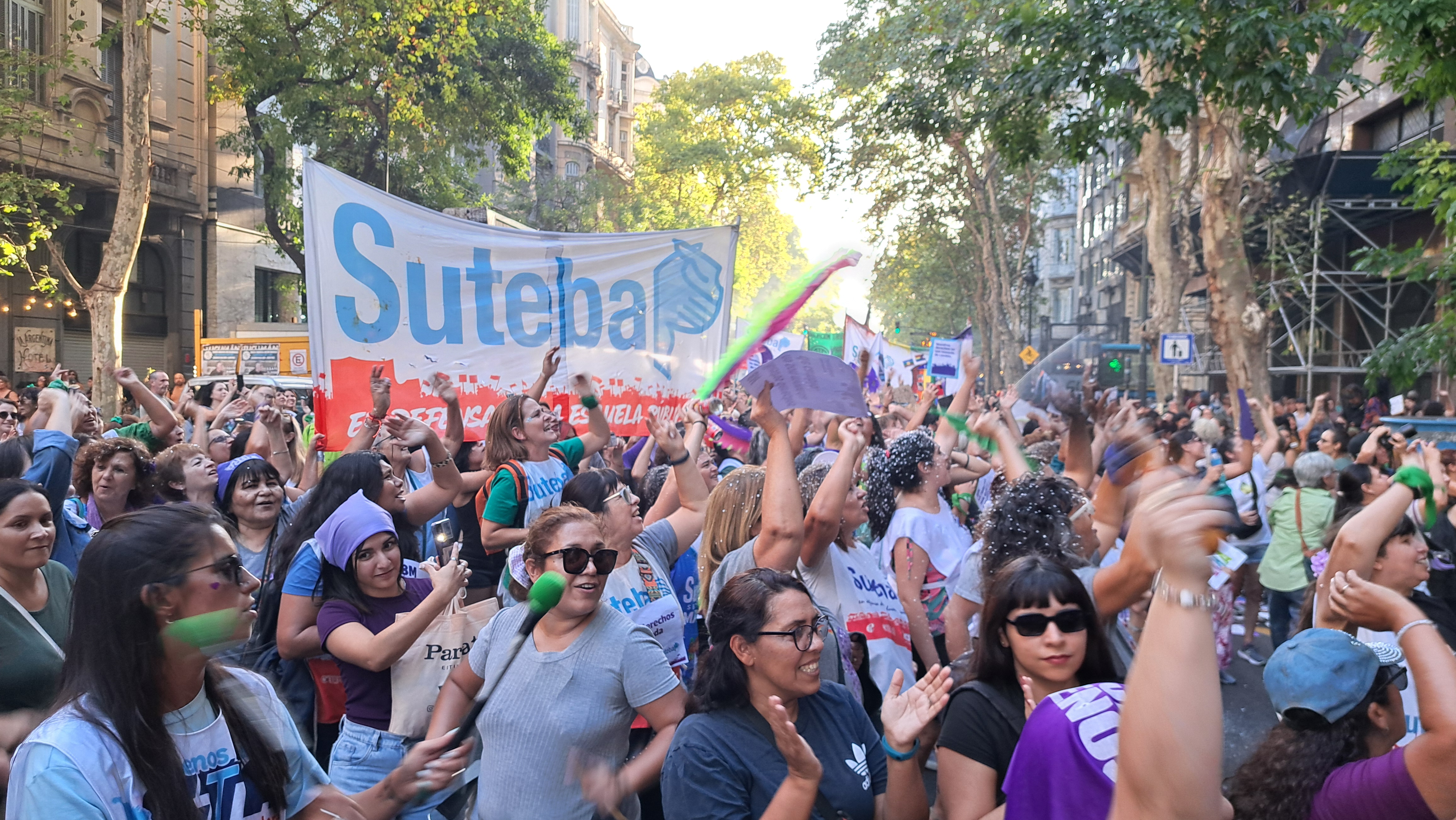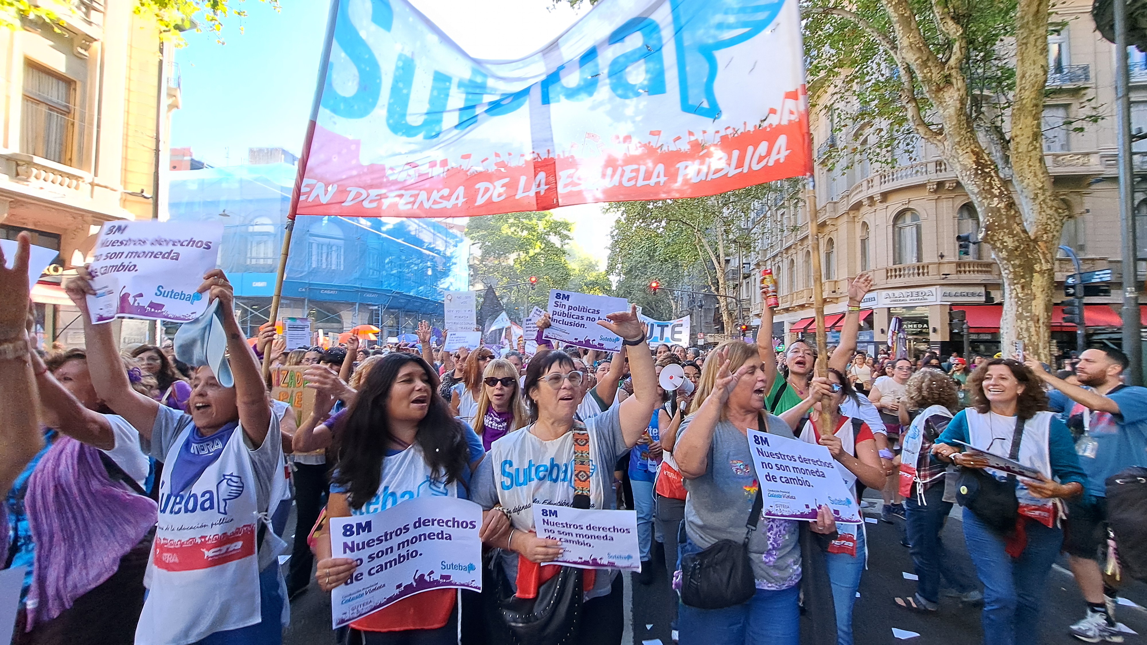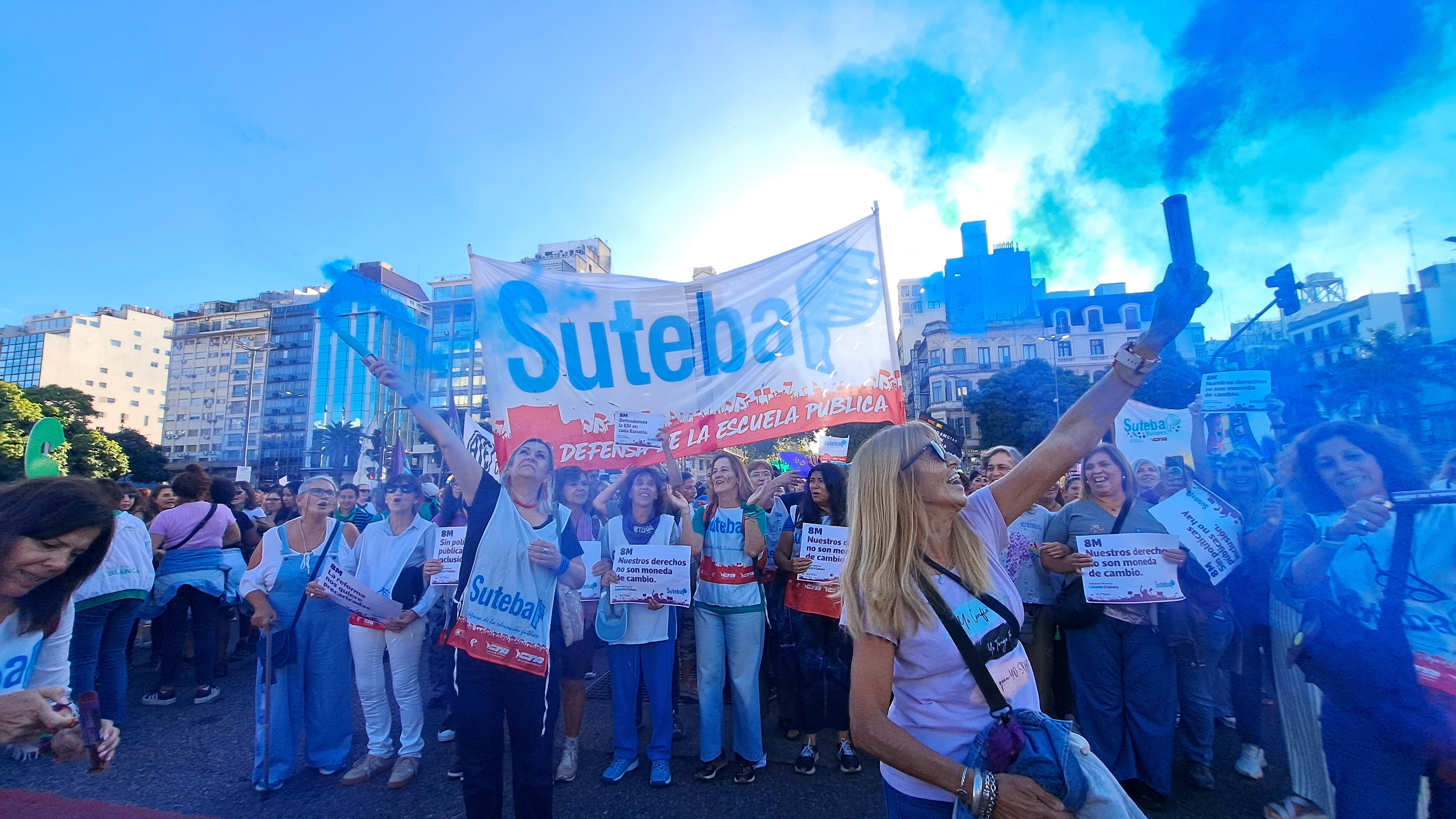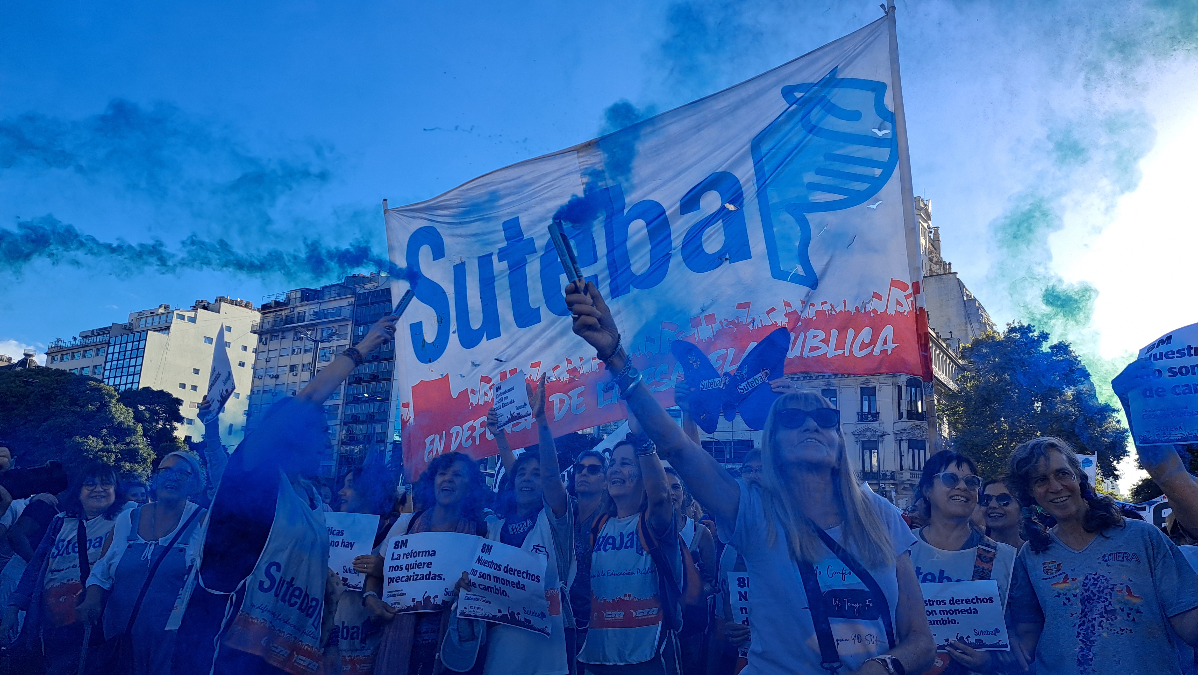 El SUTEBA adhirió al Paro Internacional Transfeminista y formó parte ayer de la multitudinaria movilización del Congreso a Plaza de Mayo por el Día Internacional de las Mujeres Trabajadoras. Una vez más, las Trabajadoras organizadas en el SUTEBA, la CTERA y la CTA-T fuimos protagonistas de la imponente marcha.
