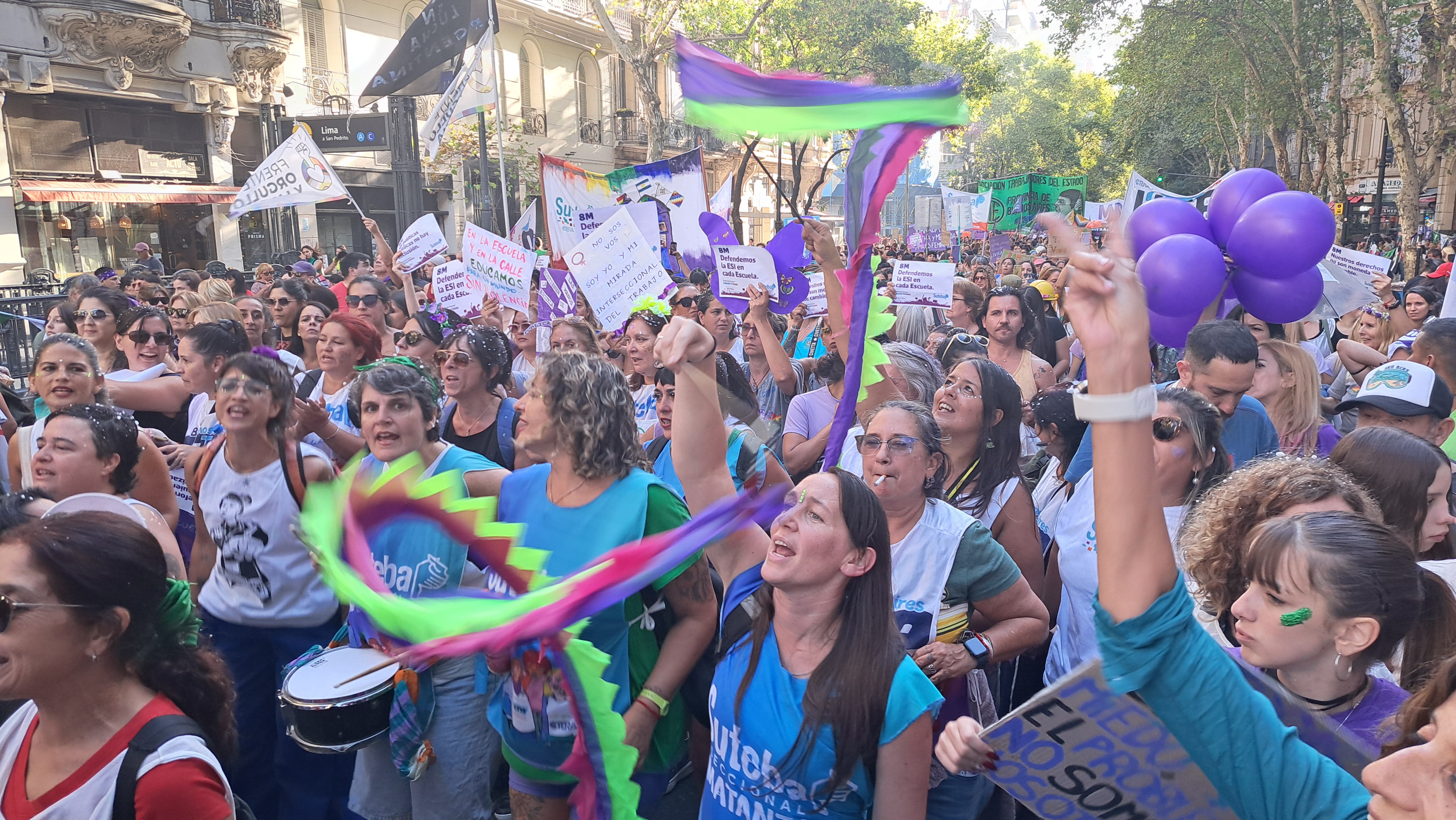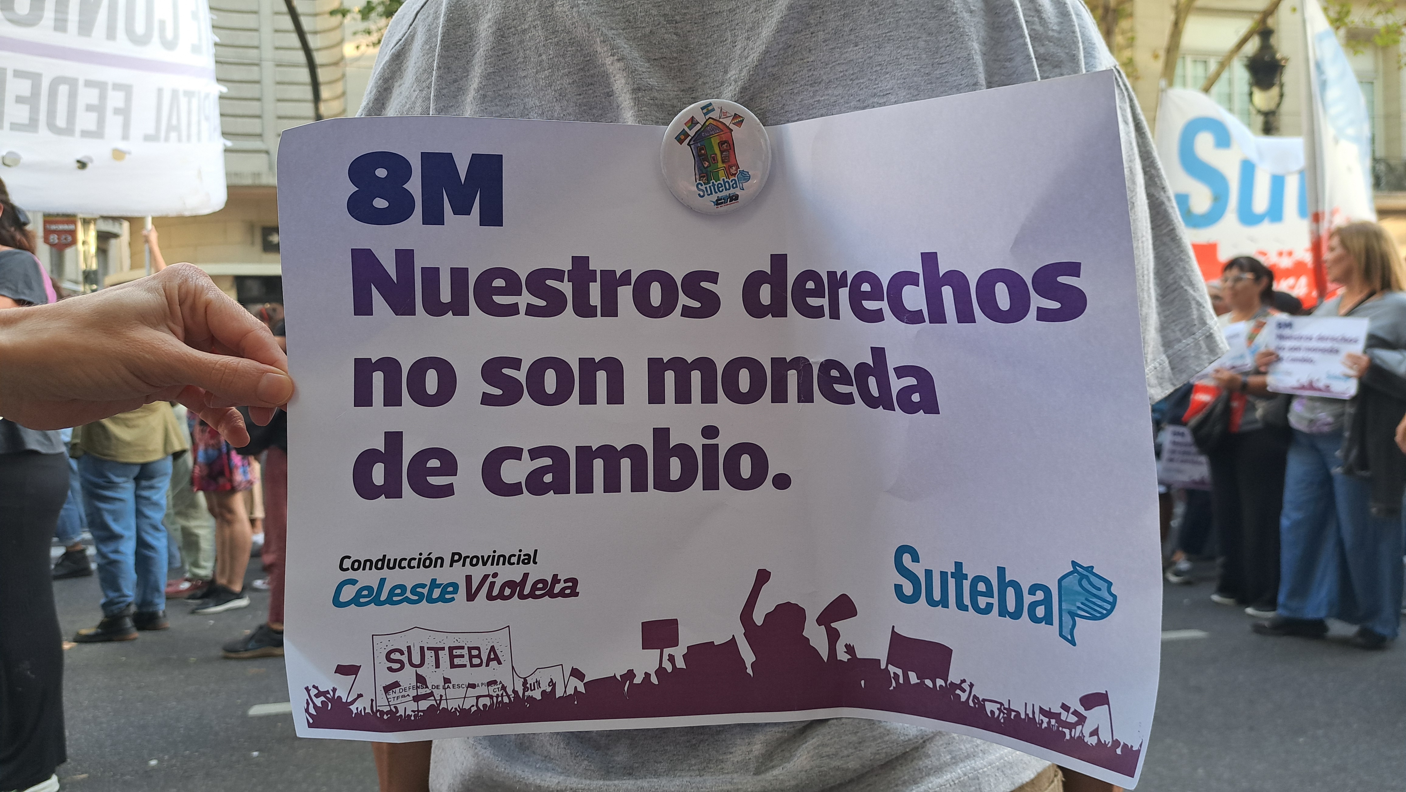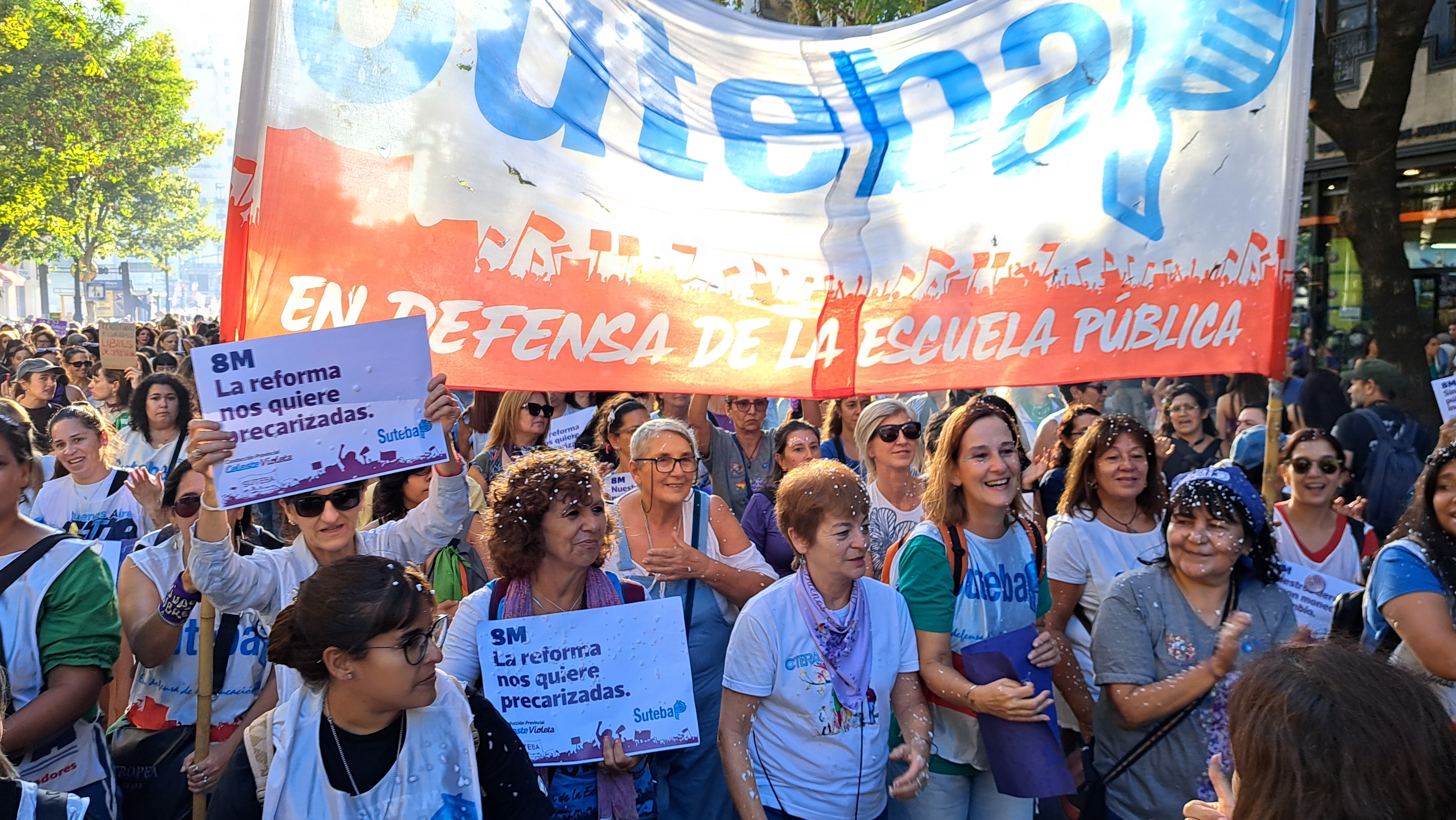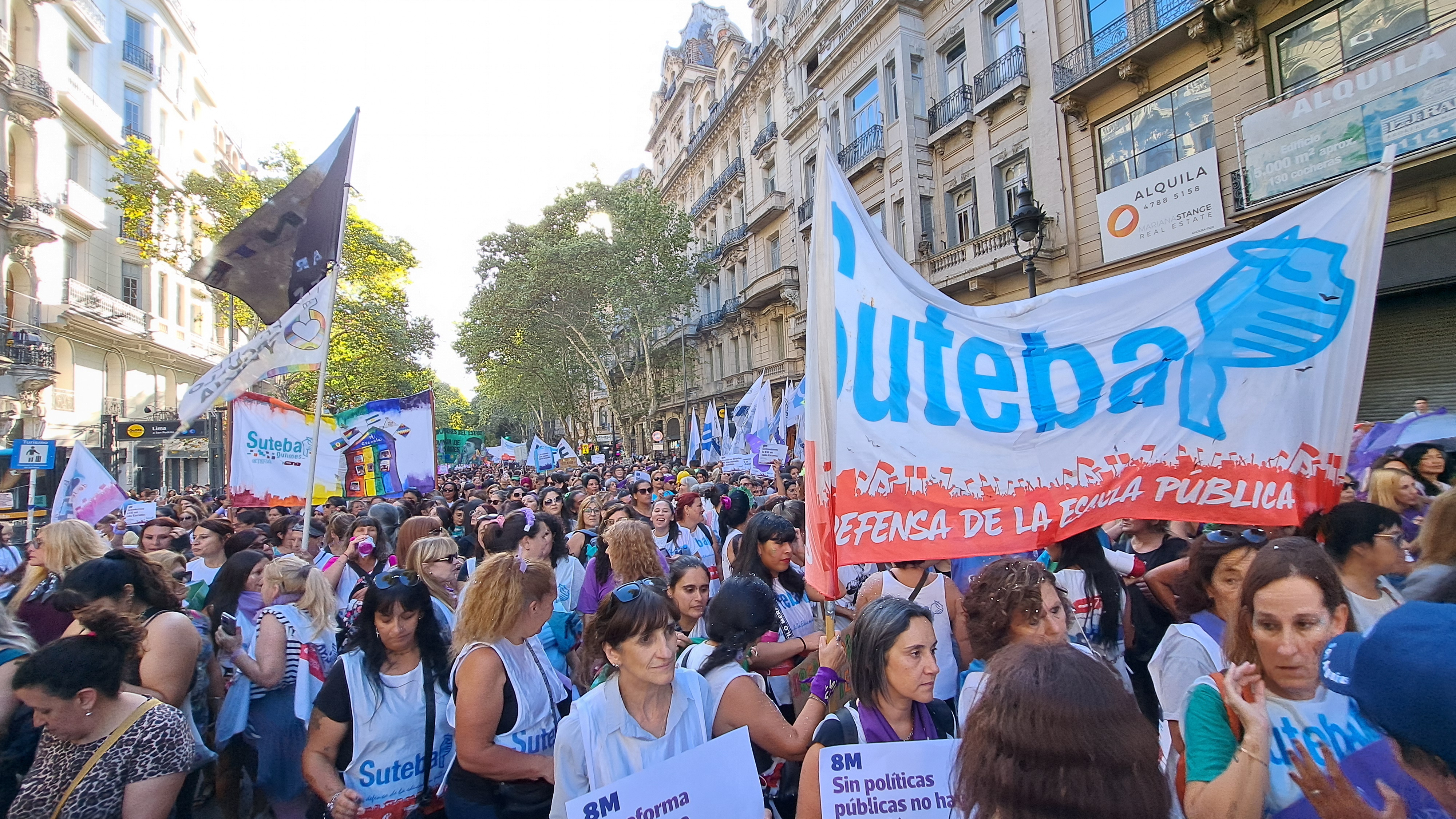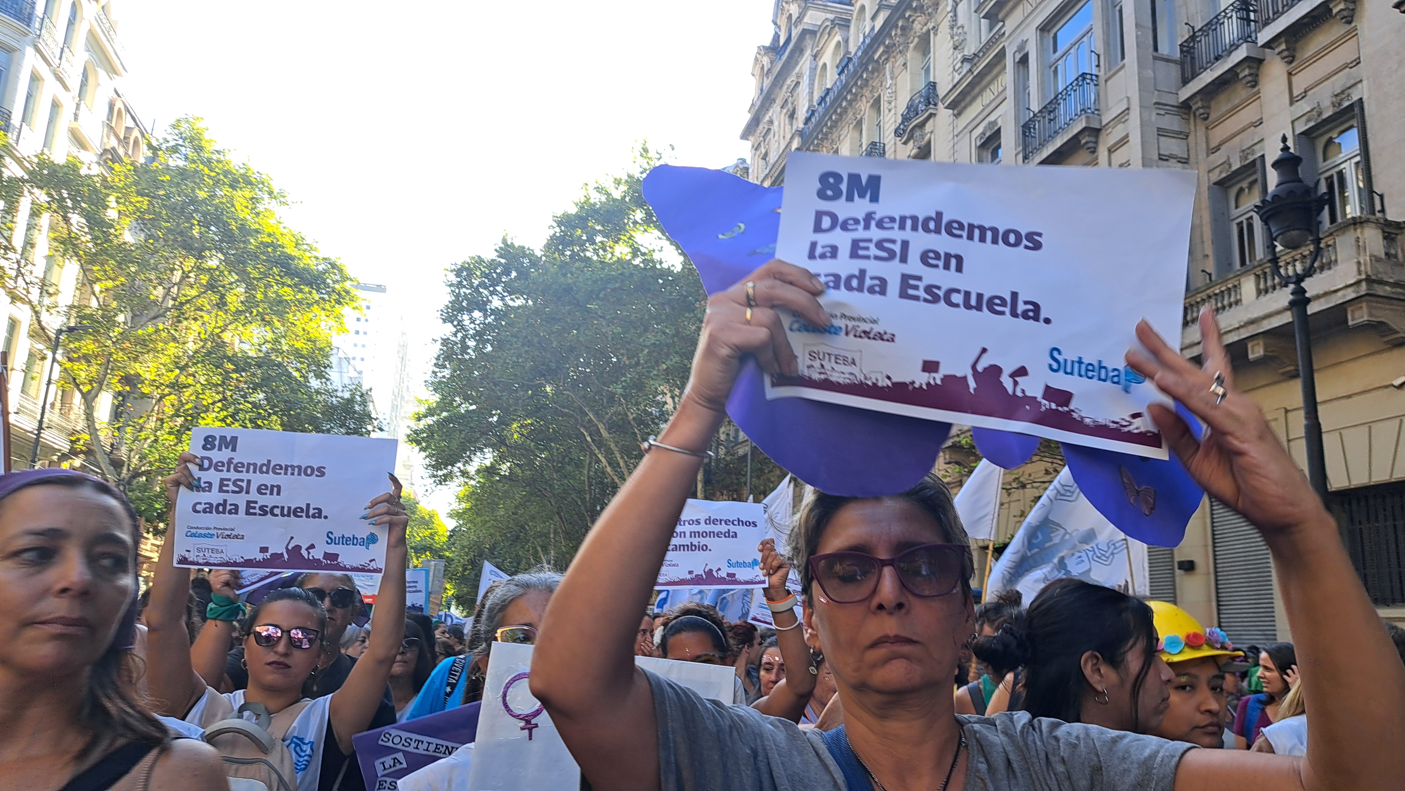 El SUTEBA adhirió al Paro Internacional Transfeminista y formó parte ayer de la multitudinaria movilización del Congreso a Plaza de Mayo por el Día Internacional de las Mujeres Trabajadoras. Una vez más, las Trabajadoras organizadas en el SUTEBA, la CTERA y la CTA-T fuimos protagonistas de la imponente marcha.