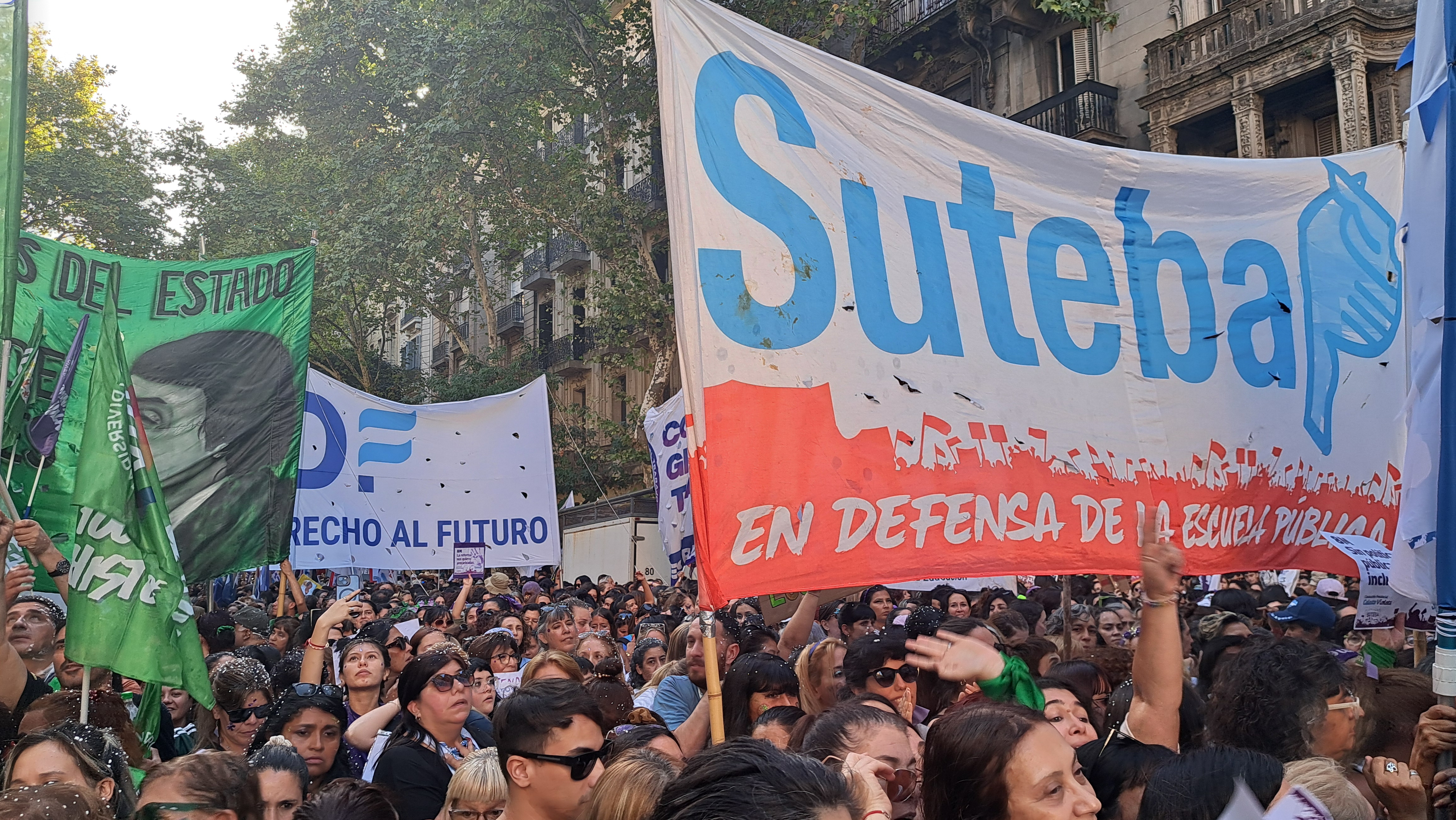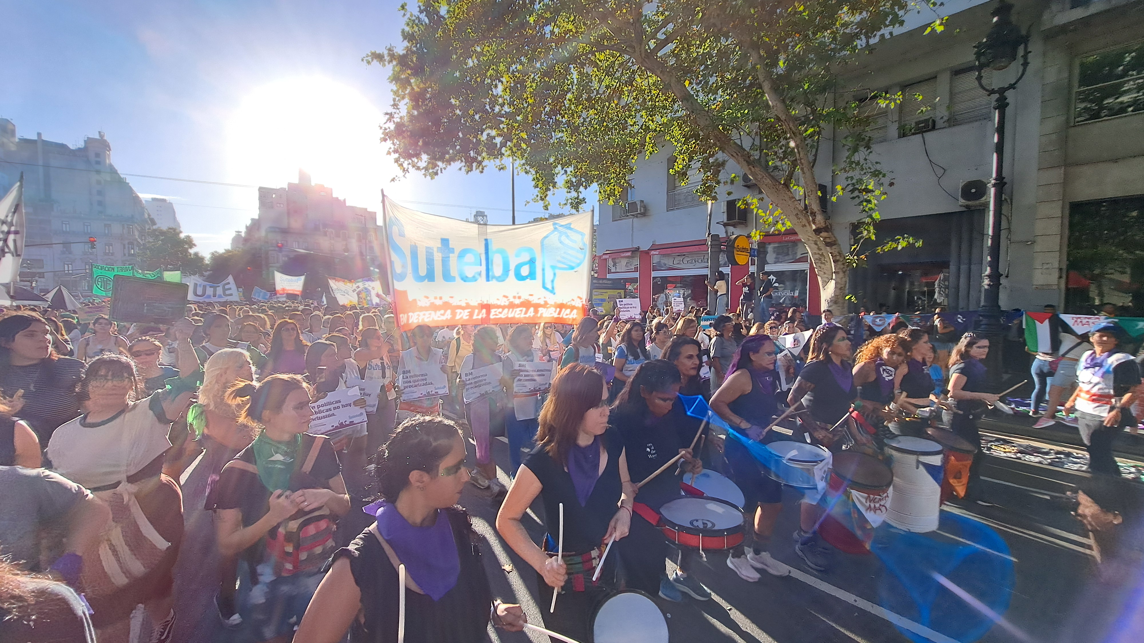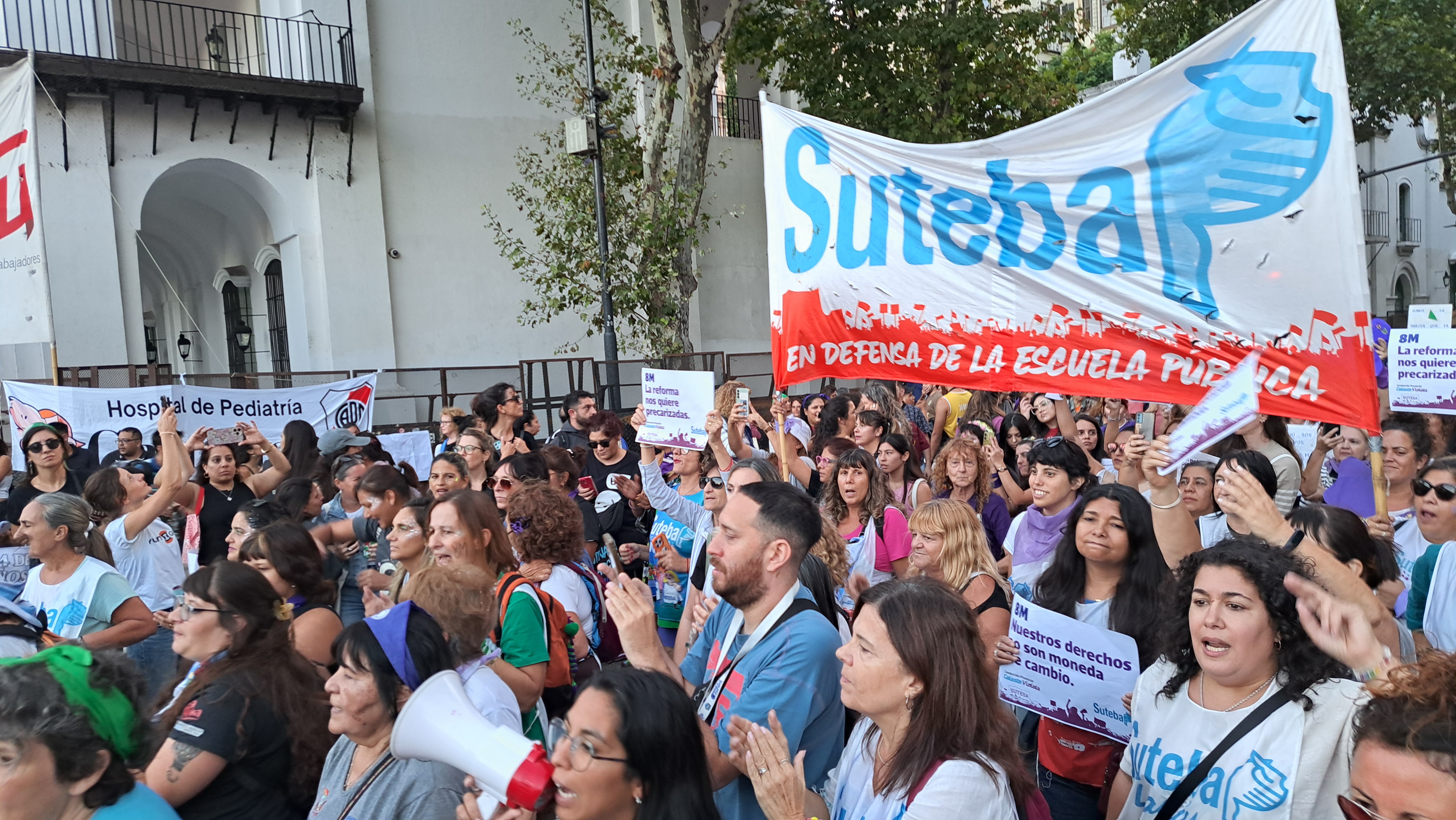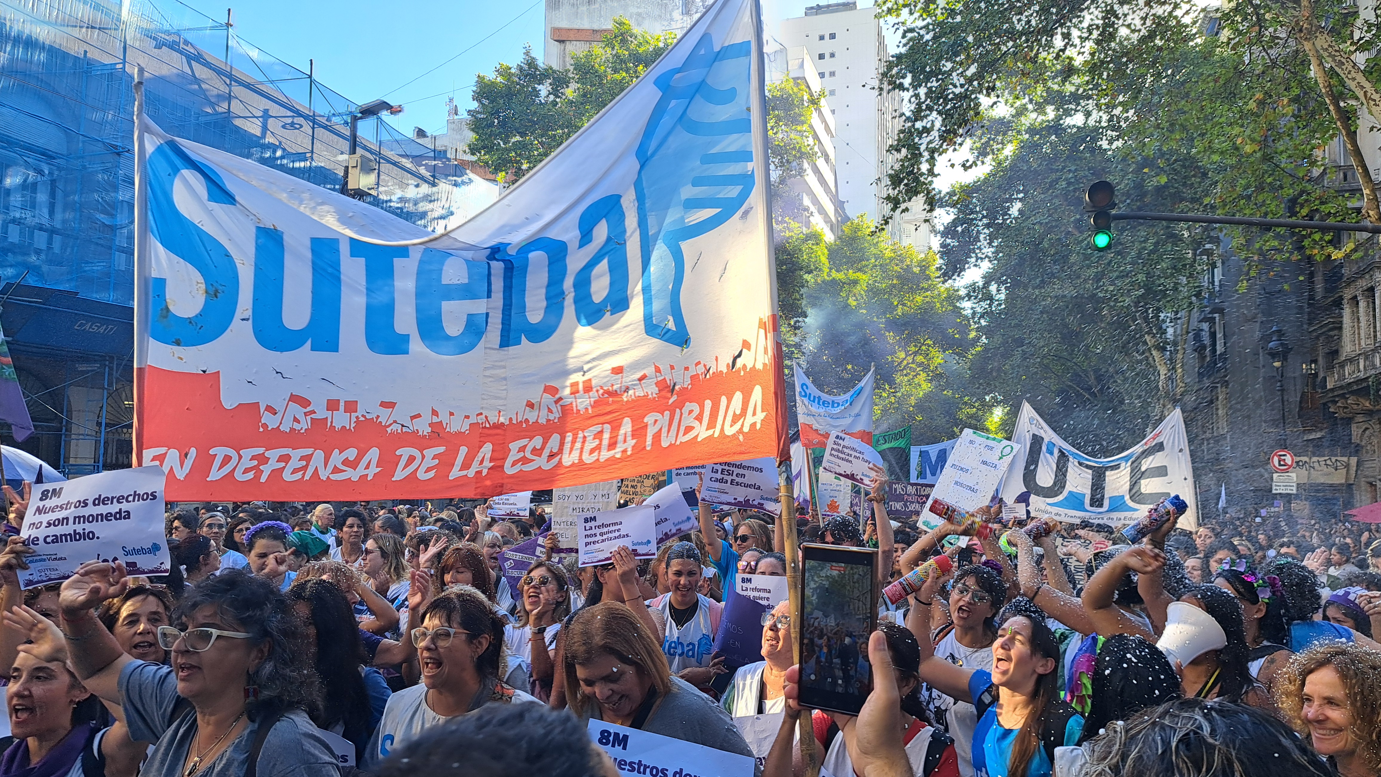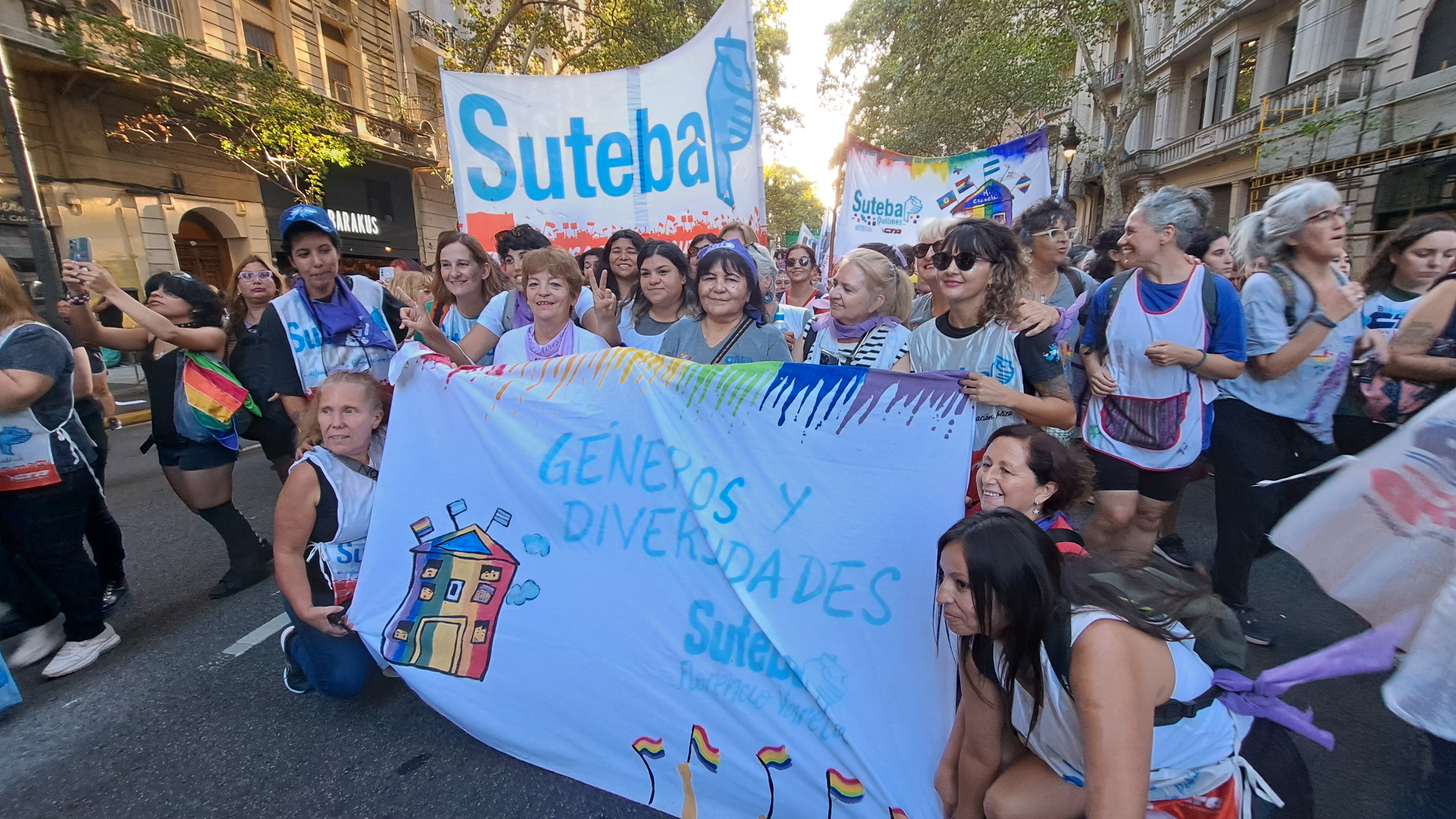 El SUTEBA adhirió al Paro Internacional Transfeminista y formó parte ayer de la multitudinaria movilización del Congreso a Plaza de Mayo por el Día Internacional de las Mujeres Trabajadoras. Una vez más, las Trabajadoras organizadas en el SUTEBA, la CTERA y la CTA-T fuimos protagonistas de la imponente marcha.
