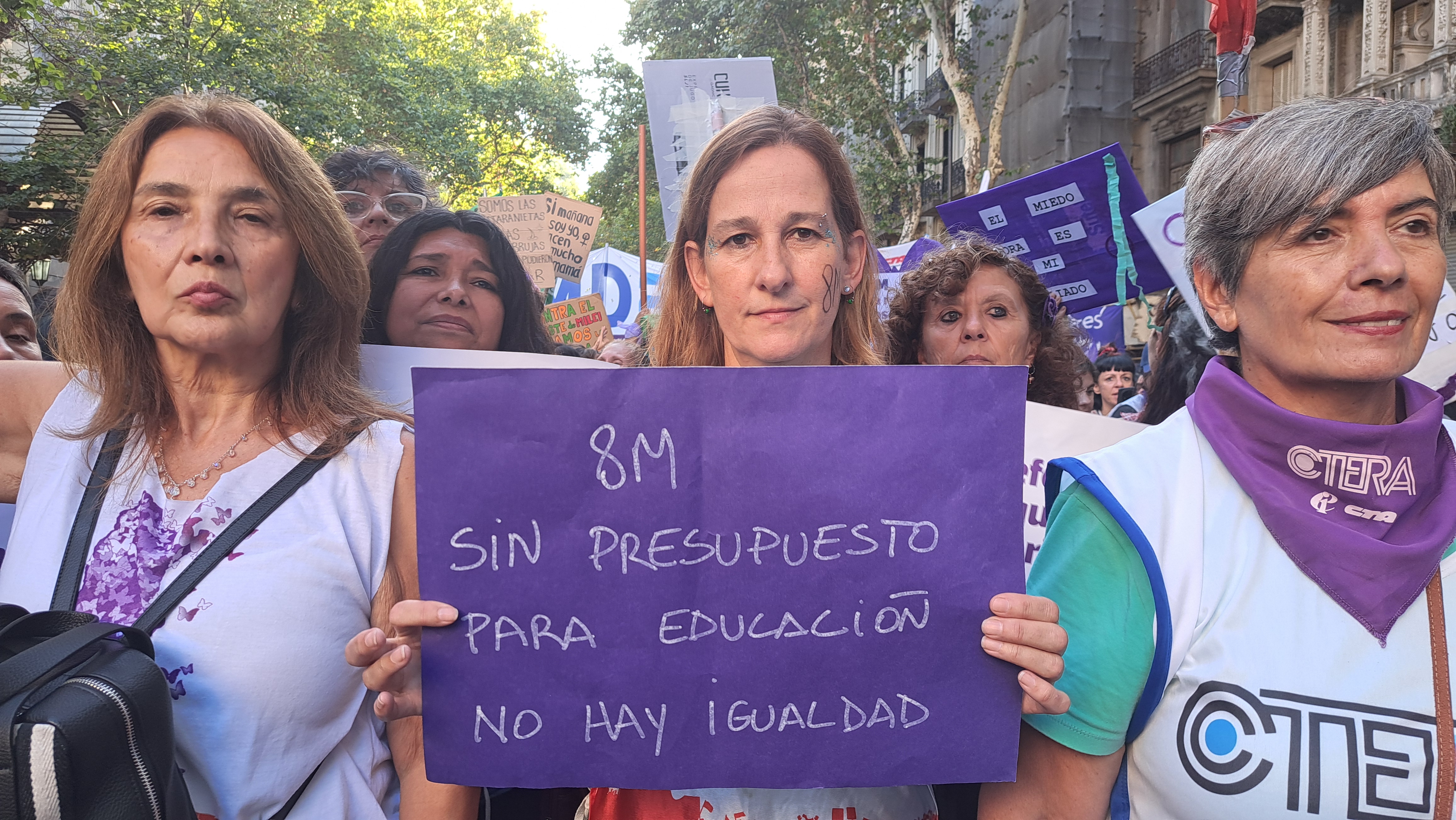 "En defensa de los derechos de las Trabajadoras y contra el hambre, el saqueo y la crueldad del Gobierno de Milei"; y "nuestros derechos no son moneda de cambio" fueron las principales consignas de este año.