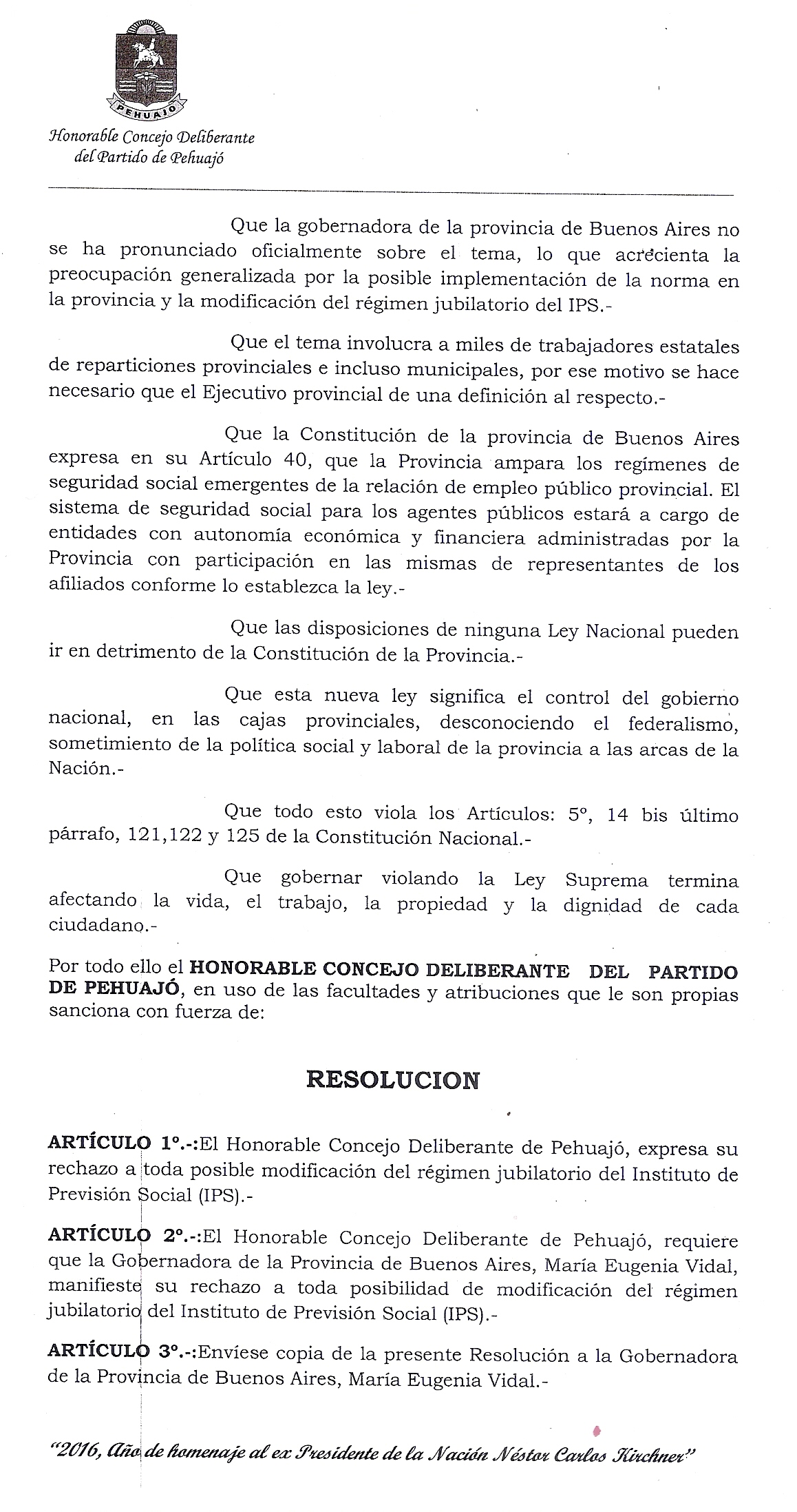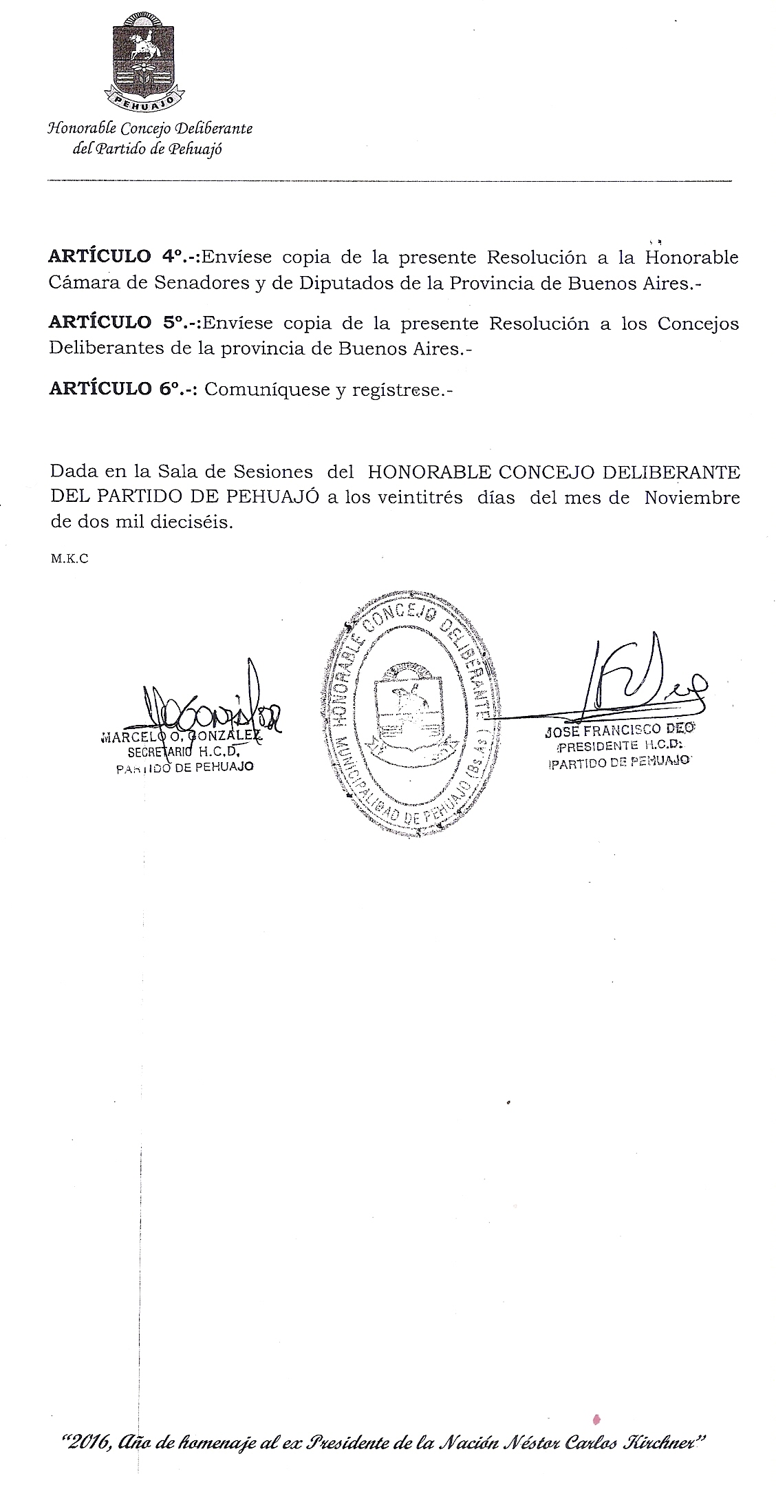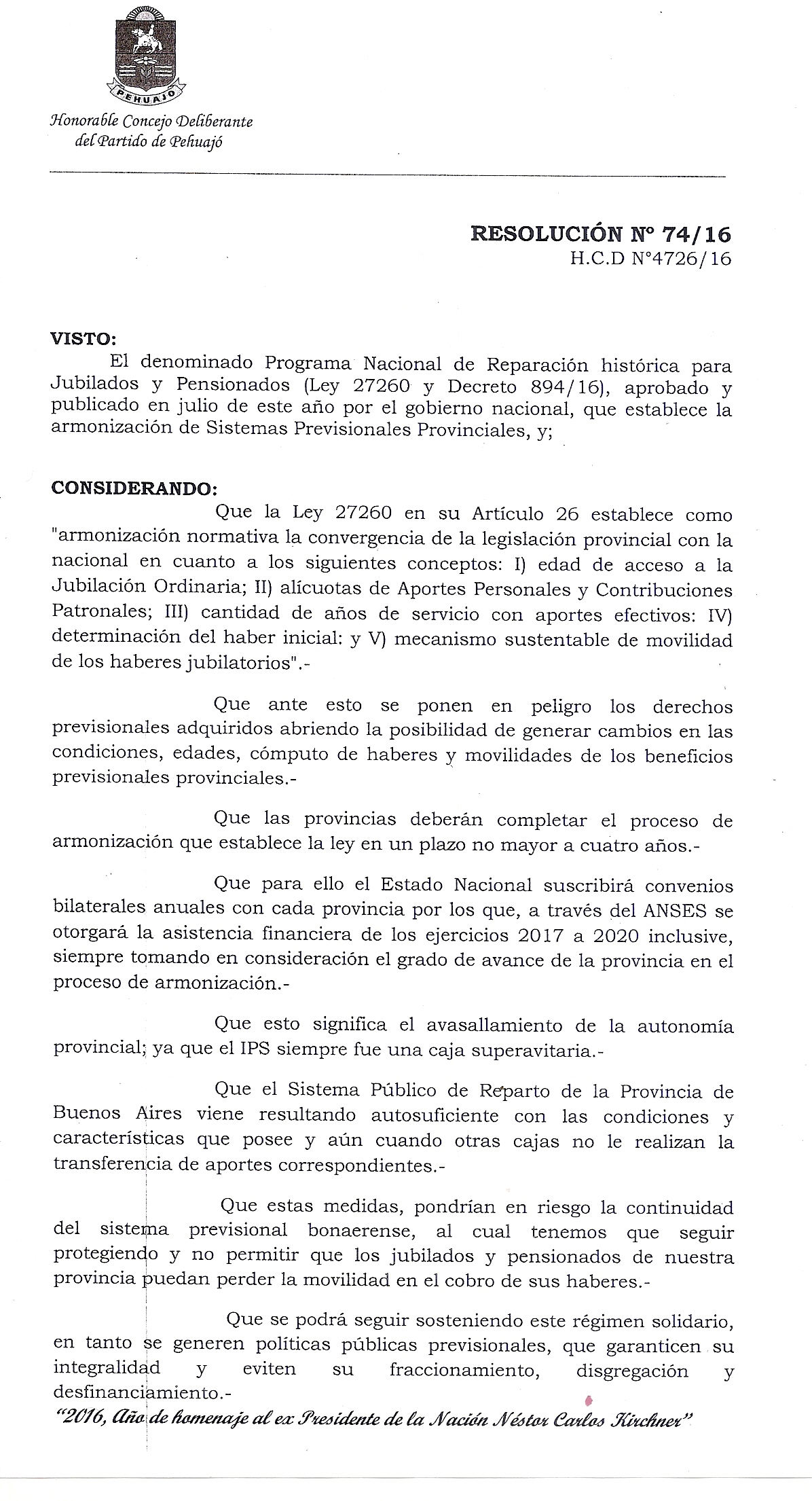 Es así como, el 24 de noviembre pasado, por Resolución 74/16, el HCD resolvió: