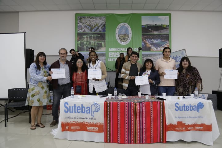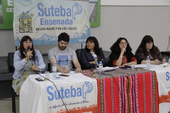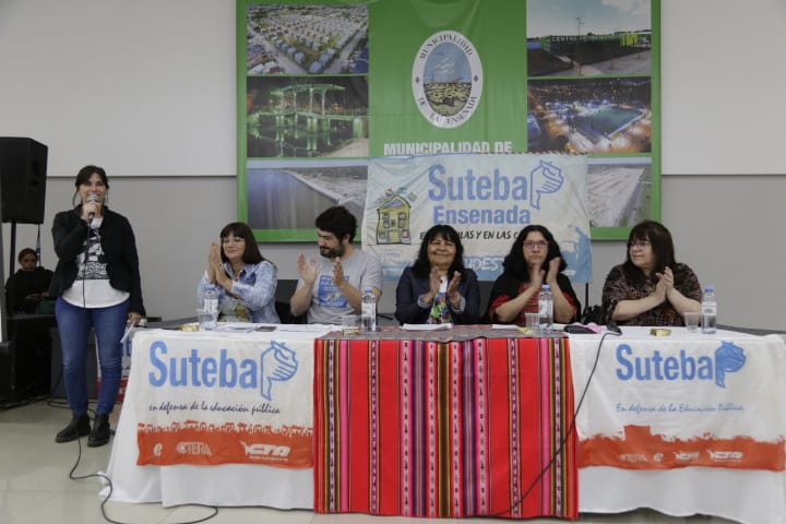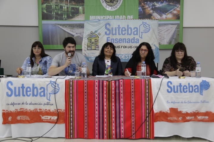 El SUTEBA Ensenada estuvo a cargo de la organización durante el día de ayer y de la bienvenida al encuentro. El Secretario General y la Secretaria General Adjunta distrital, Agustín Rosón y Eleonora Artigas, tomaron la palabra y dialogaron con lxs compañerxs presentes, de distintos Niveles y Modalidades.