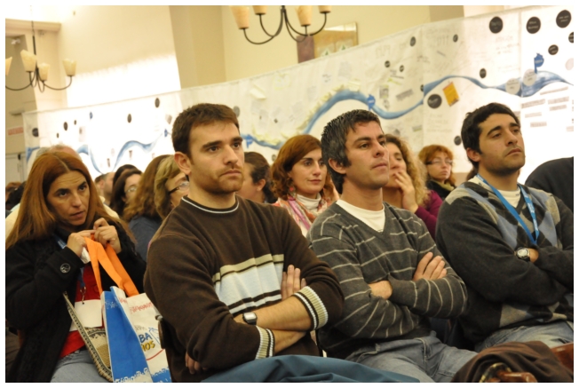 A las 10:30 horas, como estaba programado, comenzó el primer panel “Procesos Políticos de Transformación en América Latina y el Mundo” integrado por: David Edwards, analista de la National Education Association (NEA), Julián Rebón, sociólogo, y Carlos Girotti, sociólogo y miembro de Carta Abierta.