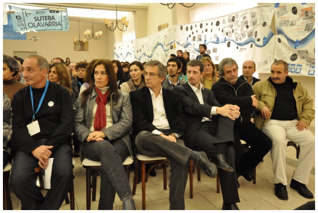 Comenzó haciendo una reflexión sobre los 25 años del SUTEBA dentro del contexto de los últimos 25 años en América Latina con respecto a la democratización de la política. Señaló que si la década del '80 se piensa como una década perdida, la del '90 es de la época neoliberal: “En los '90 se puso la regulación económica en manos de los grandes grupos económicos y se destruyeron los derechos de los trabajadores. Esta nueva época, es de disputa y discusión. Hay rumbos en tensión que empiezan a torcer la dirección de la historia, pero que no están realizados, están en disputa.” Siguió diciendo: “La fuerza que tuvo el neoliberalismo en los '90 fue también la fuerza que tuvo la crisis en el 2008. La fuerza con que atacó, fue la contrafuerza de la resistencia en Latinoamérica. Sin embargo, estos procesos en América Latina son muy distintos en todos los países, ya que el sub continente no es un conjunto homogéneo, por eso los sectores populares han avanzado de formas distintas. También los gobiernos son muy distintos entre ellos, algunos replantean otras formas de democracia directa, otros distintas formas de participación para desandar la forma colonial y poner en crisis esas estructuras al mismo tiempo que se discute la desigualdad y, en el campo de la inclusión, empezar a pensar como superar el capitalismo.” Destacó la nueva camada de presidentes y presidentas: “Indígenas, obreros, ex guerrilleros, mujeres, sacerdotes tercermunditas que expresan la capacidad de transformarse que tiene un sistema.” Luego, comparó la crisis del 2001 con el conflicto por la 125 en 2008, y dijo que “los niveles de discusión política que se dan en la sociedad, a diferencia del 2001, marcan una polarización entre dos bandos que empiezan a dibujar proyectos de país diferentes”. Y terminó diciendo: “Cuando uno ve como se expresa electoralmente en esta década es una experiencia muy diferente a los 90. Las tendencias de los 90 se han detenido, y se han empezado a revertir, y es en este contexto que con todas nuestras diferencias y nuestros puntos de acuerdo, tenemos que aprender a andar.”