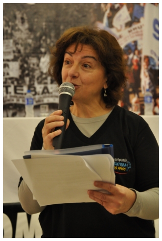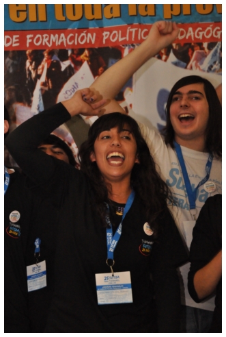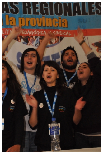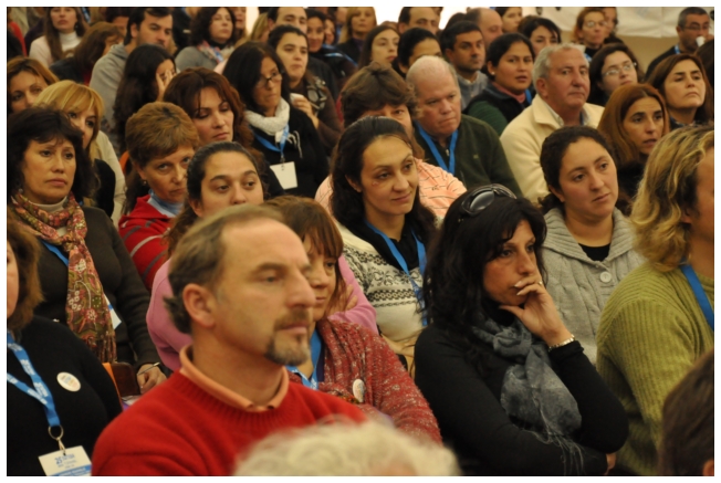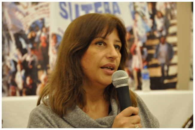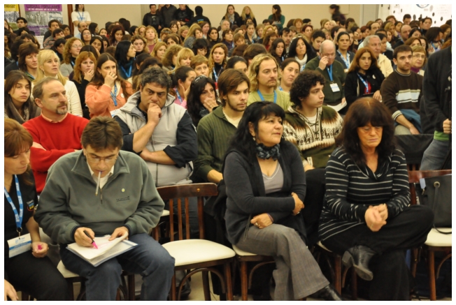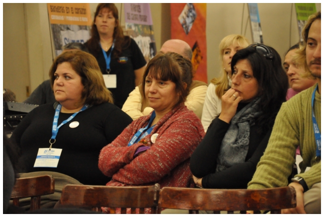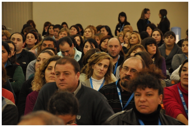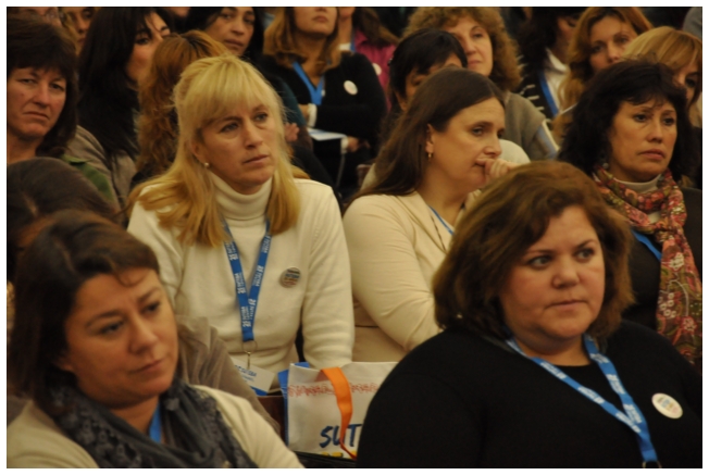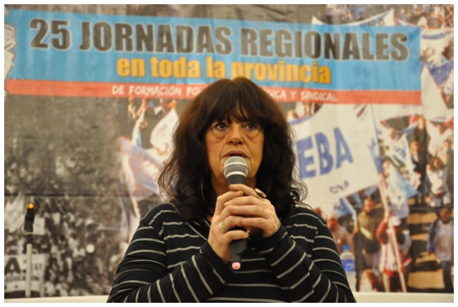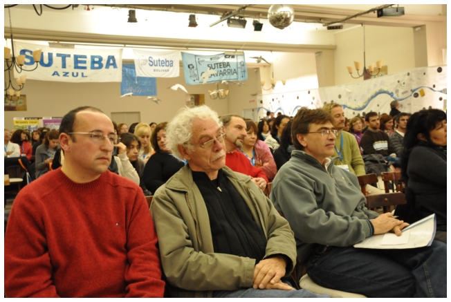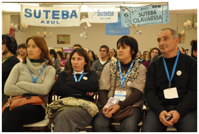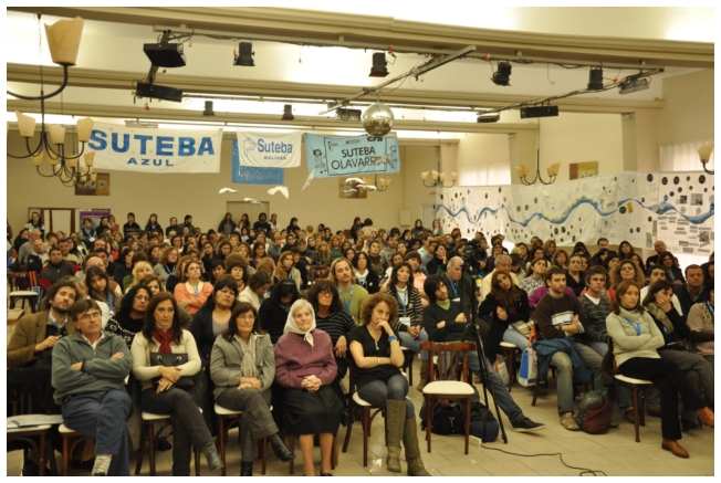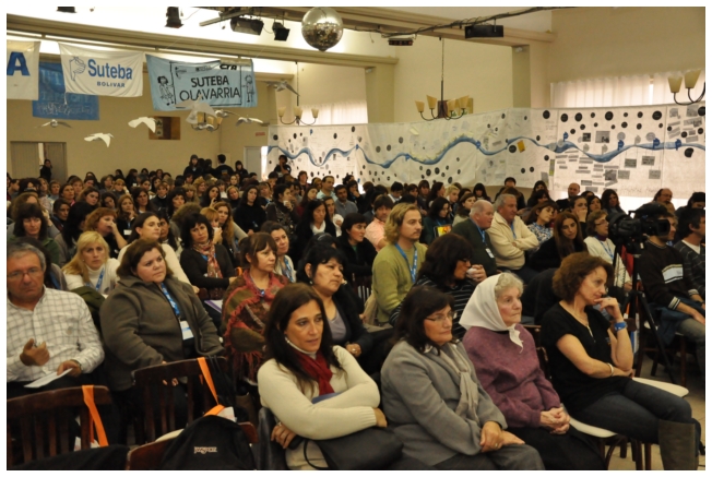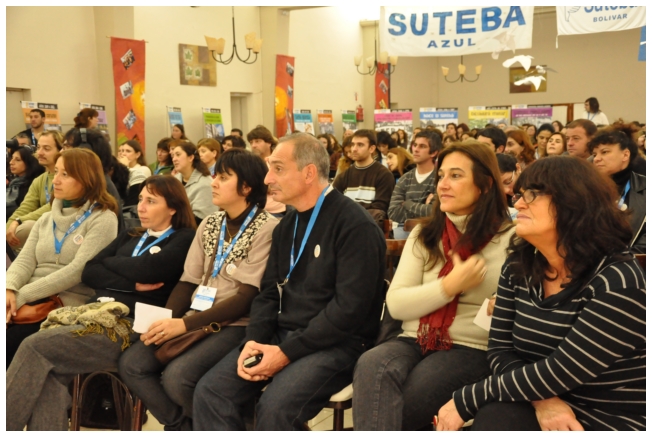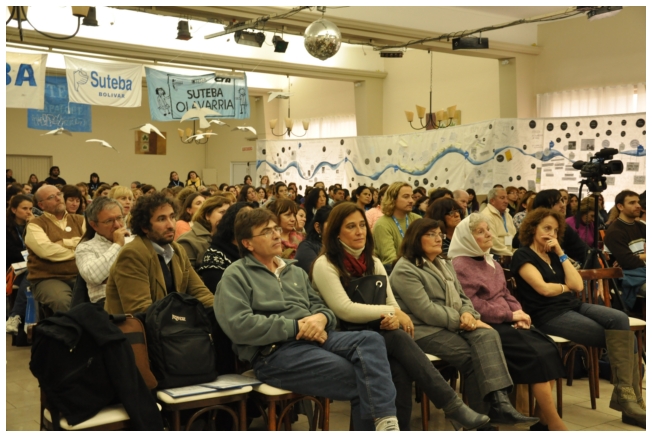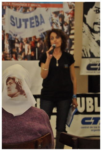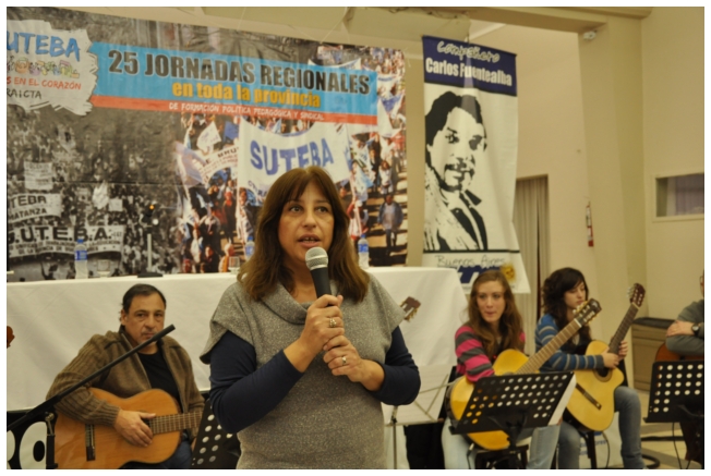 Por último fue el turno de Marta Suarez. Expresó que el desafió es que “los trabajadores de la educación vayan haciendo visible la posibilidad de cuestionar y apropiarse del conocimiento de su trabajo...Hay que comenzar a acumular representaciones, testimonios, sentimientos acerca de que trabajamos, de qué trabajábamos, qué teníamos y que no teníamos que hacer en las escuelas.” Desde un plano más político dijo: “Cualquier planificación pierde sentido si un docente no tiene un objetivo político claro o si el trabajador no sabe o no quiere interpretar para qué y por qué decidimos usar esto y no lo otro a la hora de enseñar.” Se despidió alertando: “La batalla es muy fuerte, otra vez vienen por la escuela, por nuestra adolescencia, por los jóvenes maestros que nos hicieron entrar en contradicción a un gran sector de la educación.”