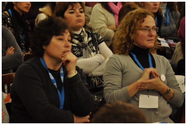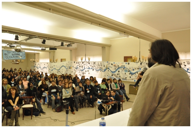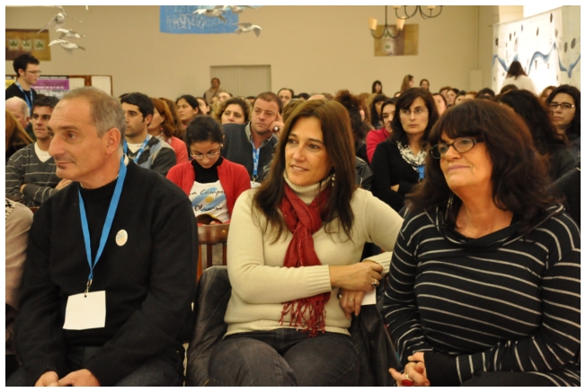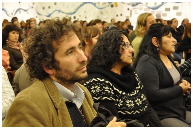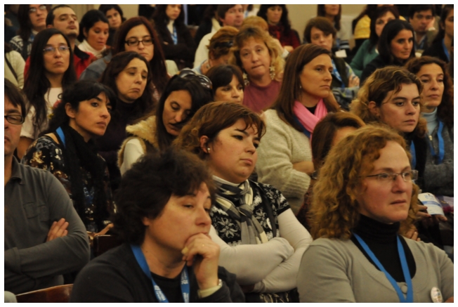 Por su parte, Marcela Lucas presentó un video casero hecho por ella con alumnos sobre educación en niños y jóvenes inmigrantes, donde se ve lo difícil que es vivir y estudiar en el país por la discriminación que estos jóvenes sufren por parte de sus pares. Una fuerte muestra de la realidad que replantea las formas de enseñanza y la posición del docente antes estas circunstancias. “Creemos ser inclusivos, sin embargo excluimos con muchas cuestiones a nuestros alumnos, tanto sus creencias como sus costumbres”, enfatizó la profesora. Dijo también que “es un lugar común en el sistema educativo argentino, responsabilizar al ciclo educativo anterior y, en definitiva, esto es no hacernos cargo de nuestro rol.” Por otro lado, Marcela propuso: “Profundizar en las creencias, los valores y los conocimientos distintos. Hay que recolocarse y salir de la posición individual y ponerse a trabajar en lo colectivo, no sólo con la escuela sino fuera de ella también, lo que nos ayudará a reposicionarnos en nuestras distintas prácticas.” Por último, dijo: “Frecuentemente los docentes nos sentimos como dadores de conocimiento, por la lógica civilizadora en la que nace la escuela. Hay que romper esa lógica para no seguir sellando con el mote de diferente, para no seguir excluyendo a los que no participan o a los que no son parte de los rasgos hegemónicos. Los alumnos son agentes de cultura y nosotros, muchas veces, no los vemos así. A veces tenemos interiorizado que nosotros (los docentes) hablamos bien y ellos hablan mal, y esto no es así.”