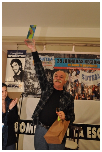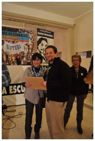 A las 16 horas finalizó el panel, Alex Hiese (Secretario de Organización) le entregó los presentes a los panelistas y Rosana Merlos, Secretaria de Derechos Humanos del SUTEBA presentó a Roberto Baradel, Secretario General del SUTEBA.